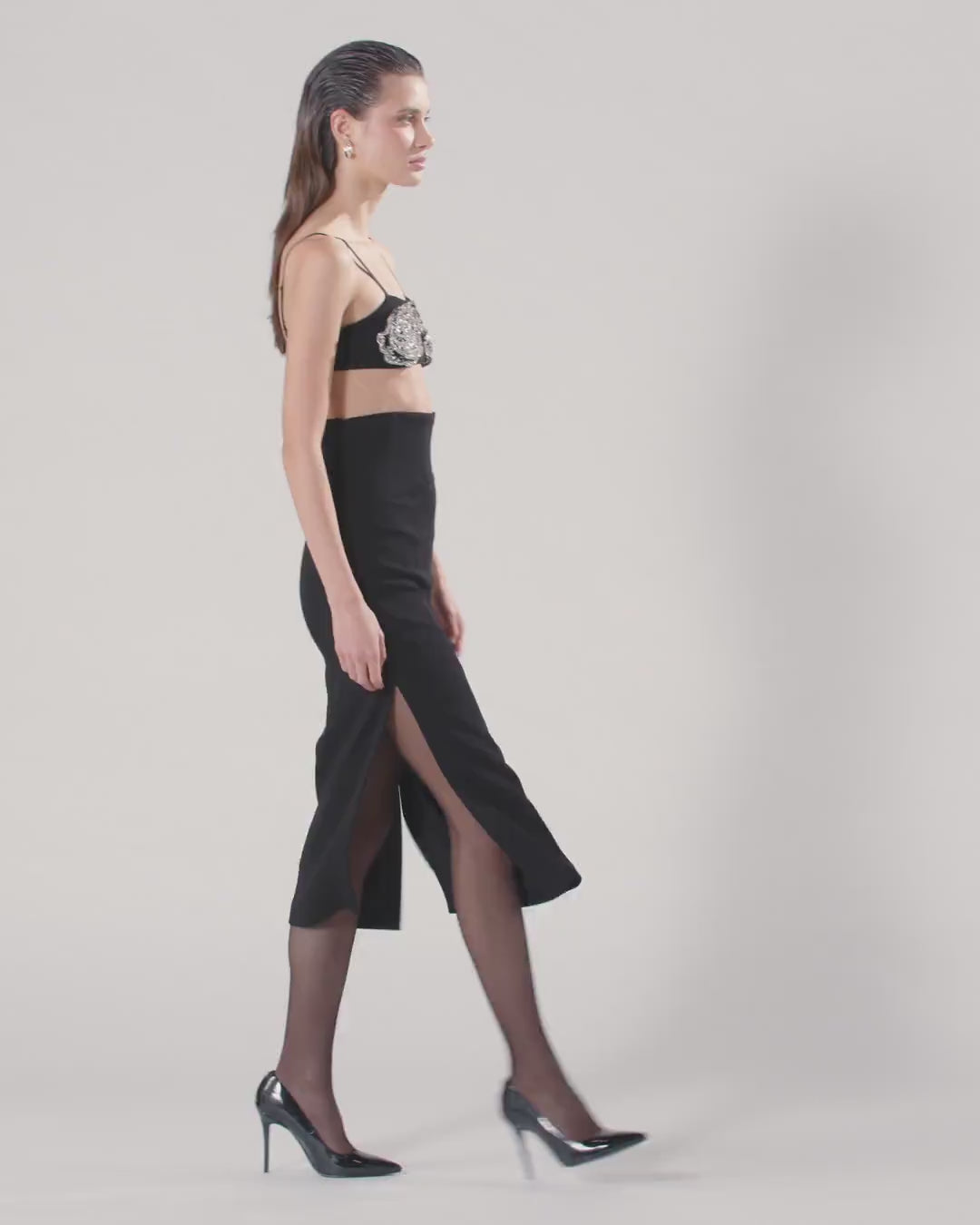 Bandeau-Top im BH-Stil aus einem kompakten Stretch-Gewebe aus Viskose, das mit bequemen, verstellbaren Trägern und einem Häkchen-Verschluss im Rücken ausgestattet ist. Das Modell wird durch die Applikation auf der Vorderseite zu etwas Besonderem: eine zarte Rose aus Tüll, die gekonnt von Hand mit einem dreidimensionalen Effekt bestickt und mit Kristallen in verschiedenen Formen und Größen verziert ist, um das Licht elegant zu reflektieren. Ideal für einen besonderen Abend oder eine exklusive Party kann dieses Kleidungsstück beispielsweise unter einem Blazer getragen werden. Dieses kostbare und feminine Kleidungsstück wird Sie zur unbestrittenen Königin jeder Party machen. - BARBABIETOLE TOP