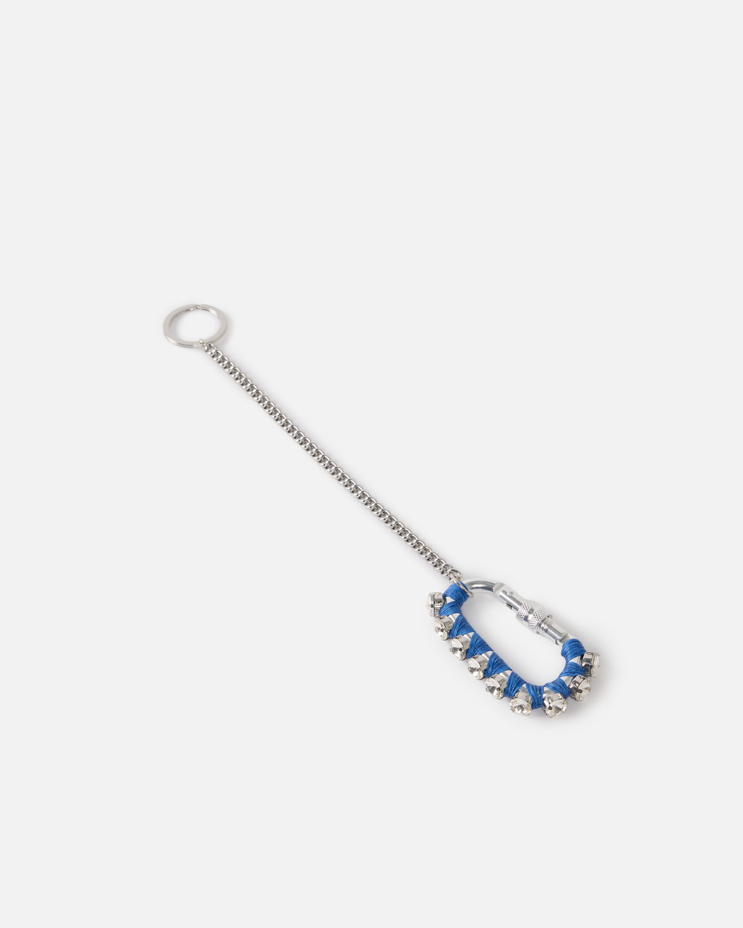 Schlüsselanhänger aus Metall mit farbigem Faden und Perlen