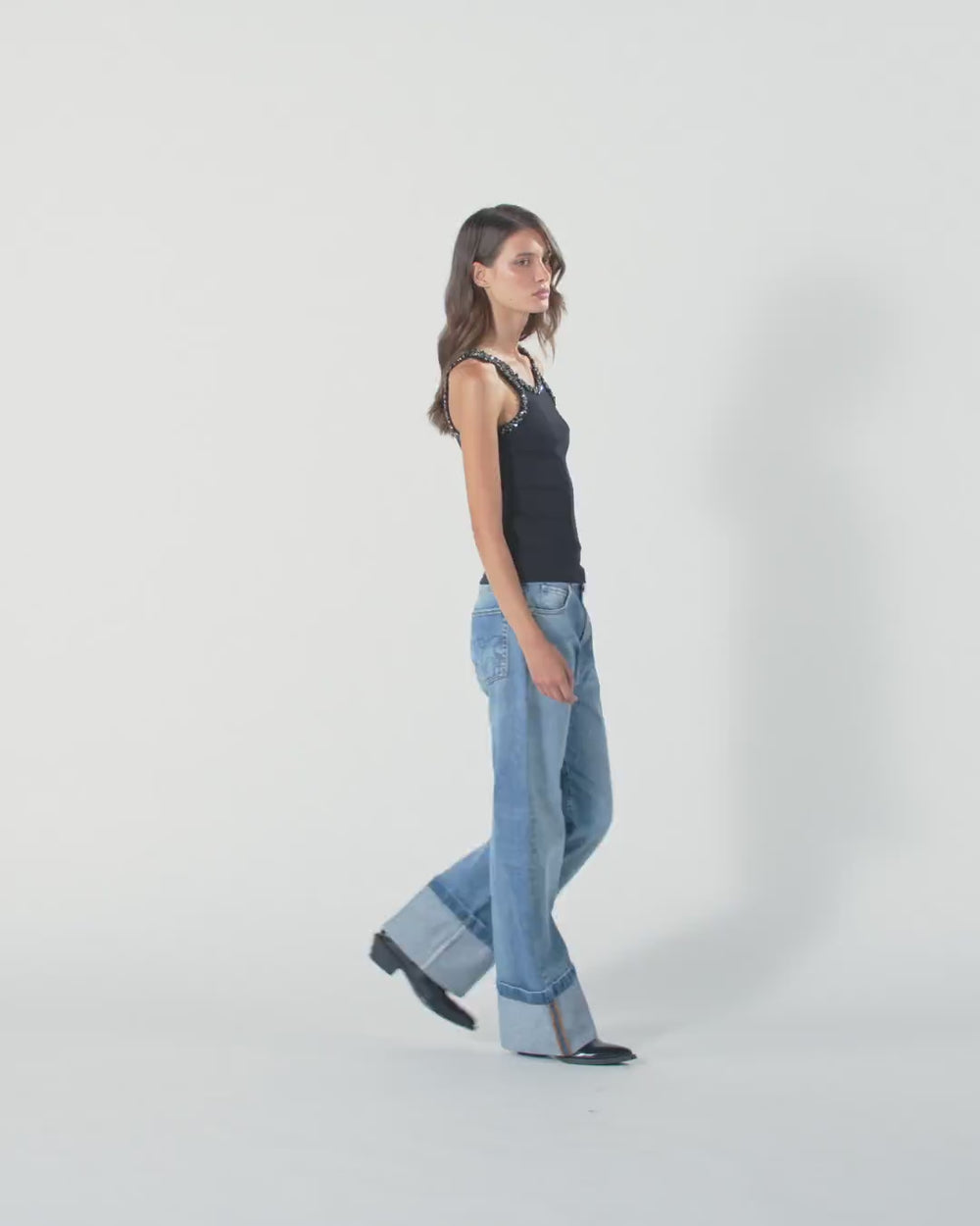 Top aus Baumwolljersey in Rippstrick. Die Träger und Ausschnitte vorne und hinten sind mit händisch aufgestickten Kristallen, Strasssteinen und Glasdetails bedeckt, die dem Kleidungsstück Licht und Kostbarkeit verleihen. Betonten Sie die Eleganz und Weiblichkeit jedes Outfits mit diesem Top, das die perfekte Unterbekleidung in Kombination mit geschneiderter Hose, aber auch mit einer besonderen Jeans ist.