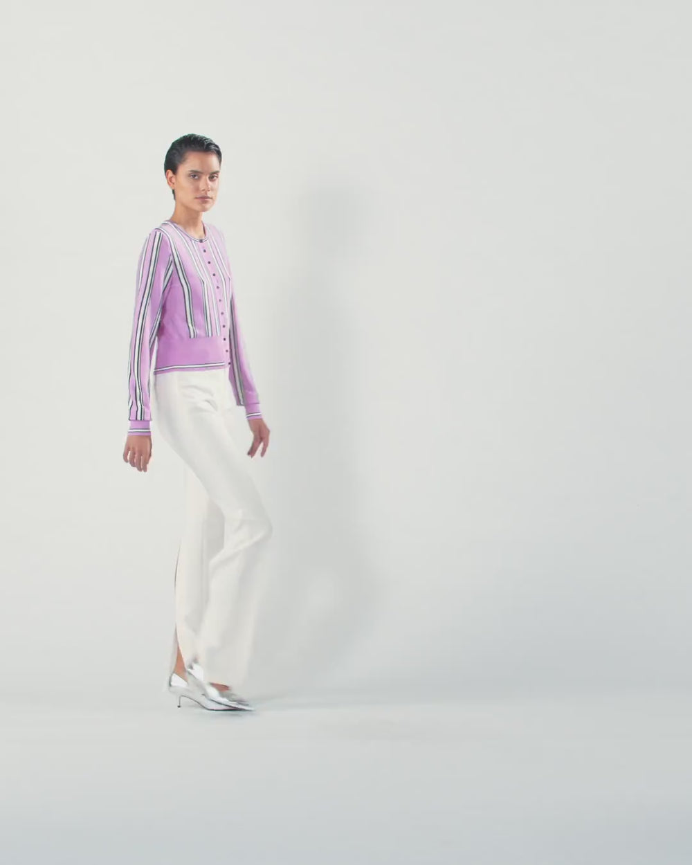 Ζακέτα από καθαρό, εξαιρετικά λεπτό μαλλί μερινός, διακοσμημένη με κάθετες ρίγες διαφορετικού χρώματος, ιδανική για να προσθέσει μια πινελιά χρώματος στη γκαρνταρόμπα σας. Οι μανσέτες και το τελείωμα στο κάτω μέρος έχουν ριμπ πλέξη, ενώ το πίσω μέρος είναι διακοσμημένο με την ετικέτα με το λογότυπο PINKO. Το ρούχο έχει υποβληθεί σε ειδική επεξεργασία φινιρίσματος για την ελαχιστοποίηση του χνουδιάσματος, προσφέροντας μεγαλύτερη απαλότητα και ανθεκτικότητα στο ύφασμα. Επιλέξτε αυτήν τη ζακέτα για να δημιουργήσετε μια ζωηρή αλλά κομψή εμφάνιση, που θα σας συνοδεύει κάθε στιγμή της ημέρας, από το γραφείο μέχρι τις βραδινές εξόδους με παρέα.