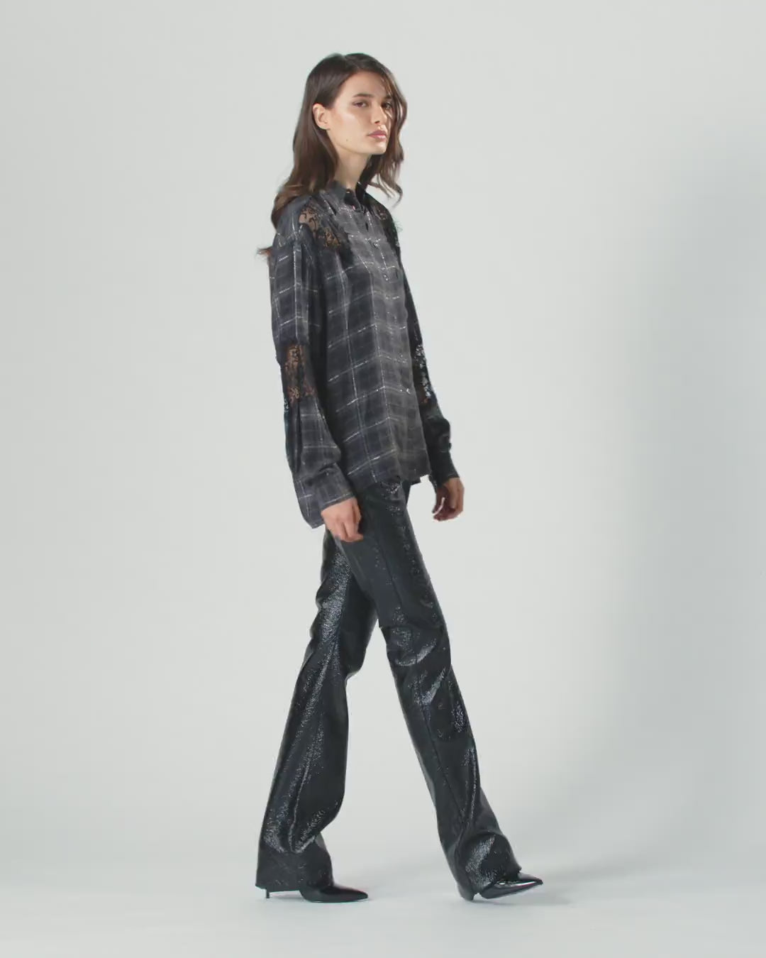 Πουκάμισο με άνετη εφαρμογή, κατασκευασμένο από ένα ζεστό και απαλό ύφασμα που προσαρμόζεται στο σώμα. Το μοντέλο συνδυάζει το καρό μοτίβο με ρίγες από μεταλλλική κλωστή και εκλεπτυσμένα τμήματα από κυματιστή δαντέλα με σε στυλ lingerie. Συνδυάστε αυτό το χυτό και ευέλικτο μοντέλο με ένα άνετο τζιν για τις στιγμές σας εκτός εργασίας.