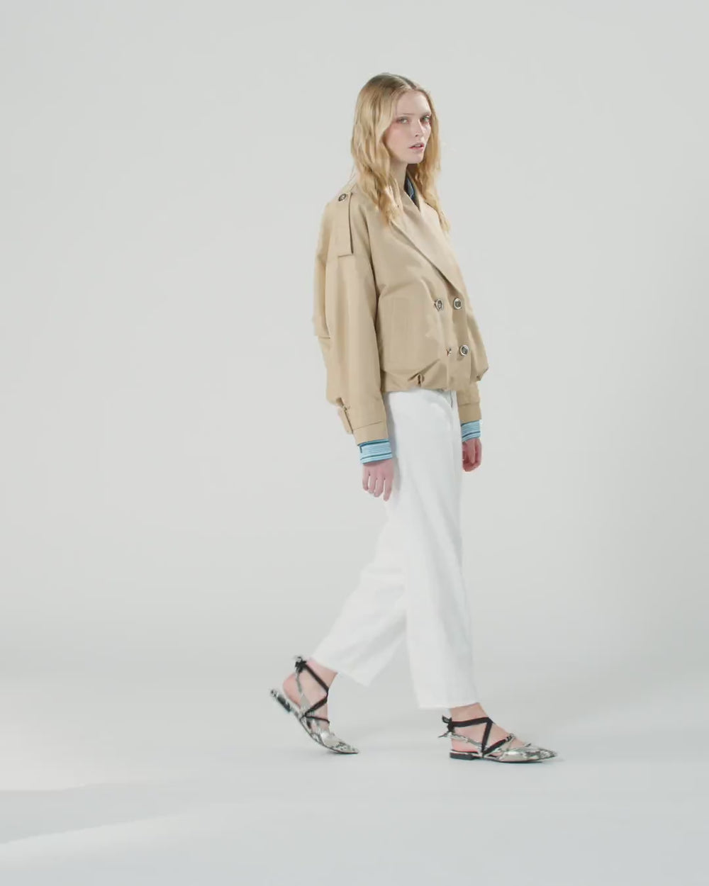 Η καμπαρντίνα, το απόλυτο ανοιξιάτικο κομμάτι, σε μια νέα έκδοση με το στυλ της PINKO με κοντό και ακόμα πιο ευκολοφόρετο σχεδιασμό. Το πανωφόρι, κατασκευασμένο από σύμμεικτη βαμβακερή καμπαρντίνα, χαρακτηρίζεται από φαρδύ γιακά με πέτο, χαμηλή μανικοκόλληση με επωμίδες, δύο βολικές πλευρικές τσέπες, λουράκια στις μανσέτες και σταυρωτό κλείσιμο. Το σχέδιο ολοκληρώνεται με το κομψό τμήμα στο πίσω μέρος σε στυλ κάπας, που προσδίδει όγκο. Αυτό το αυθεντικό πασπαρτού κομμάτι θα σας συνοδεύσει από το γραφείο μέχρι τις βραδινές σας εξόδους. - TRISCIA TRENCH COAT
