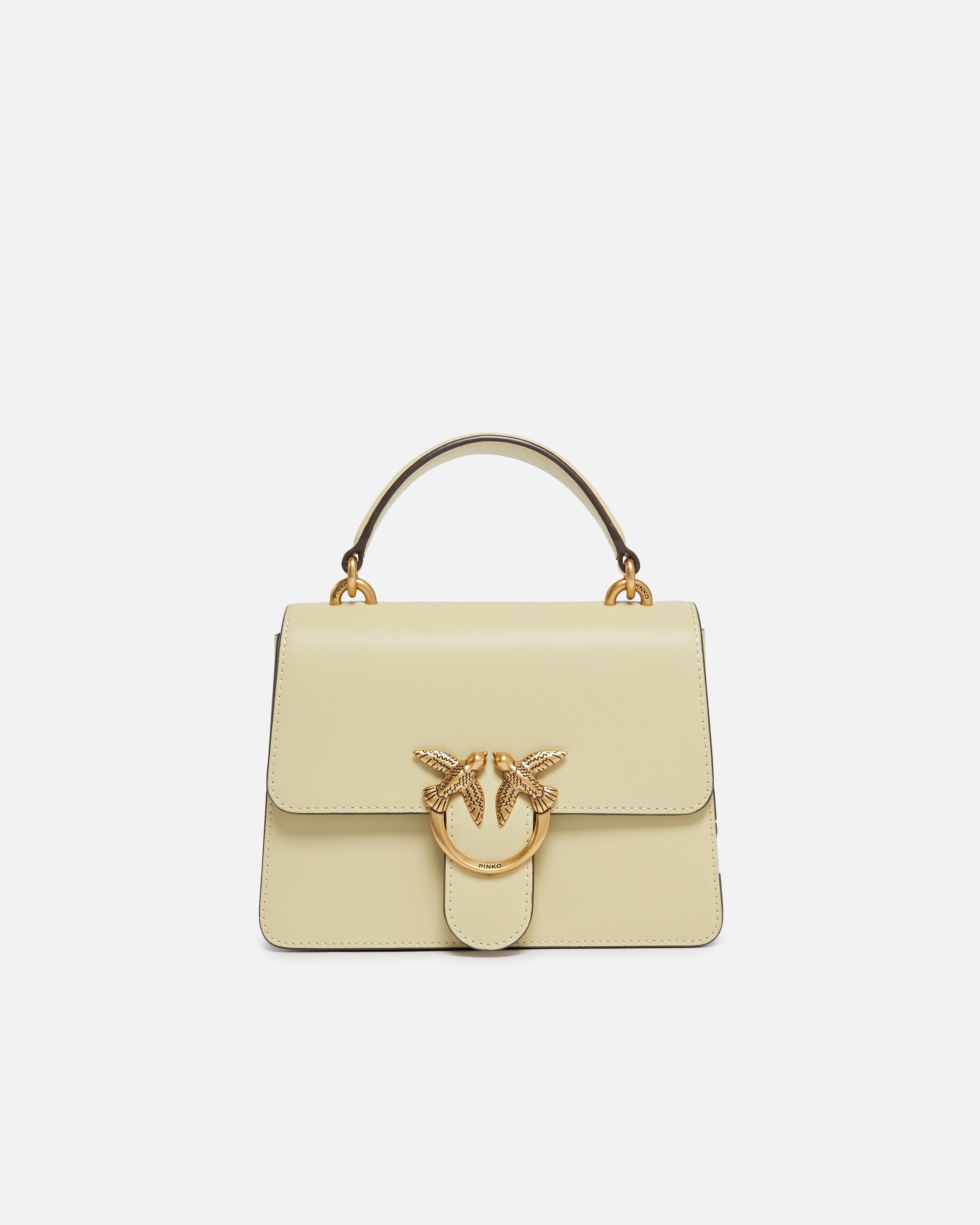Τσάντα Mini Love Bag One Top Handle Light από μαλακό δέρμα με πολύ απαλή υφή με αποδομημένο και ανάλαφρο σχεδιασμό. Το κλείσιμο ολοκληρώνεται με την εμβληματική μεταλλική αγκράφα Love Birds Diamond Cut. Το εσωτερικό είναι φοδραρισμένο με ύφασμα από μικροΐνες με σουέτ υφή και περιλαμβάνει τσέπη στο τοίχωμα με φερμουάρ. Μονό χερούλι και ρυθμιζόμενο και αφαιρούμενο δερμάτινο λουρί. - MINI LOVE BAG ONE TOP HANDLE LIGHT SIMPLY