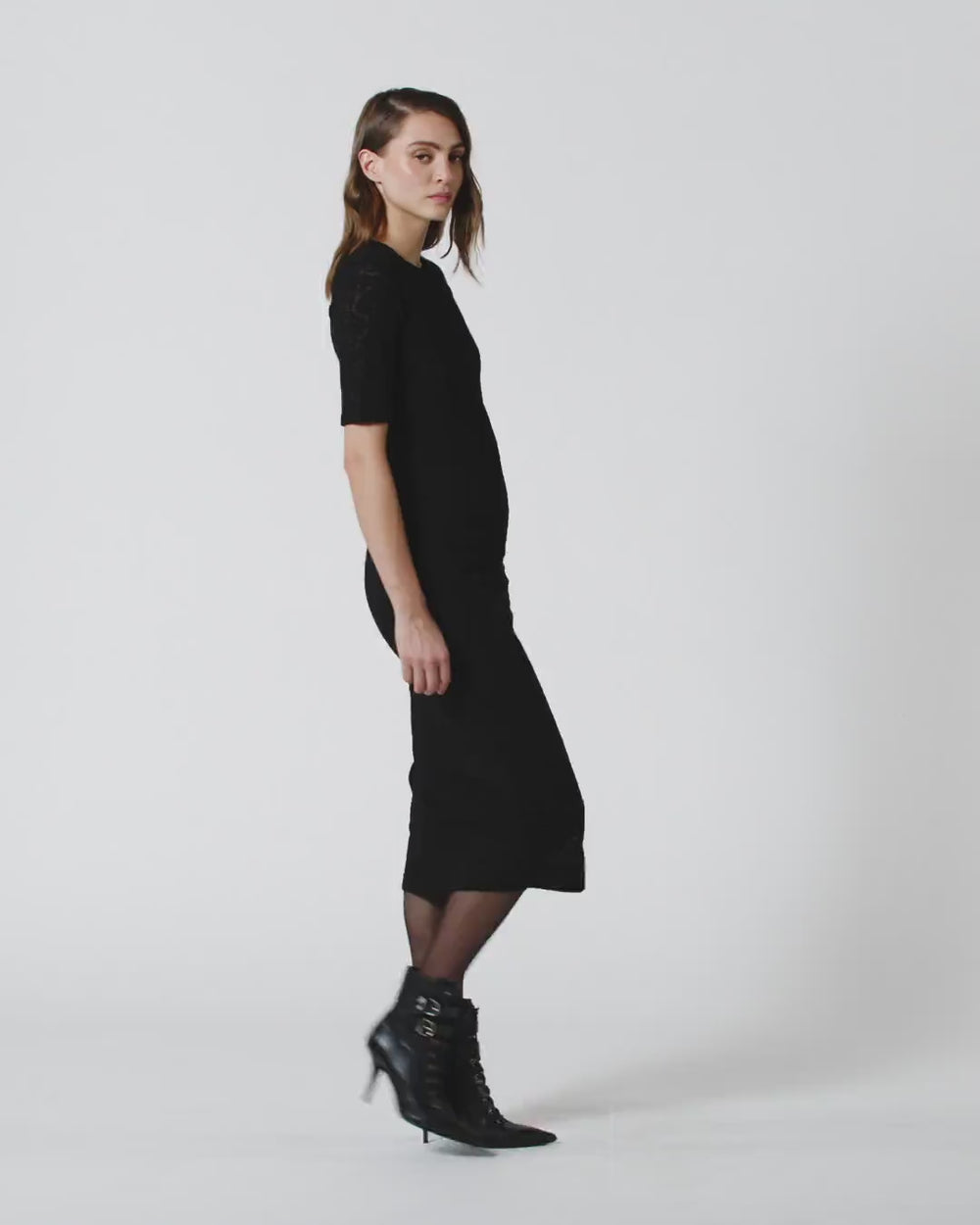 Μίντι φόρεμα με φόδρα και εφαρμοστή γραμμή που αγκαλιάζει το σώμα, με στρογγυλή λαιμόκοψη και μανίκια μέχρι τον αγκώνα. Ιδανικό για να δώσει μια αισθησιακή πινελιά ακόμη και στις χειμωνιάτικες εμφανίσεις σας, είναι κατασκευασμένο από ένα ιδιαίτερο ζακάρ πλεκτό, σύμμεικτο μάλλινο ύφασμα με ανάγλυφο φλοράλ σχέδιο με εκλεπτυσμένη όψη δαντέλας. Το φόρεμα ολοκληρώνεται με λεπτομέρειες από ρέλι με διαφορετική υφή κατά μήκος του σώματος και των μανικιών. Κλείσιμο με κρυφό φερμουάρ πίσω.