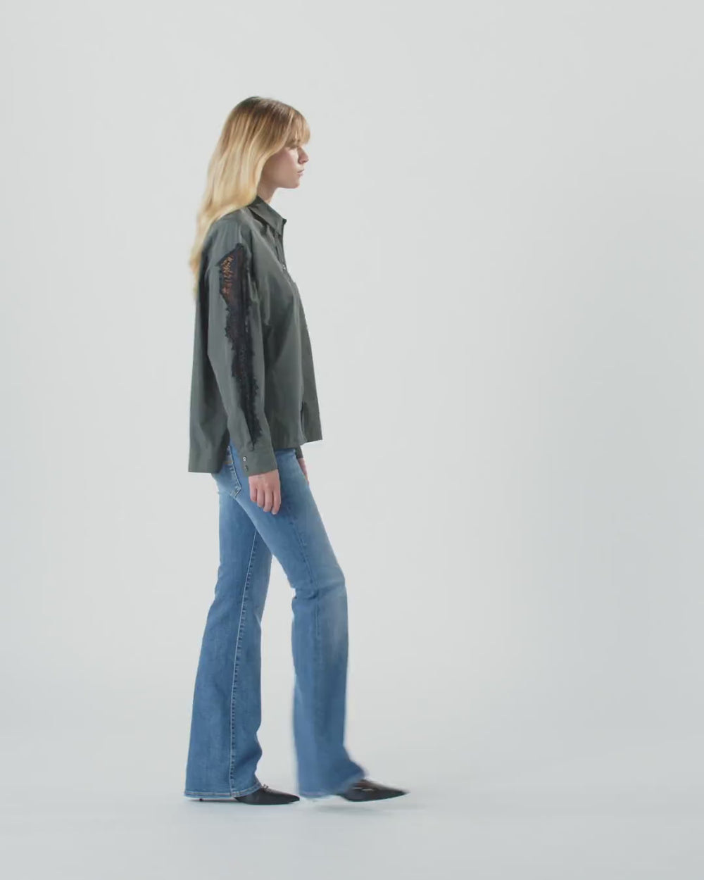Πουκάμισο από ταφτά μικροϊνών με memory. Η κυματιστή όψη του υφάσματος συνδυάζεται τέλεια με τα τμήματα από δαντέλα στα μανίκια δημιουργώντας ένα απαλό εφέ lingerie, ενώ η τσέπη μπροστά και η πρακτική θηλιά πίσω προσδίδουν μια πιο σπορ πινελιά. Συνδυάστε το πουκάμισο με ένα τζιν παντελόνι για να αναβαθμίσετε τις καθημερινές σας εμφανίσεις με ένα θηλυκό και πρωτότυπο ρούχο που δεν περνά απαρατήρητο.