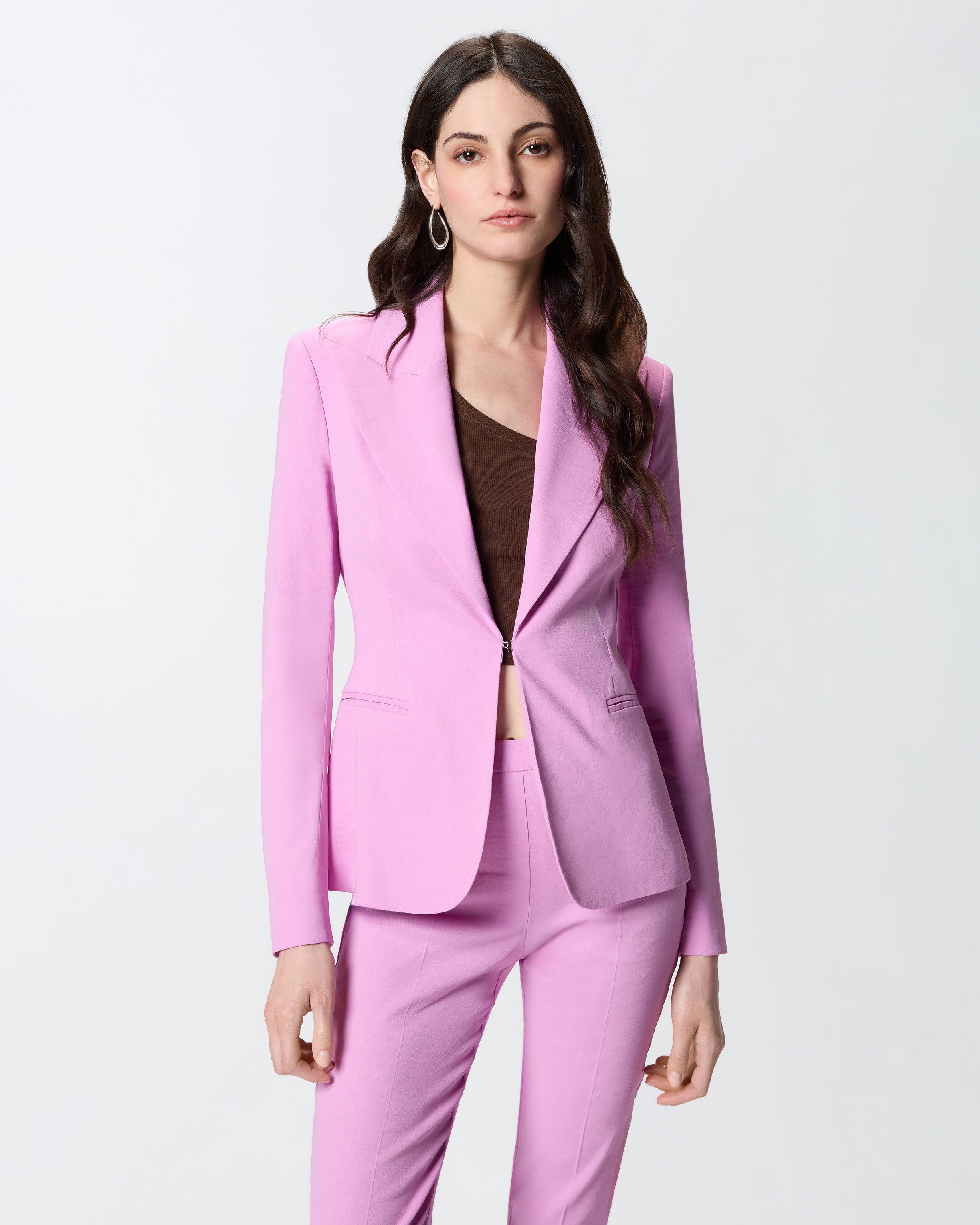 Κομμάτι-κλειδί της σεζόν, αυτό το σακάκι επαναπροσδιορίζει το κλασικό λινό με τη σύγχρονη ελαφρότητα της ελαστικής βισκόζης, δημιουργώντας ένα ύφασμα που ρέει πάνω στο σώμα διατηρώντας τη δομή της σιλουέτας. Η μονόπετη γραμμή με ένα κουμπί, τα πέτα και οι μπροστινές τσέπες προσδίδουν καθαρό και εκλεπτυσμένο χαρακτήρα. Το πίσω άνοιγμα και η εσωτερική φόδρα εξασφαλίζουν άψογη εφαρμογή από το γραφείο μέχρι το aperitivo. Συνδύασέ το με το ασορτί παντελόνι για ένα δυναμικό total look ή με denim για ένα effortlessly chic αποτέλεσμα.