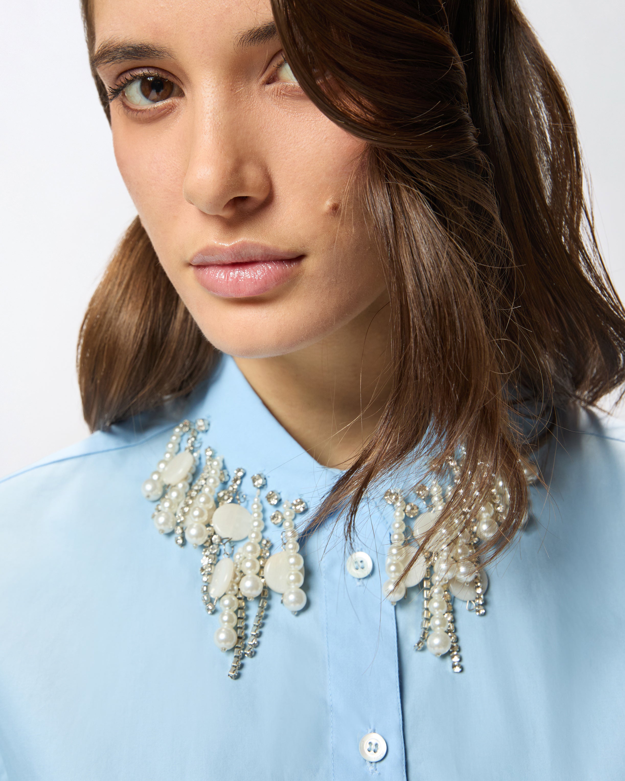 Cropped shirt with jewel embellishments