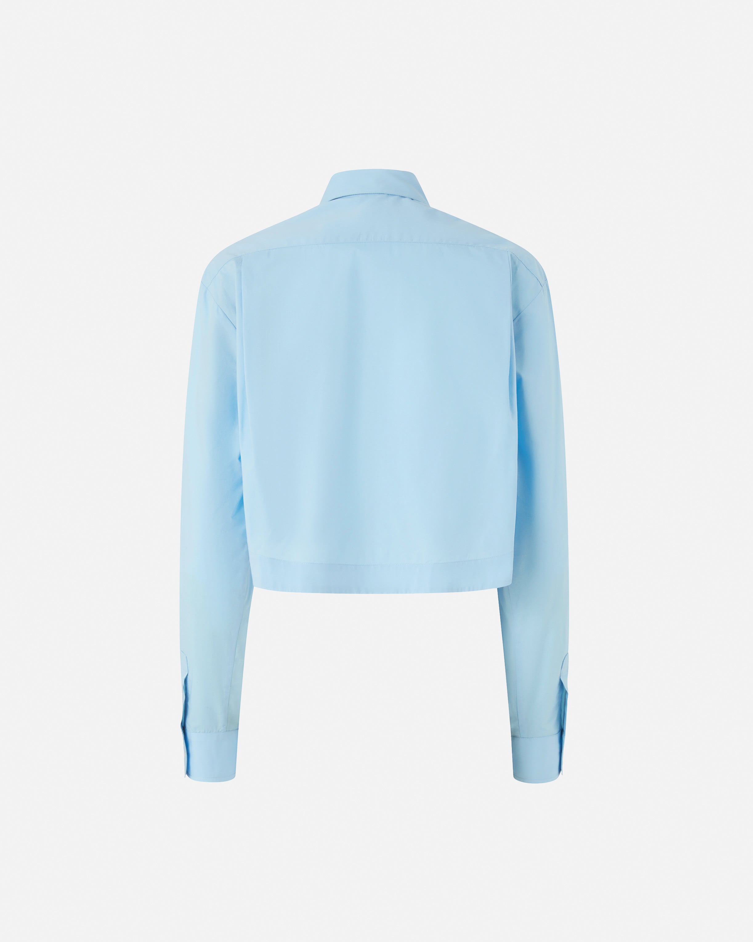 Cropped shirt in pure monochrome cotton poplin. The collar is characterized by a precious handmade embroidery with glass applications and metal chains with rhinestones, sewn one by one, which give movement and light to the garment. The embroidery of the Love Birds logo on the front, on the left side, personalizes the garment in pure PINKO style. Pair the shirt with a pair of jeans to elevate your everyday look with a feminine and original piece that does not go unnoticed.