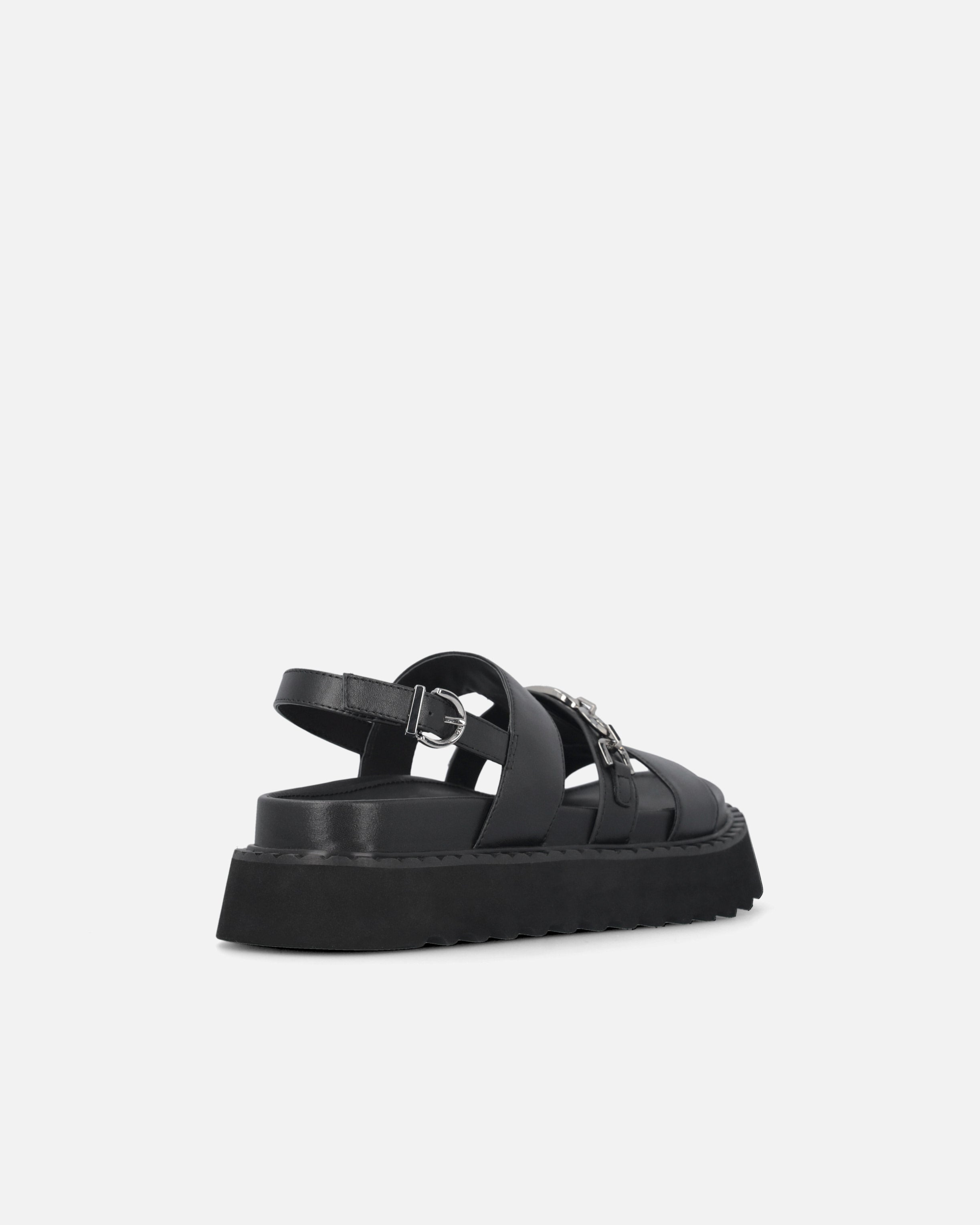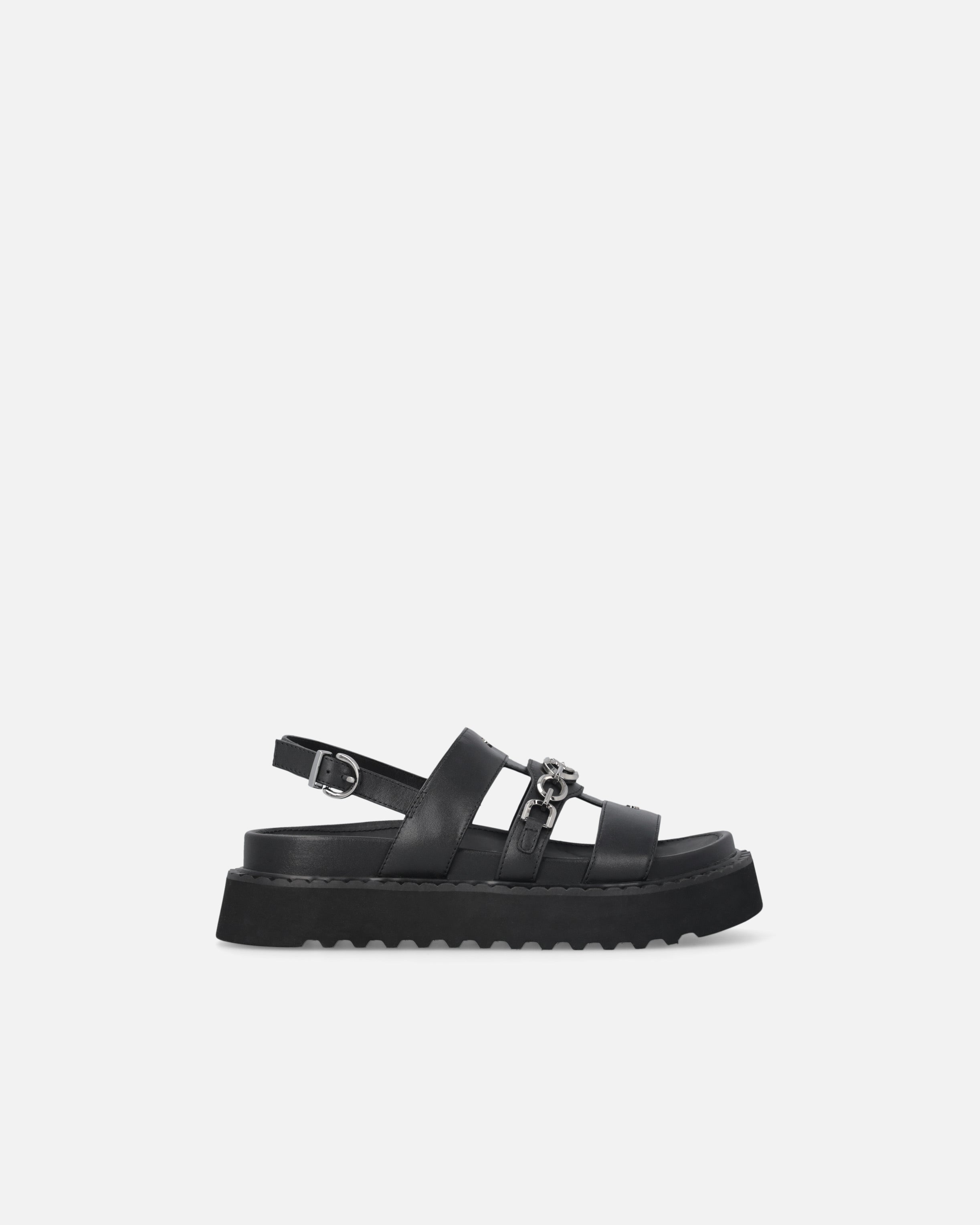Soft leather sandals with a bold, contemporary aesthetic, accentuated by the three straps on the upper, the thick rubber lug outsole and the metal chain detail with the iconic Love Birds Diamond Cut logo that adorns the central strap. The style features a leather insole for enhanced comfort while walking and wearing, along with a comfortable adjustable strap with branded buckle for greater stability. These urban-style sandals will become your go-to for adding a relaxed touch to any look with a chunky and rock aesthetic that doesn't compromise on practicality.
