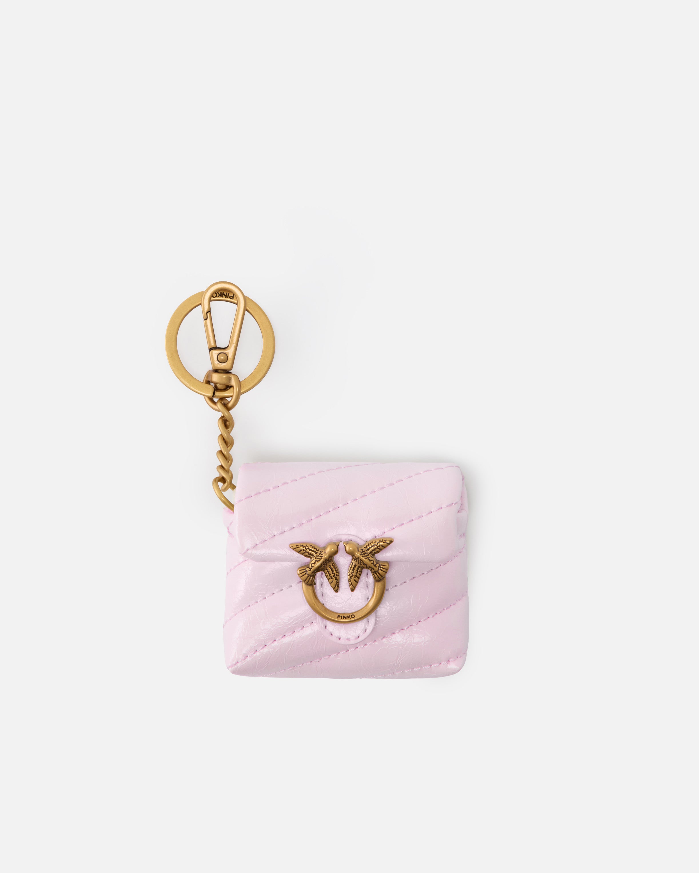 AirPods case in soft, glossy leather with diagonal quilting, customised with iconic Love Birds Diamond Cut plaque on the magnetic closure. The accessory also comes with a metal chain with a small clasp, enabling you to attach it to your bag and keep it with you at all times. - AIRPODS LOVE PUFF