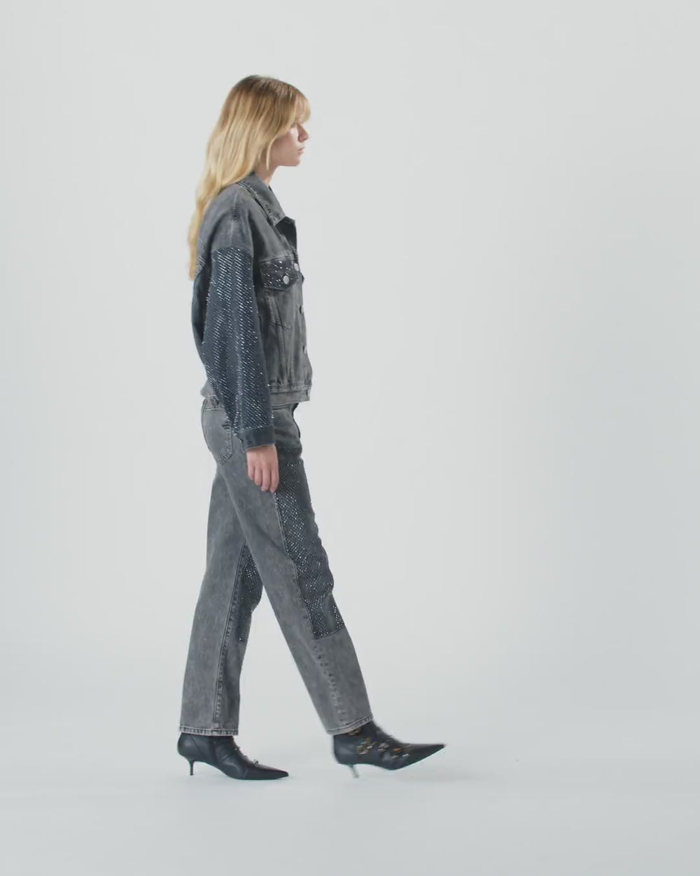 Denim trucker jacket with mini studs