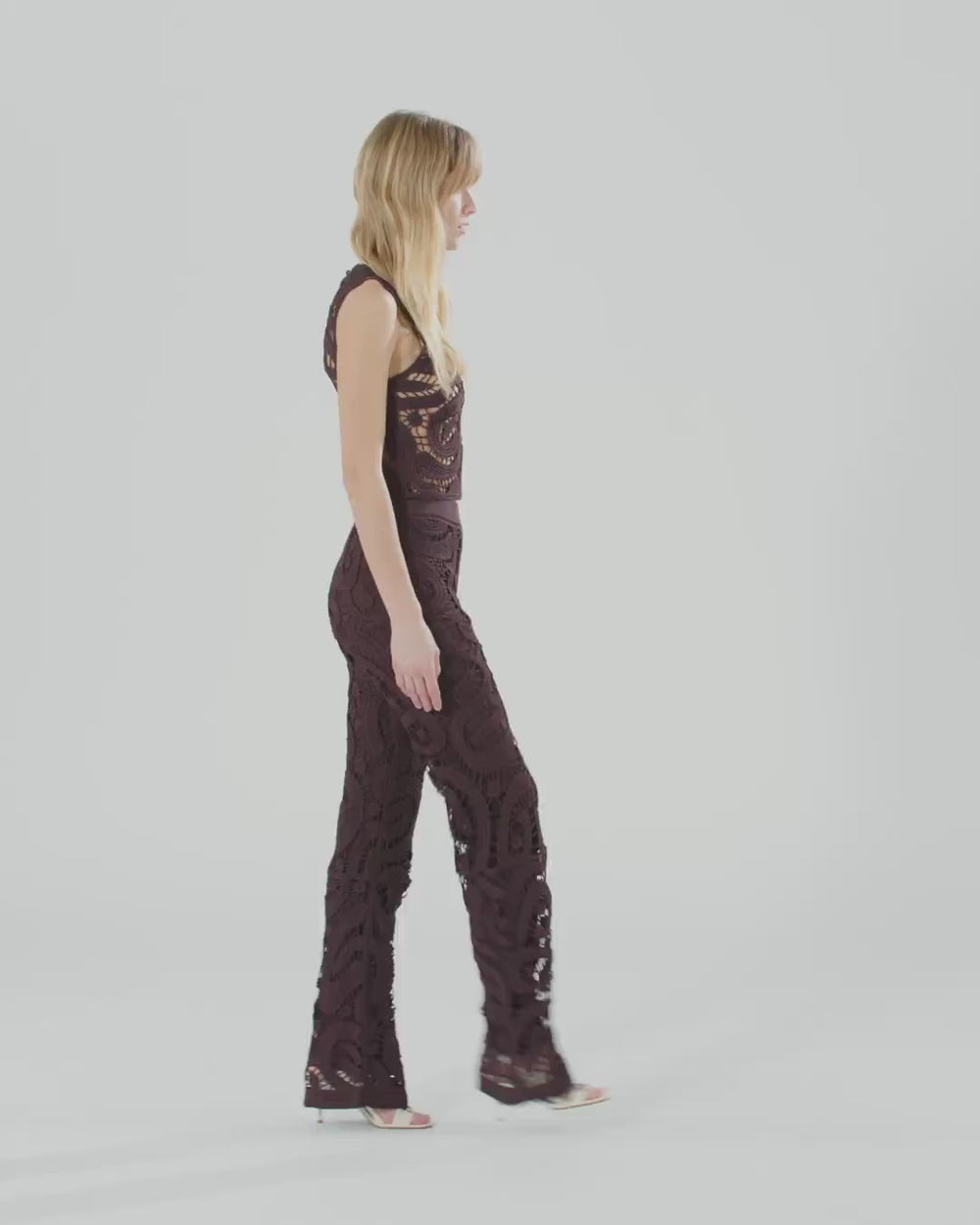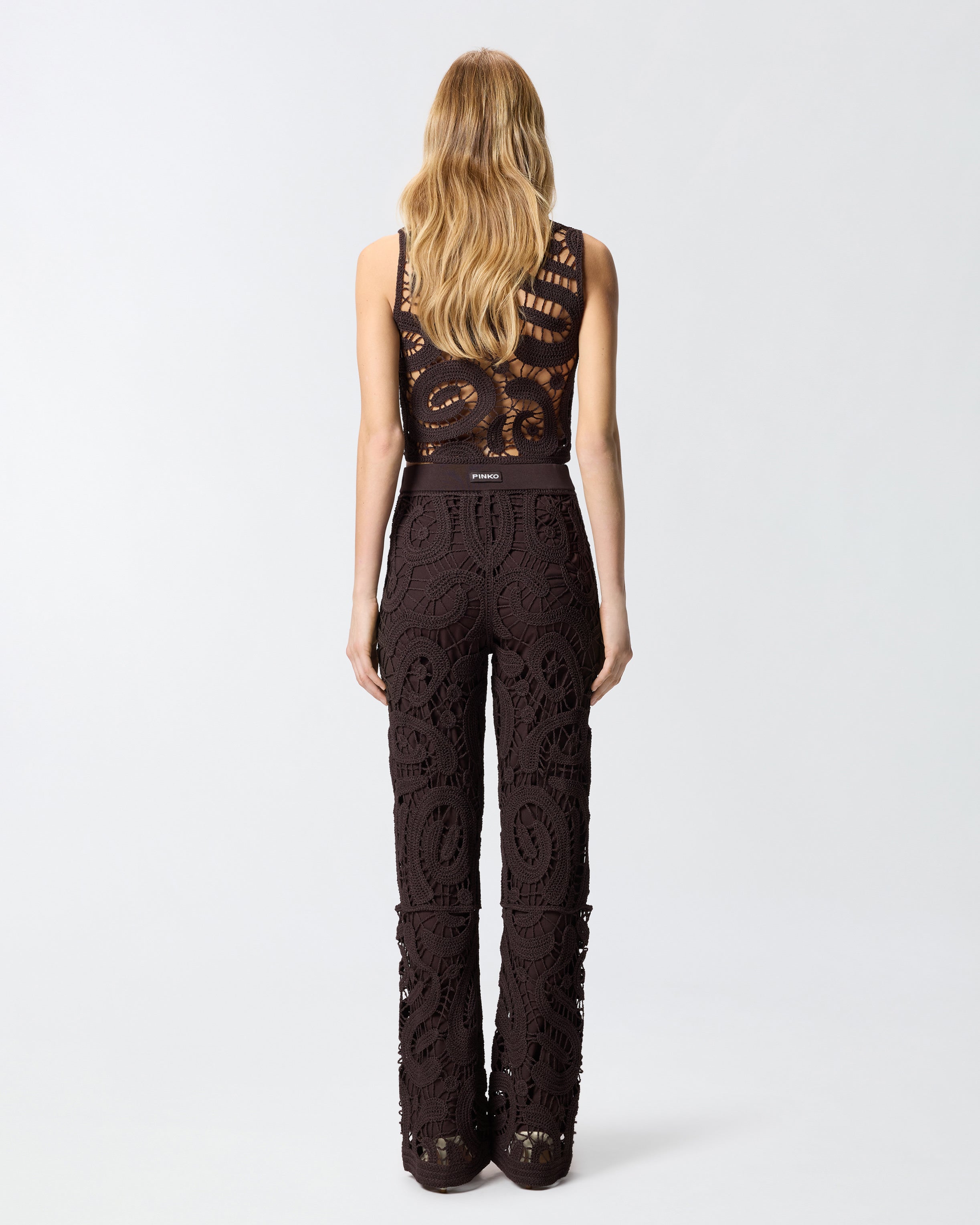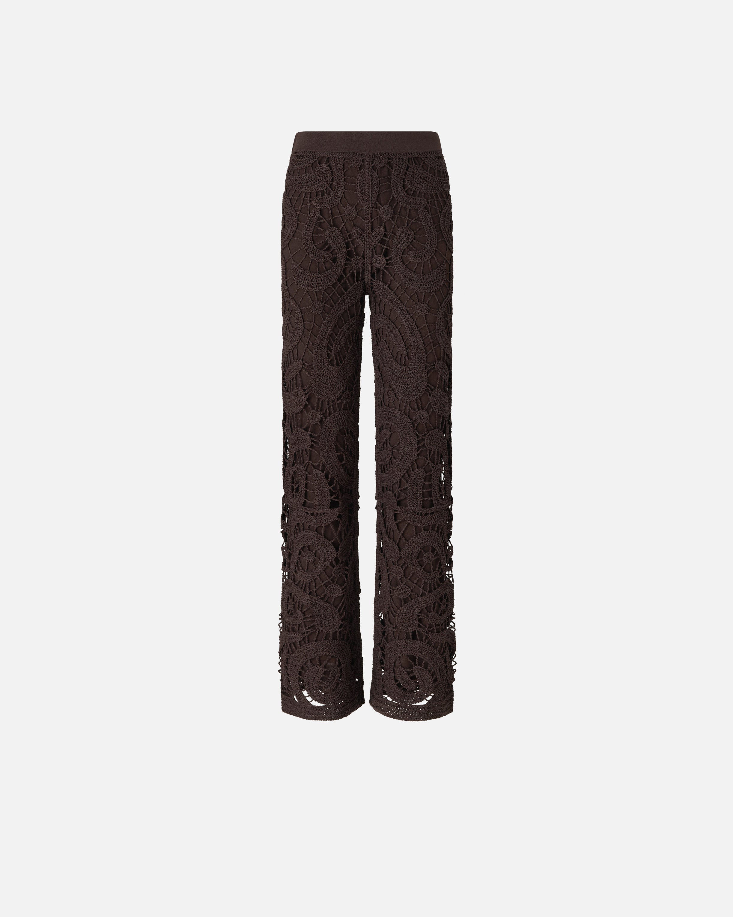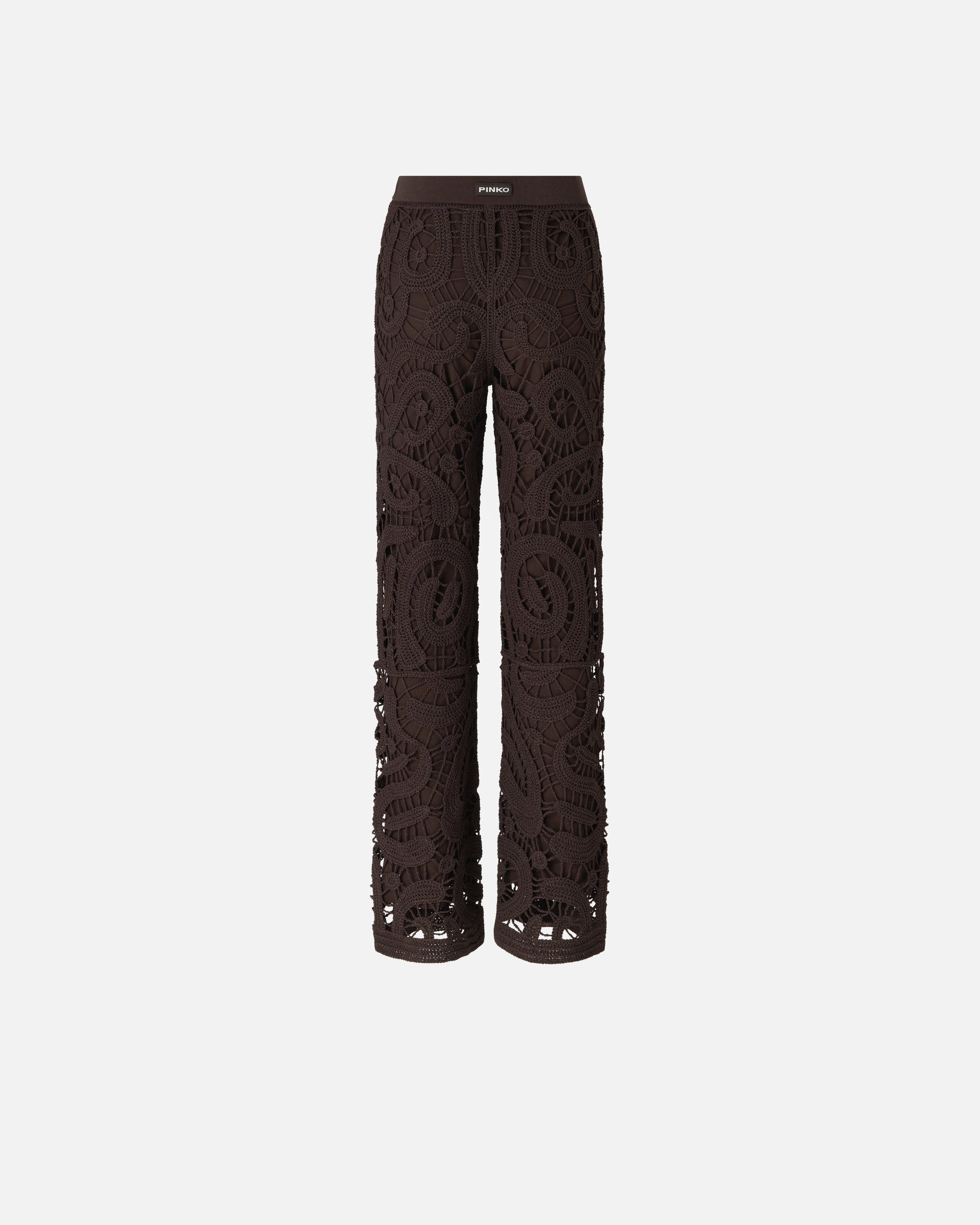 Straight-leg trousers with refined crochet detailing sporting an innovative geometric pattern that gives the design a dynamic edge and creates a sheer effect. Give your looks a unique touch with this modern, feminine garment.