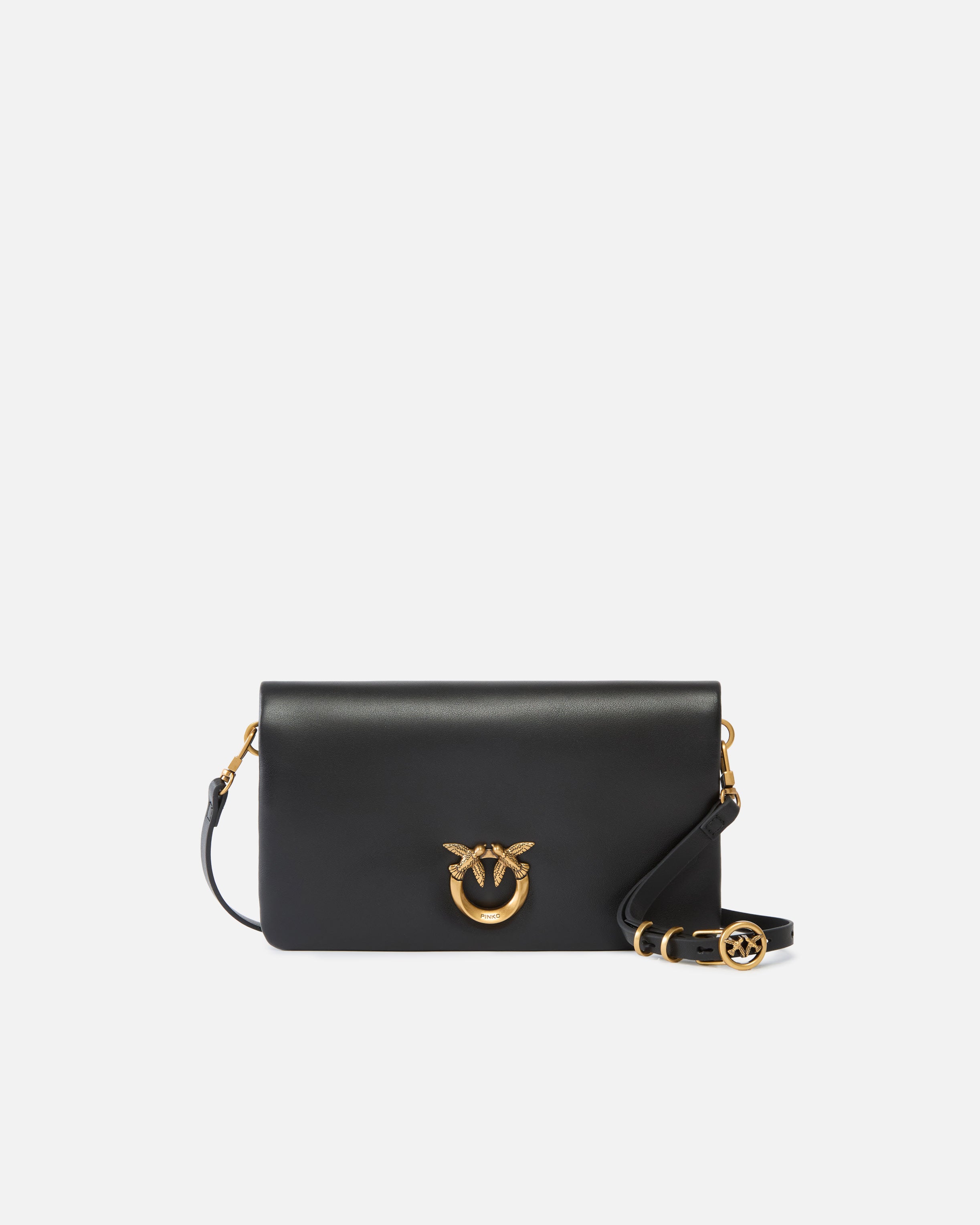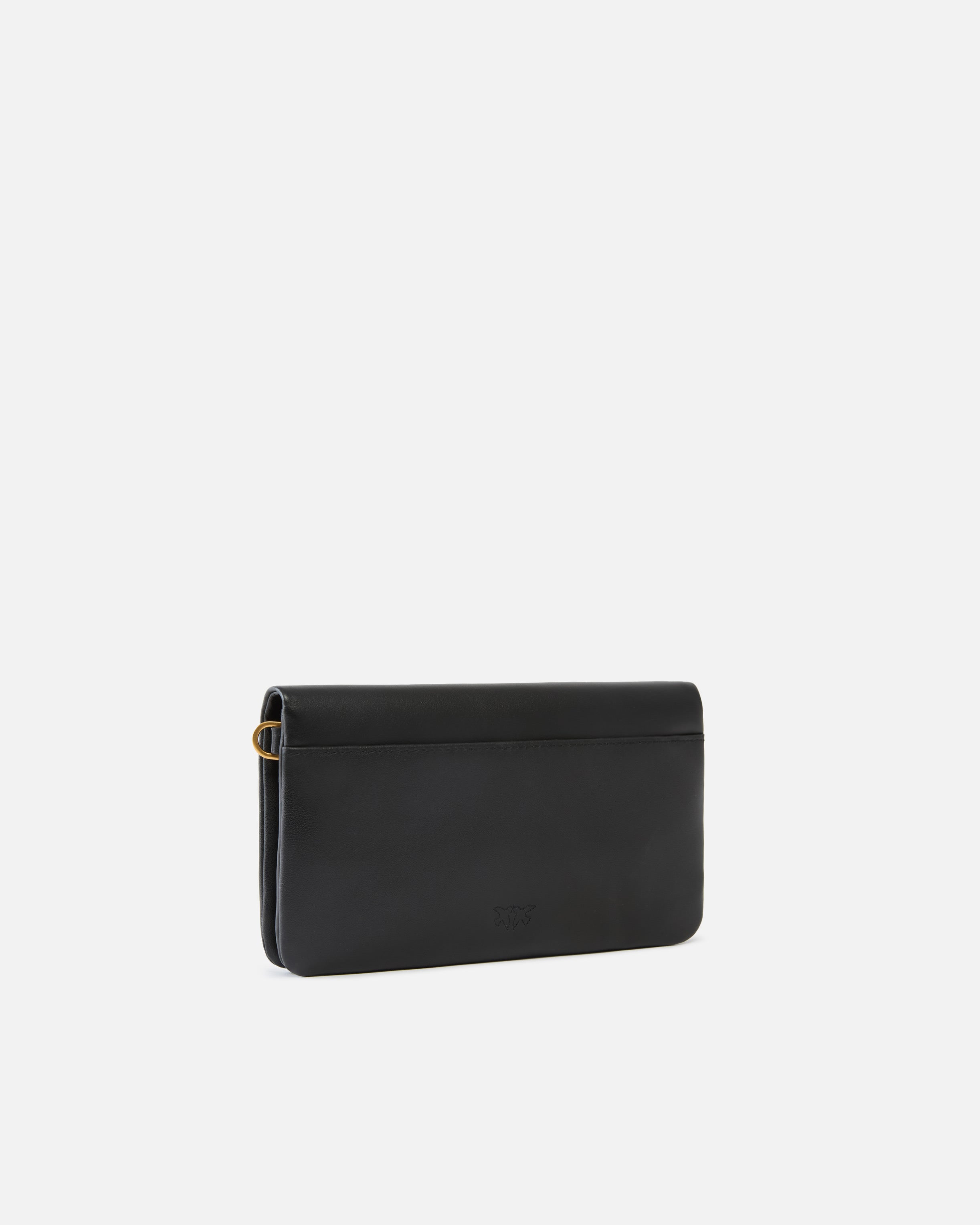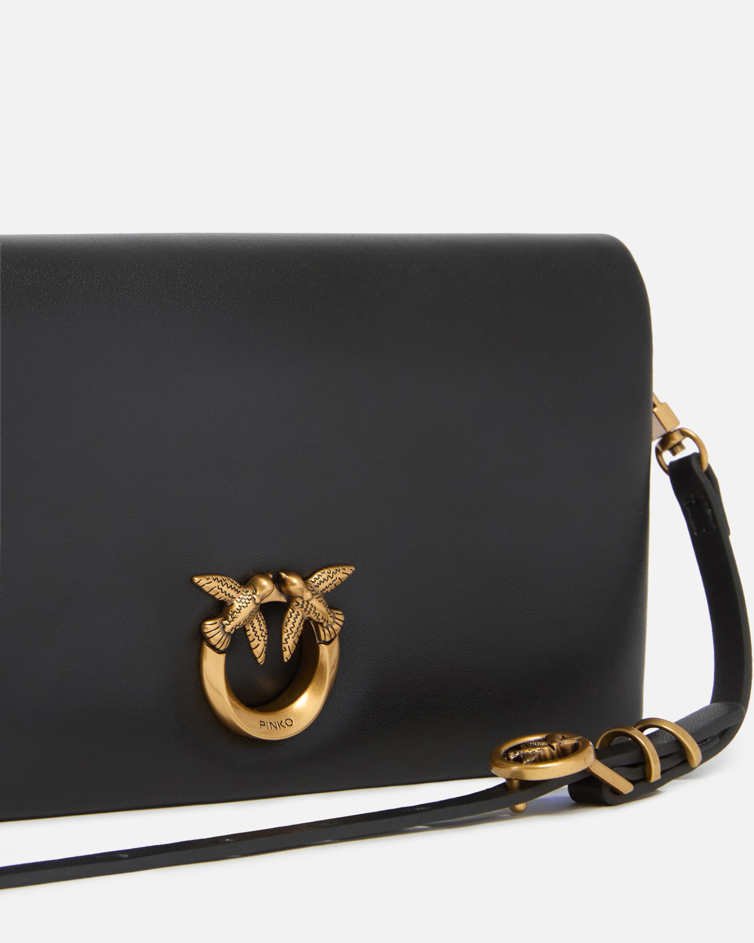 Love Bag Click Soft Horizontal Mini small-sized clutch with flat, rectangular design, made from soft leather. This bag, padded and customised with the iconic Love Birds Diamond Cut metal logo on the front, can be carried on the shoulder, crossbody or by hand thanks to an adjustable and removable leather strap with metal rings that form the PINKO logo lettering. Fastened with two inner magnetic buttons, the cotton drill-lined interior features a zipped slip pocket. Activate your PINKO bag: verify the authenticity of your product and access a personalised experience by scanning the Love Birds embroidery on the back of the bag with your smartphone!