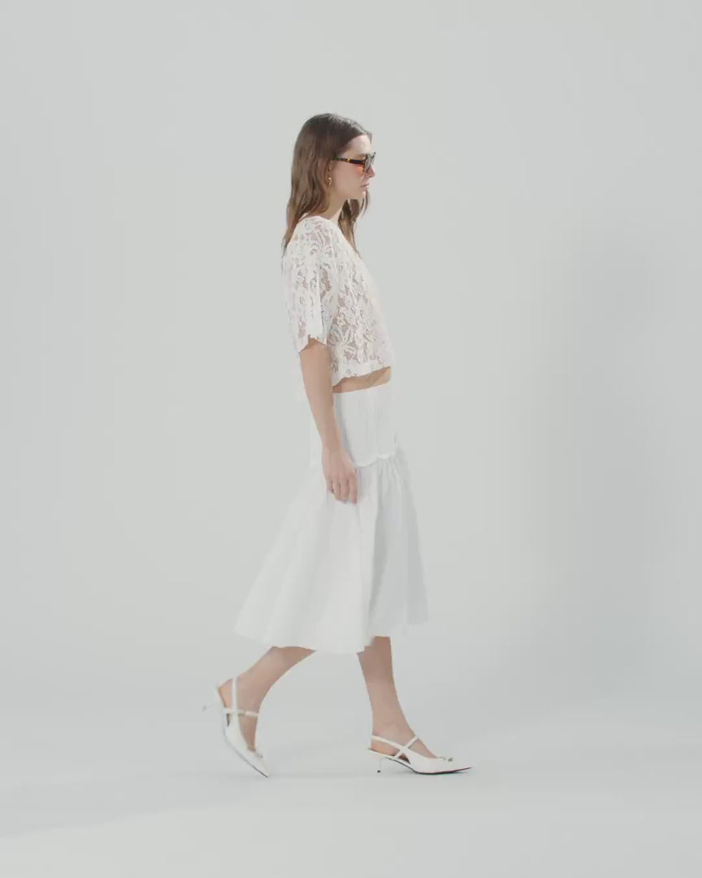 Midi skirt made from stretch cotton-blend poplin that offers the perfect combination of freshness and comfort. This flared piece with delicate pleating stands out for the waistband accentuated by smocking that forms numerous gathered, elasticated rows and edged with delicate ruching that lends dynamic movement and refinement. Pair with a crop top, soft knit cardigan and pair of heels for the perfect boho-chic outfit.