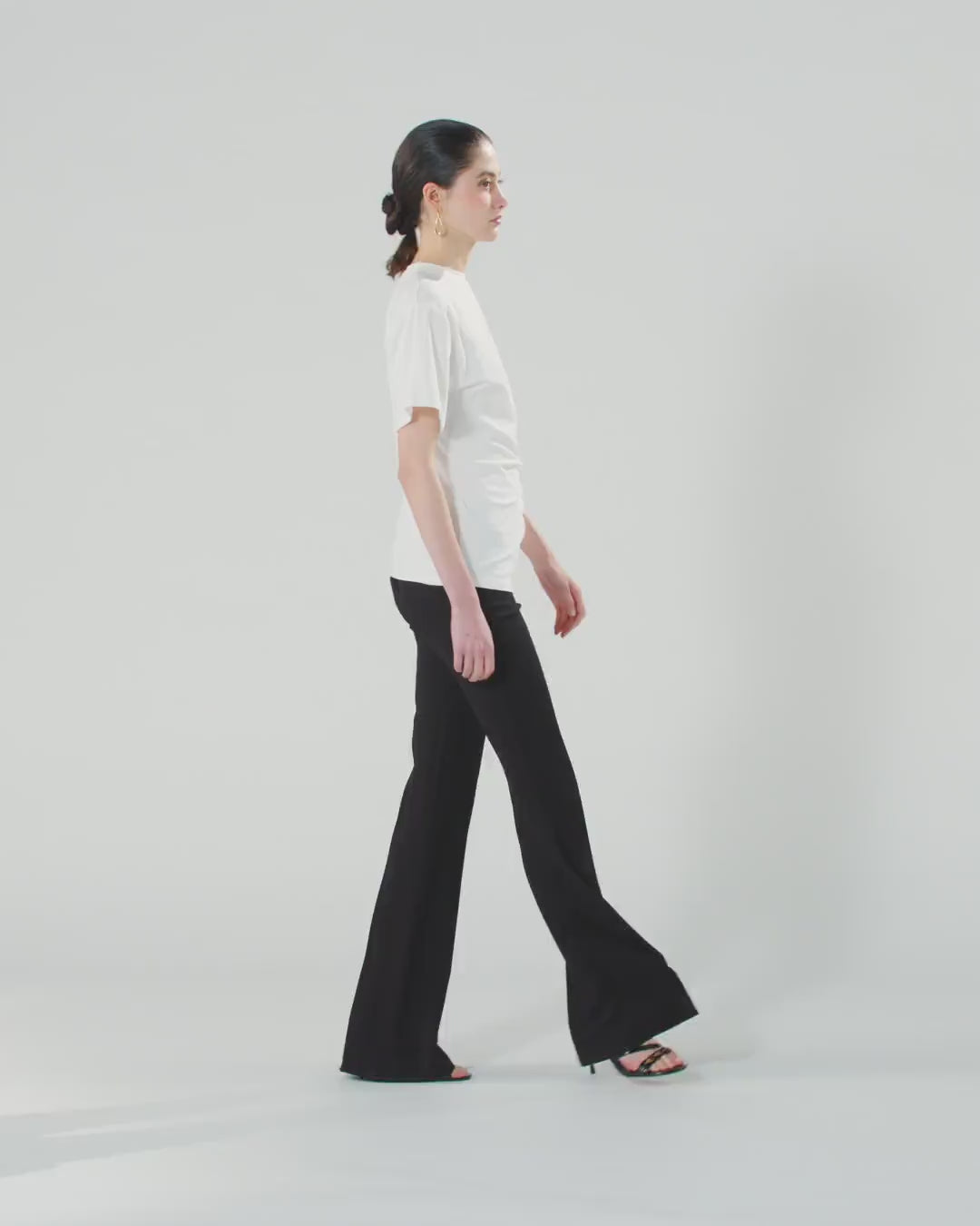 Short-sleeved crew-neck T-shirt in Supima stretch cotton interlock, a premium fabric with a soft and compact feel and a shiny effect. Enhancing the garment is an unmistakably glamorous detail in true PINKO style: a gold-toned detail at the waist that creates a refined draped effect at the front. A versatile piece that is easy to wear with a pair of jeans or layer under a jacket for a casual look.