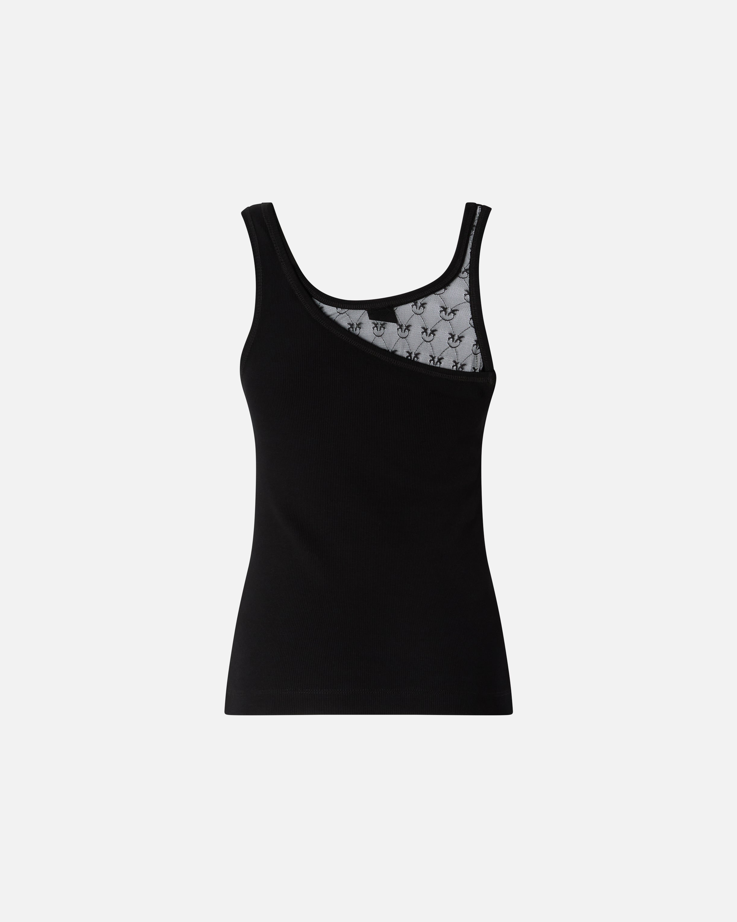 Round-neck top in soft, ribbed stretch cotton fabric, featuring a sheer lace insert with the Love Birds logo all over. Wear this garment with your favourite jeans for a modern look that won't sacrifice femininity. - CUPBOARD TANK TOP