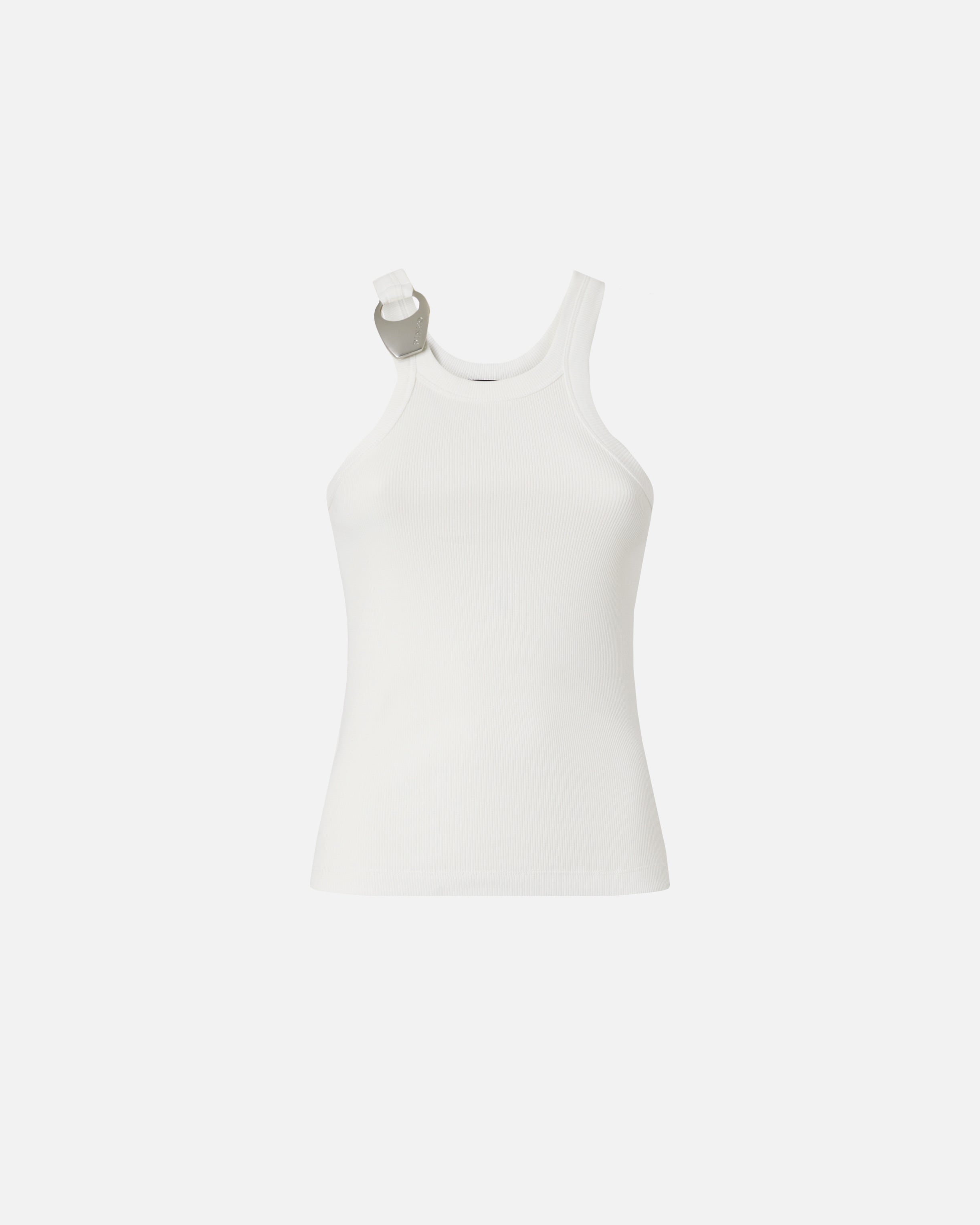 Vest top made of pure ribbed cotton and characterised by an original pendant buckle engraved with the PINKO logo lettering at the shoulder strap. Understated and contemporary, this model will become a real all-purpose staple in your wardrobe.