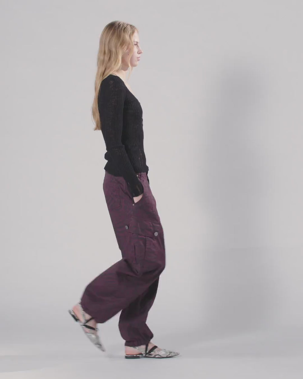 Long-sleeved sweater with wide crew neck and granddad button placket. Made from a lightweight jacquard fabric in a slub cotton blend with tears, the style features a ribbed construction that highlights the textured, uneven surface characteristic of the yarn. The final touch is given by the label with jacquard PINKO logo lettering on the back. A must-have garment with a naturally lived-in character, perfect for completing your contemporary outfits without sacrificing comfort.