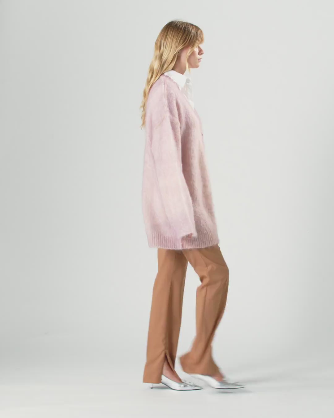 Straight-cut long cardigan with wide long sleeves, made from very soft and pleasant-feeling mohair- and wool-blend fabric with ribbing on the plunging V-neck, button placket and hem. This item's distinct relaxed fit makes it perfect for layering: presenting your new cold-season essential. The piece has undergone finishing tests to minimise the possible formation of pilling, ensuring greater fabric softness and durability.