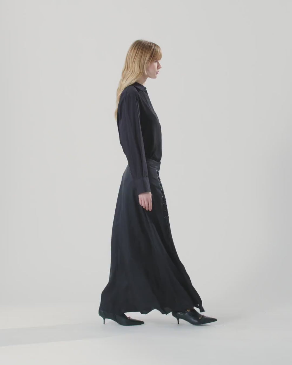 Classic shirt characterized by the combination of cotton poplin with a more compact hand, present on the main body and sleeves, and crêpe de Chine fabric, more fluid, on the slightly gathered back insert. Pointed collar, long sleeves with cuff at the bottom, button closure at the front. Pair the shirt with a pair of jeans to elevate your everyday look with a feminine and original piece that does not go unnoticed. - CASSATA SHIRT