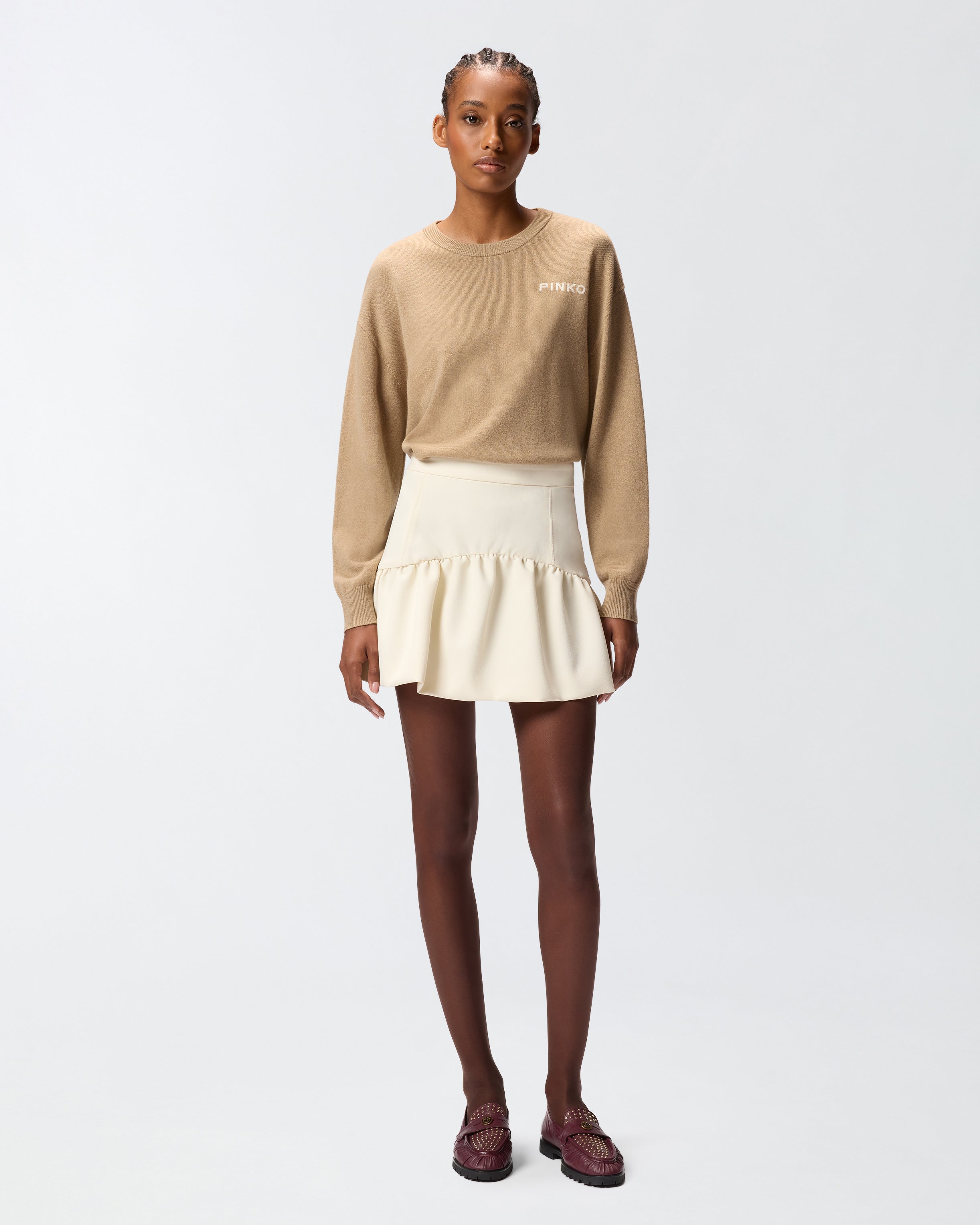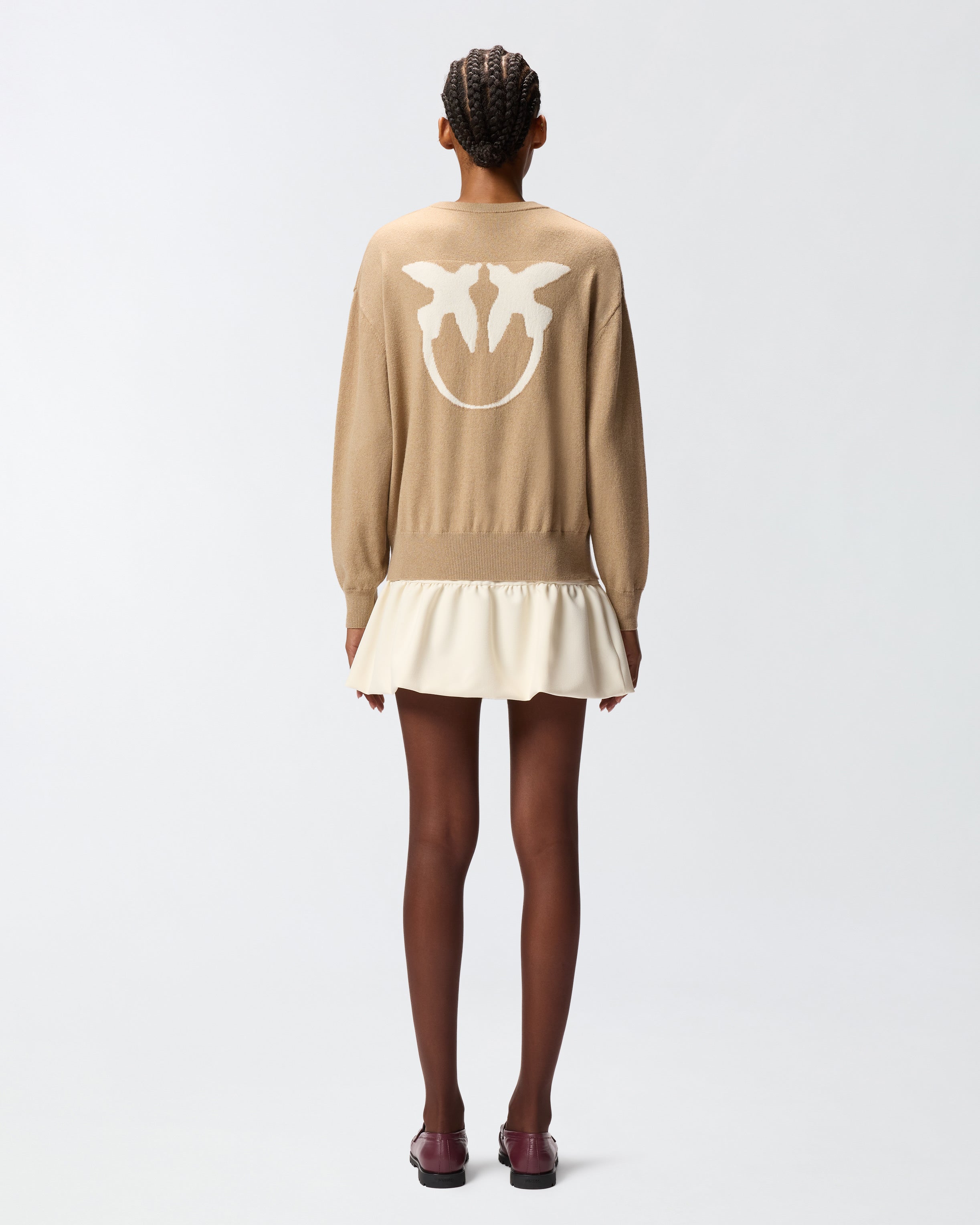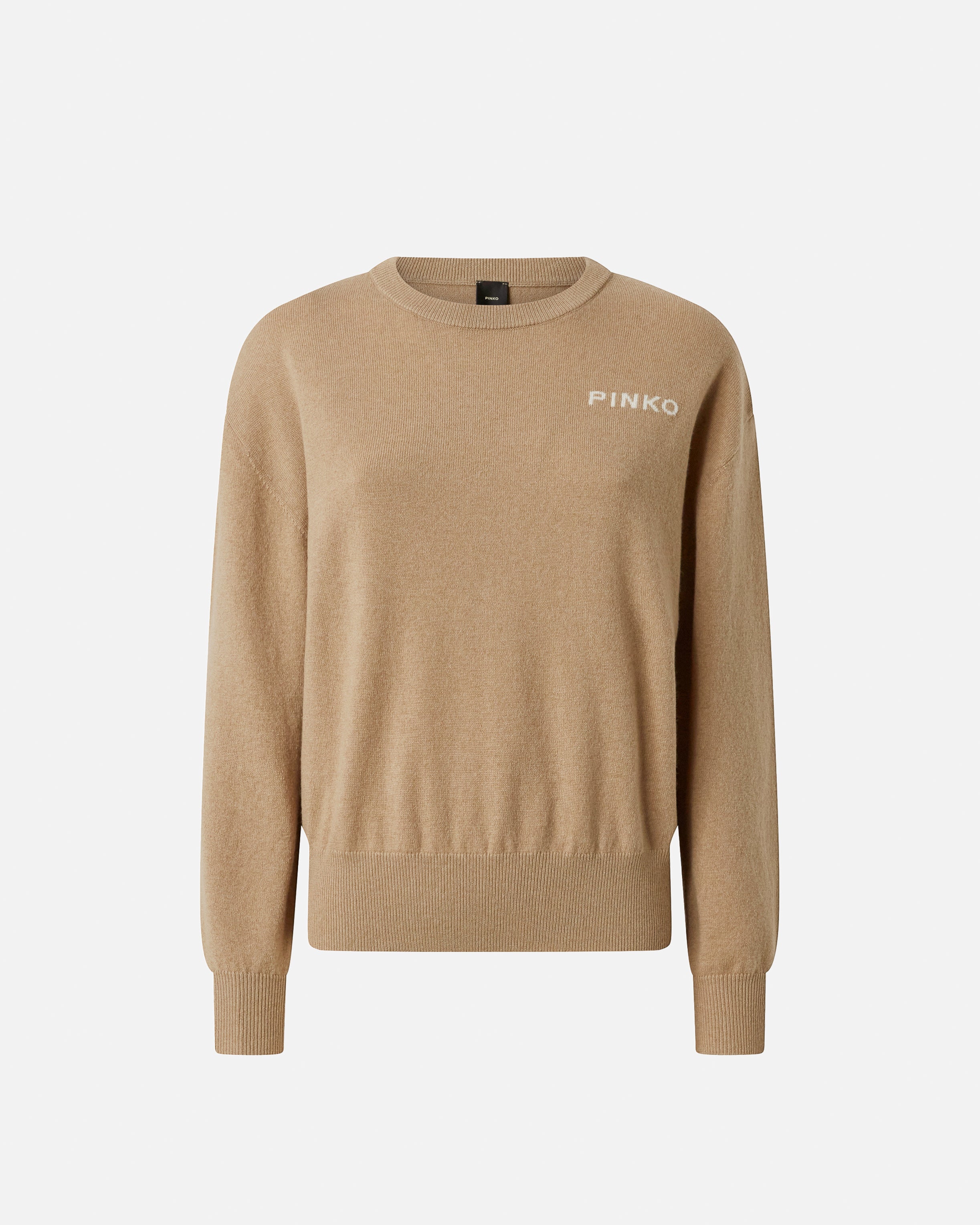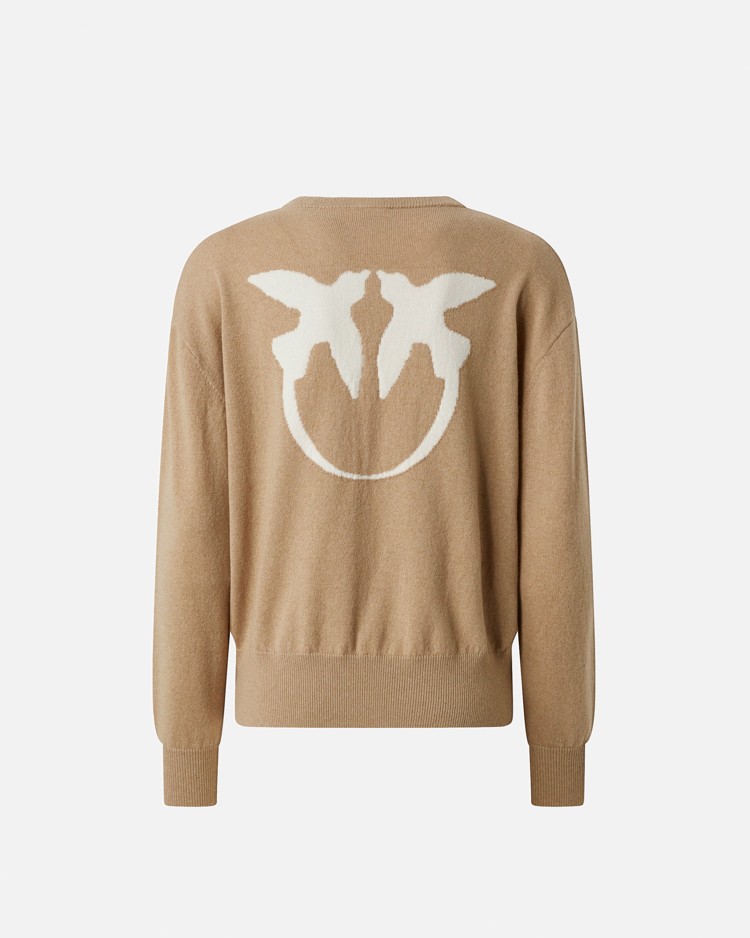 Long-sleeved crew-neck sweater in a fine wool and cashmere blend. The inimitable style of the brand is expressed to the fullest in this garment, embellished by the Love Birds maxi-logo on the back and the contrasting PINKO lettering logo on the front left side. The piece has undergone finishing tests to minimise the possible formation of pilling, ensuring greater fabric softness and durability. The design is completed with a ribbed crew-neck, hem and cuffs.