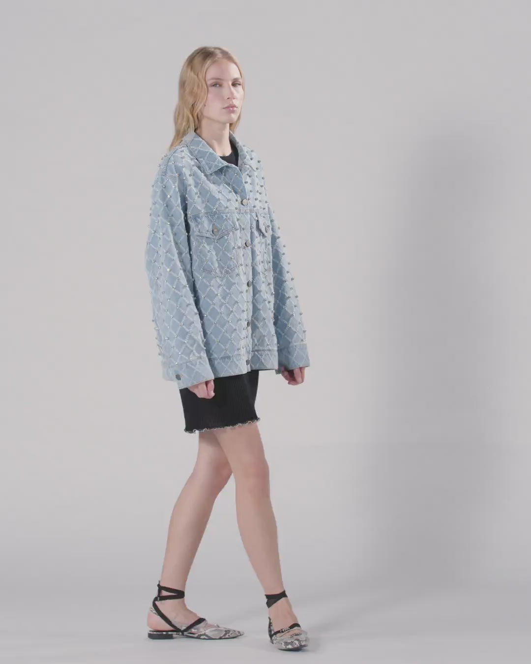 Pure cotton denim jacket with shirt collar, front patch pockets with buttoned flap and buttoned cuffs. This model showcases PINKO's unique flair for modern contrasting touches: the minimalist style of the design is accompanied by a slightly contrasting laser-cut diamond motif enhanced by sparkling hand-embroidered rhinestones. Wear this garment with its matching jeans and get ready to make your everyday looks shine! Model is 177cm tall and wears a size 40. - PIFFERAIO OVERSHIRT