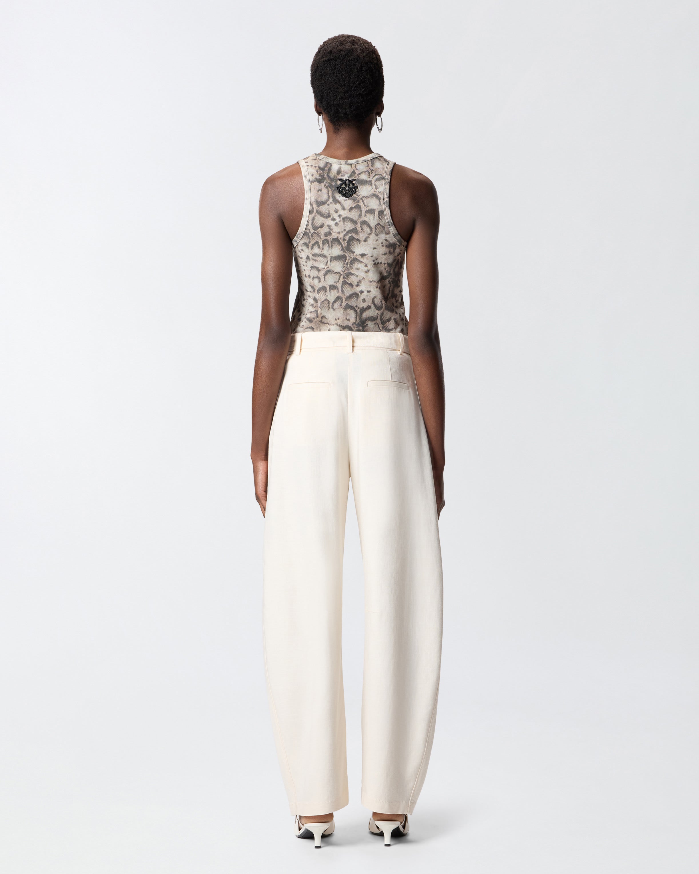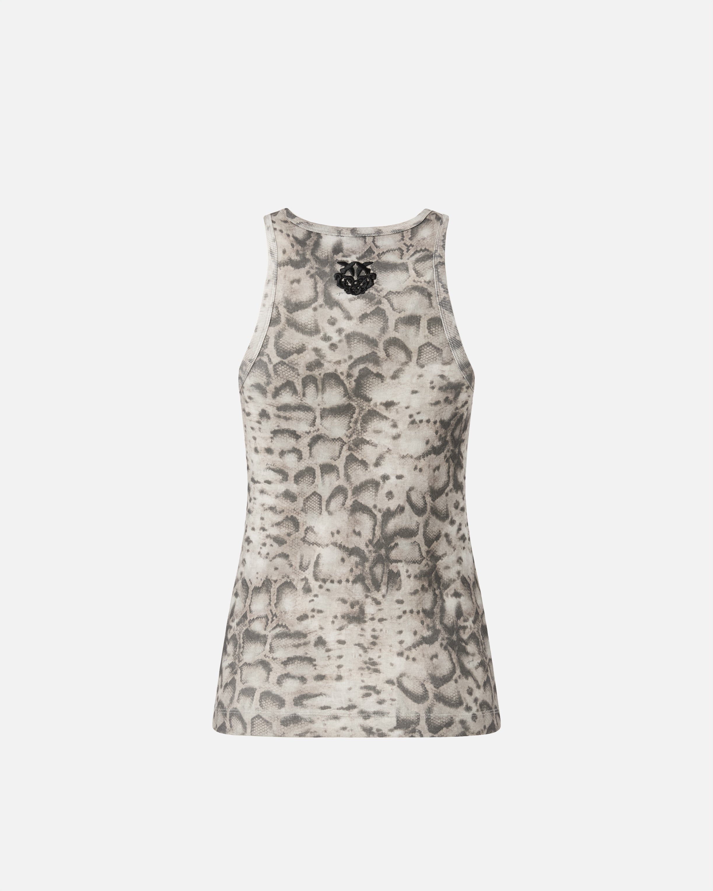 Round-neck vest top in ribbed stretch cotton fabric. This model features an eye-catching all-over snake print and a contrasting embroidered version of the iconic Love Birds at the top on the back, giving it a PINKO-signature custom touch. Thanks to its edgy, modern aesthetic, epitomising PINKO's DNA, this garment will win over animal-print lovers and more the moment they see it.