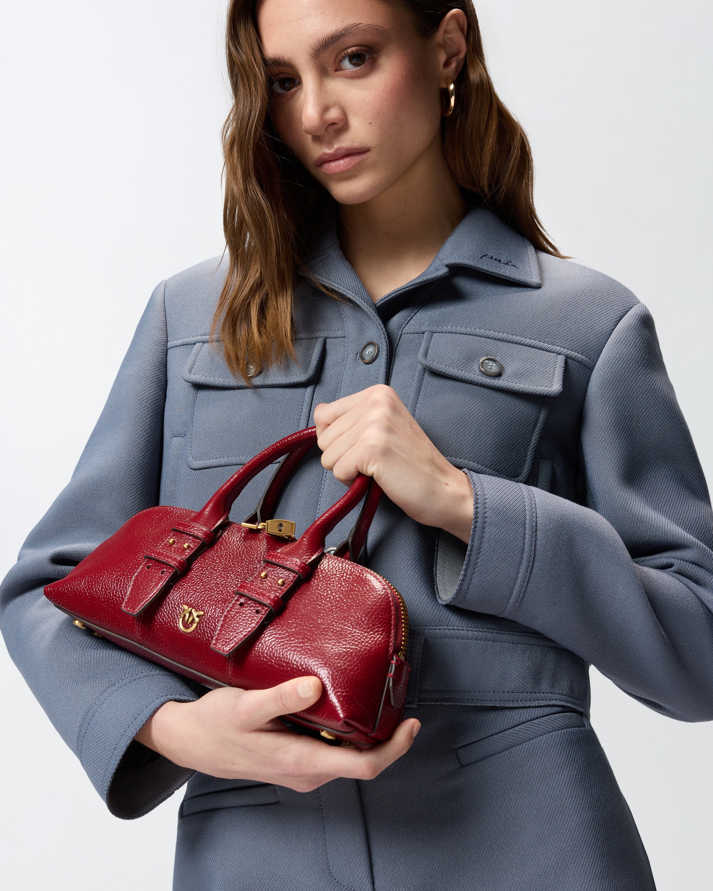 Compact, square-shaped wallet made of soft leather. Featuring back wall pockets and various internal compartments, this model pays homage to the brand's inimitable style with elegant metal rings forming the PINKO lettering logo and completing the flap closure. Activate your PINKO accessory: verify the authenticity of your product and access the personalized experience by holding your smartphone close to the Love Birds embroidery on the back!