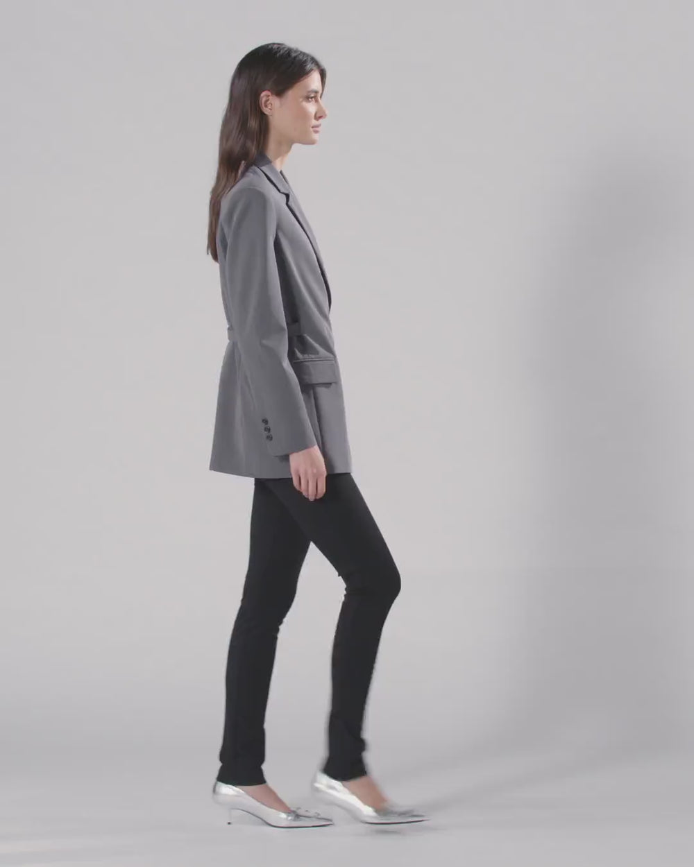 Women's jacket in stretch frescolana, a lightweight, breathable fabric well-suited to the midseason. This piece boasts a refined silhouette with elements typical of classic blazers, including a lapel collar, structured shoulders and flap pockets, as well as innovative touches like the buttonless cross-over front closure and matching belt that ties at the side. Pair the blazer with the trousers in the same fabric to create an elegant yet contemporary outfit.