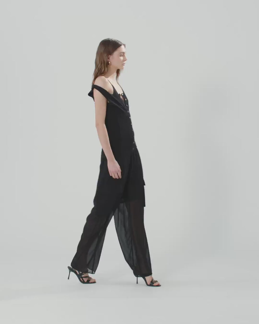 Knitted vest top made of ultra-cool cotton and viscose yarn, finished with a matching bra to be worn together. The fastening with small mother-of-pearl buttons provides subtle elegance perfect for everyday use, while the final touch is given by the label with PINKO logo lettering on the back.