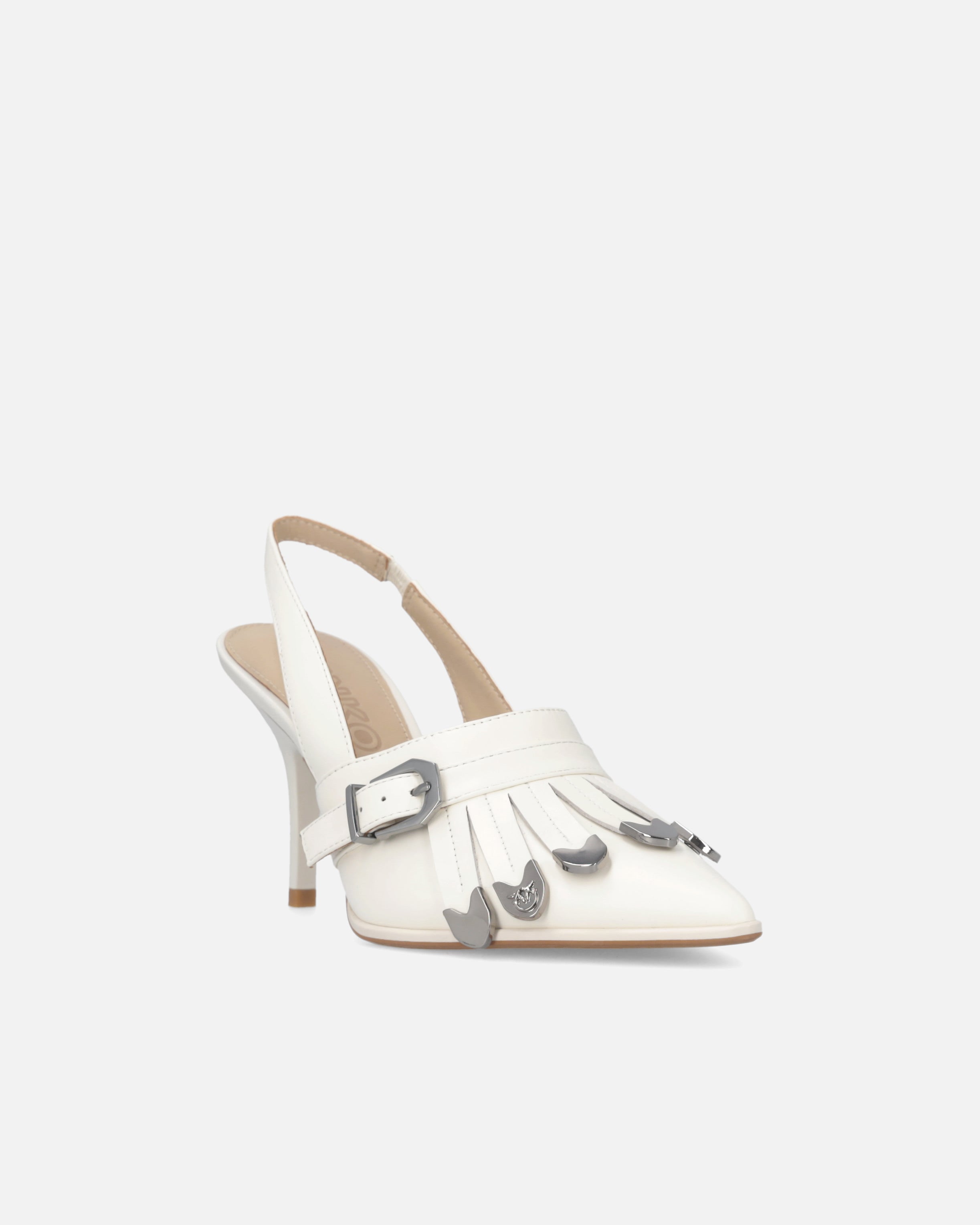 Made from soft leather, these PINKO slingbacks feature a sleek design with an elongated toe and slim heel that creates a slender, ultra-feminine silhouette. This model features details inspired by the world of saddlery that add a bold twist with an unmistakable style, such as the strap buckle and the metal-tipped front fringes, one of which is embellished with the Love Birds logo. A perfect balance between tailoring heritage and contemporary sensuality, these shoes will instantly enhance your daytime and evening outfits. - LADY 04