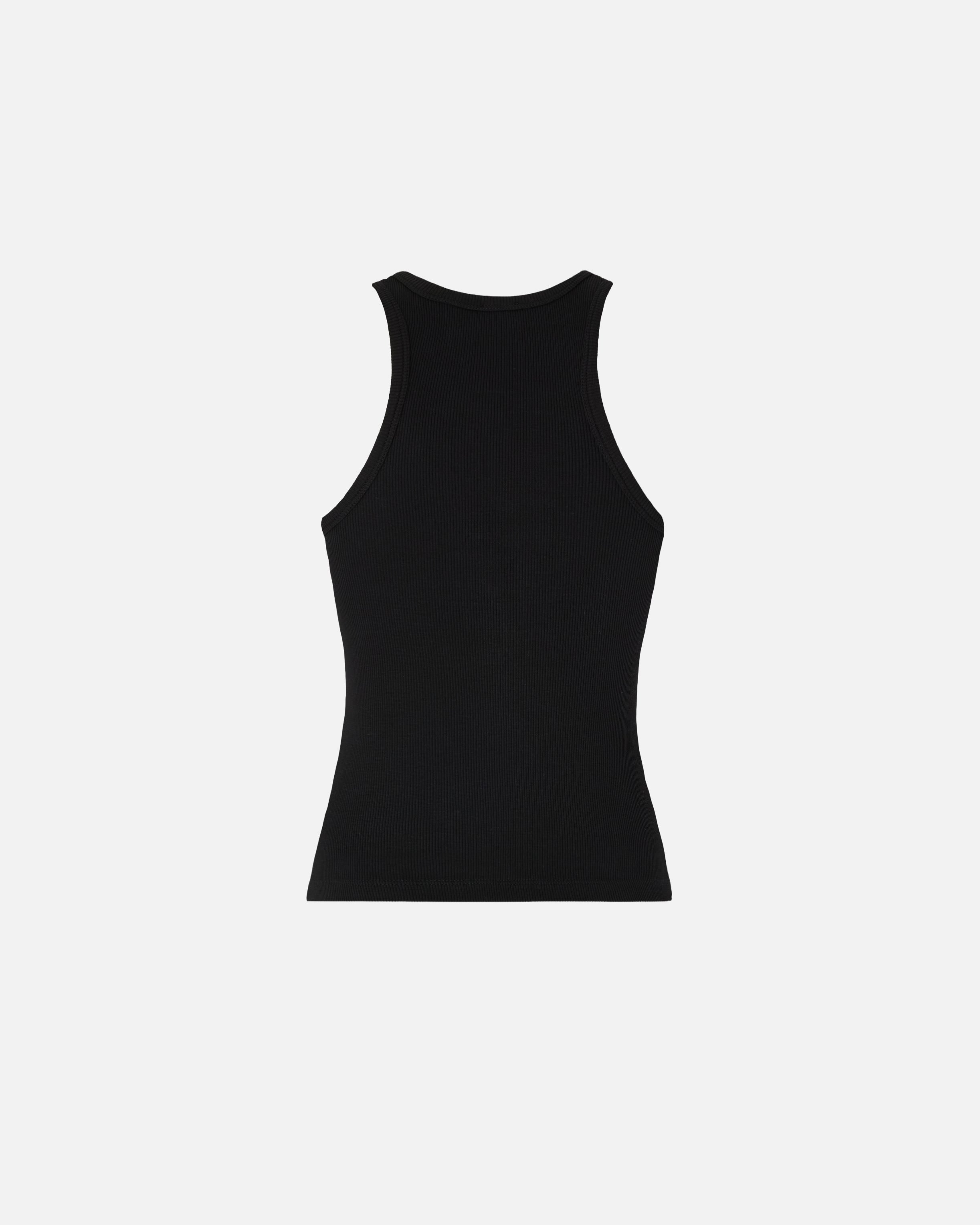 V-neck vest top in ribbed stretch cotton fabric. The design is complete with tone-on-tone embroidery of the PINKO logo lettering on the front. A minimalist women's staple, perfect as part of a functional, modern summer look.