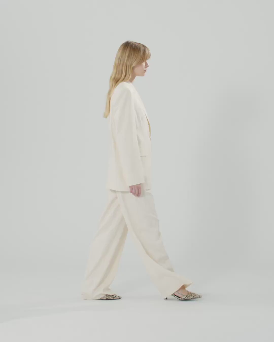 Lined jacket in fluid-effect panama stretch fabric reminiscent of rustic linen. This garment features peak lapels, two front flap pockets, a small welt pocket on the chest and refined slits at the cuffs, and is complete with a single-breasted two-button fastening. Wear this jacket with the matching trousers for a feminine head-to-toe look ideal for formal occasions.