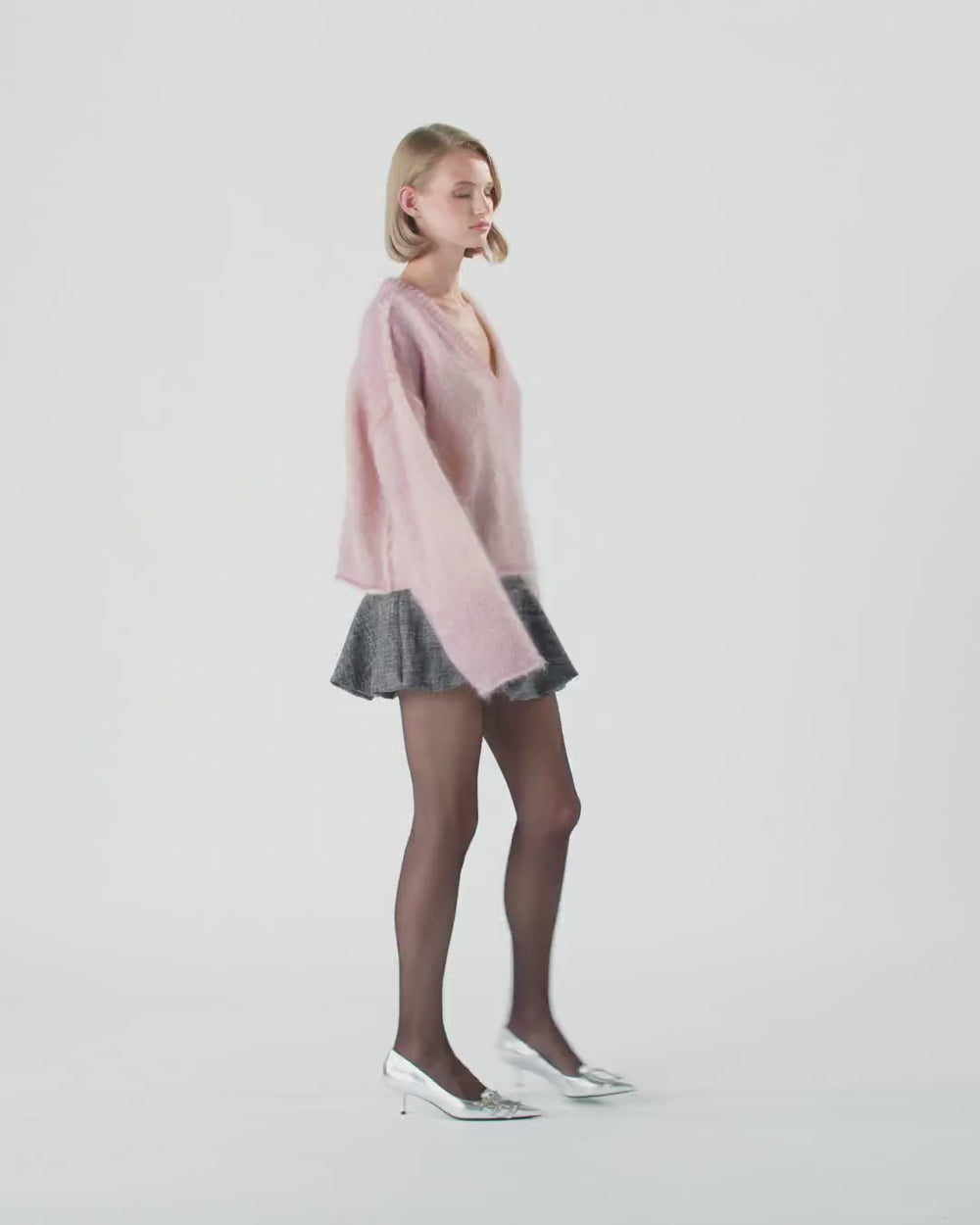 Sweater made from very soft and pleasant-feeling mohair- and wool-blend fabric with ribbing on the plunging V-neck and wide long sleeves with dropped shoulder. This item's distinct relaxed fit makes it perfect for layering: presenting your new cold-season essential. The piece has undergone finishing tests to minimise the possible formation of pilling, ensuring greater fabric softness and durability.