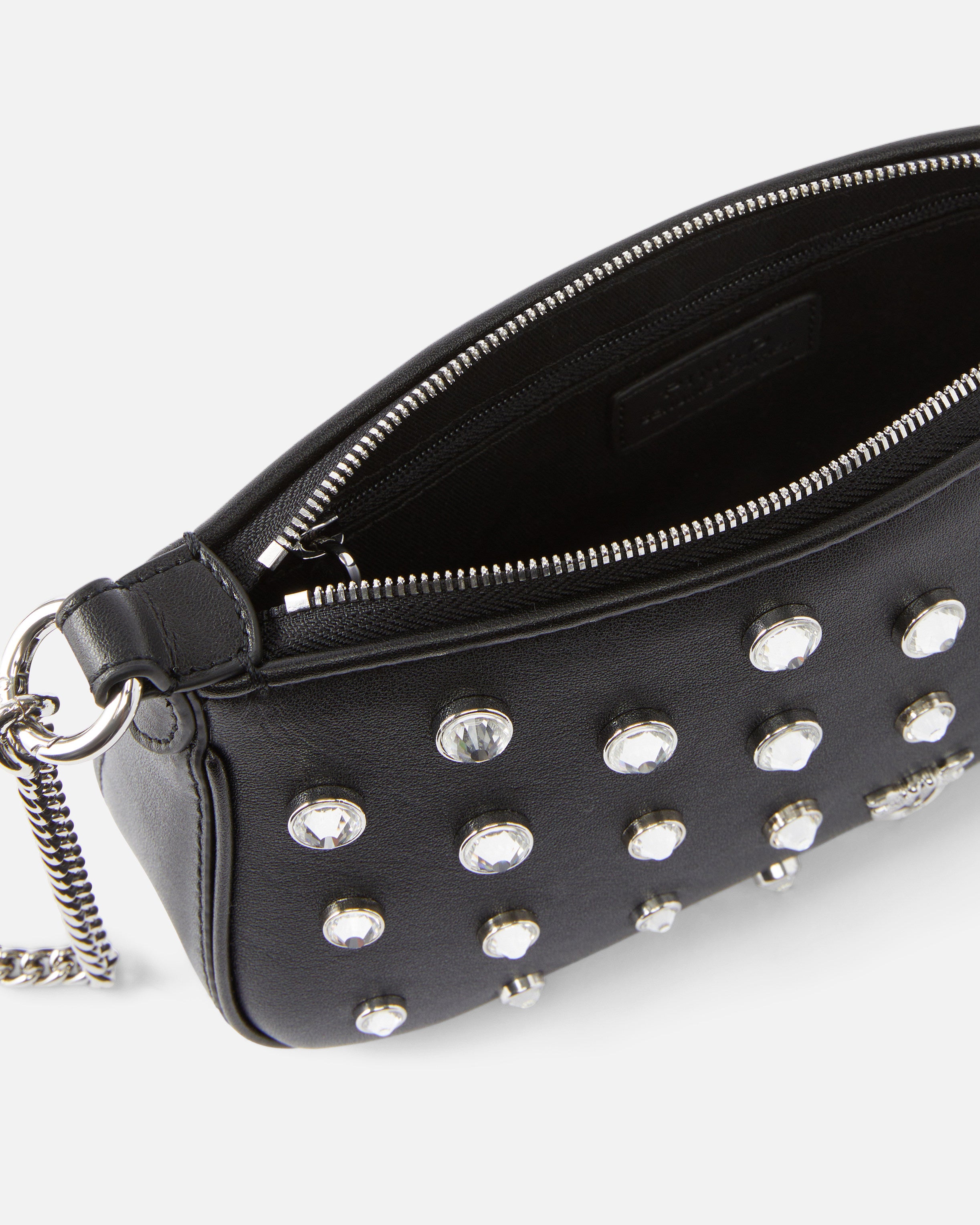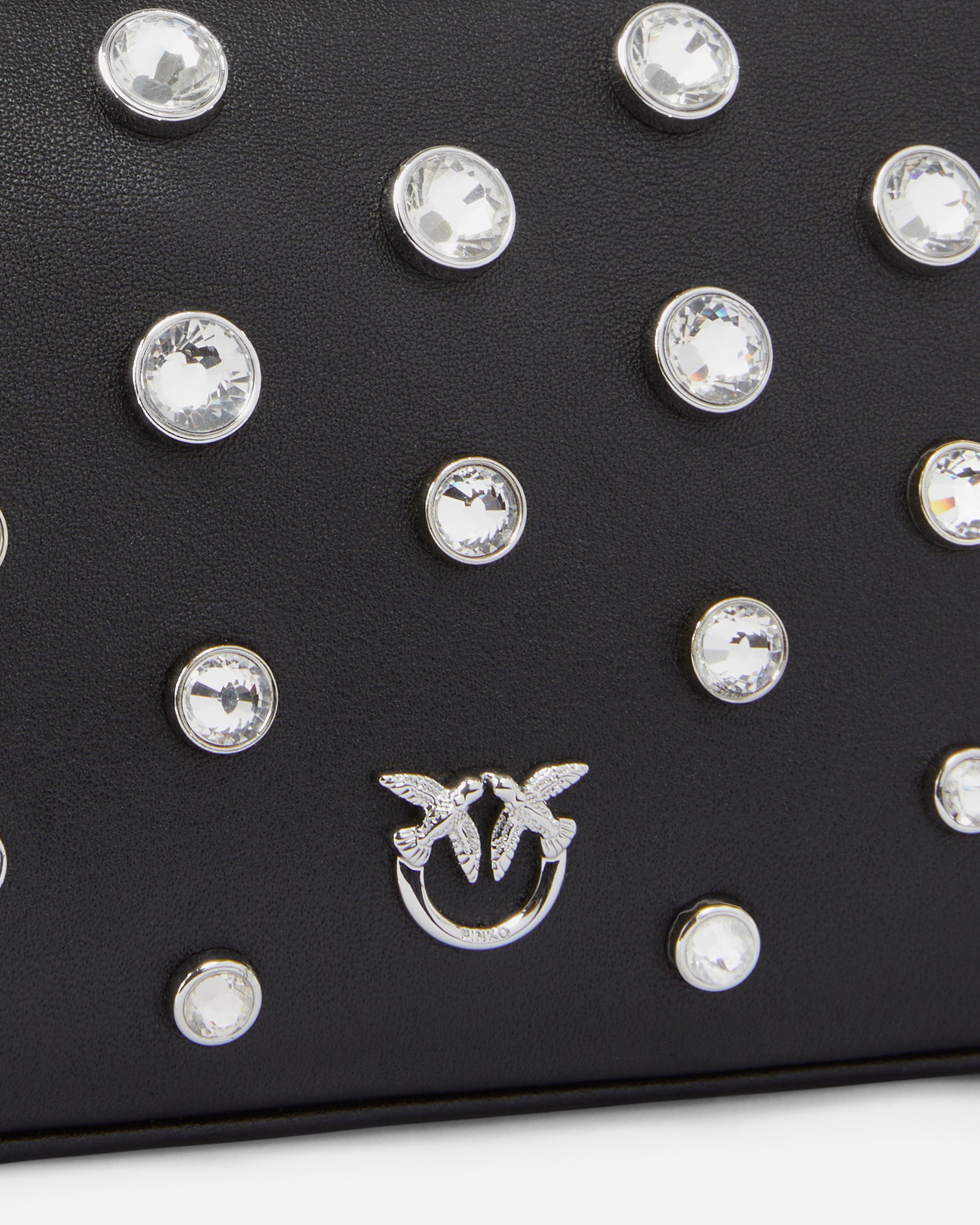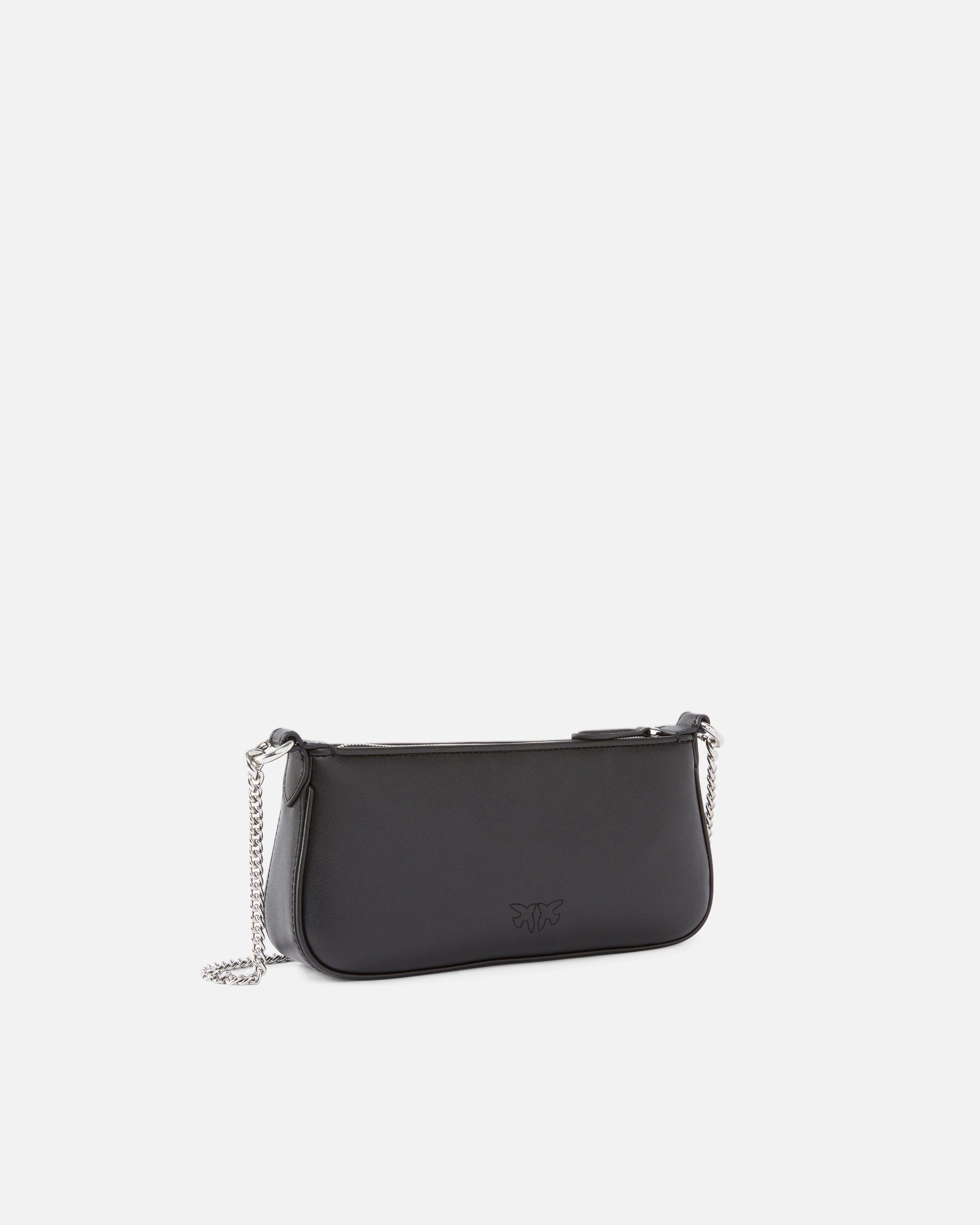 Mini Half Moon leather shoulder bag with elongated rectangular shape and zip fastening to store all your essentials. The undisputed star of the accessory are the ultra-shiny rhinestones of various sizes on the front, accompanied by a small metal Love Birds logo. This item features a sophisticated fixed chain shoulder strap that makes it more practical and ideal for stylish evenings. Activate your PINKO bag: verify the authenticity of your product and access a personalised experience by scanning the Love Birds embroidery on the back of the bag with your smartphone!