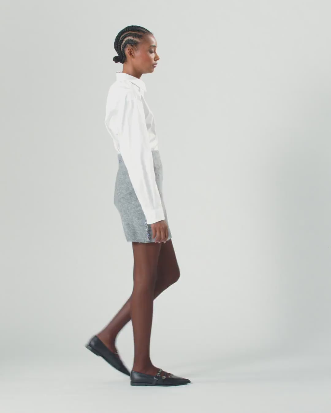 Short skirt with elasticated waist, made from soft knit bouclé-effect wool-blend fabric. PINKO logo lettering appears on the back, while the sides are adorned with colourful jewel-effect beads to illuminate the look and enhance the fabric. Warm up your winter and casual outfits with this understated yet classy piece. The piece has undergone finishing tests to minimise the possible formation of pilling, ensuring greater fabric softness and durability.