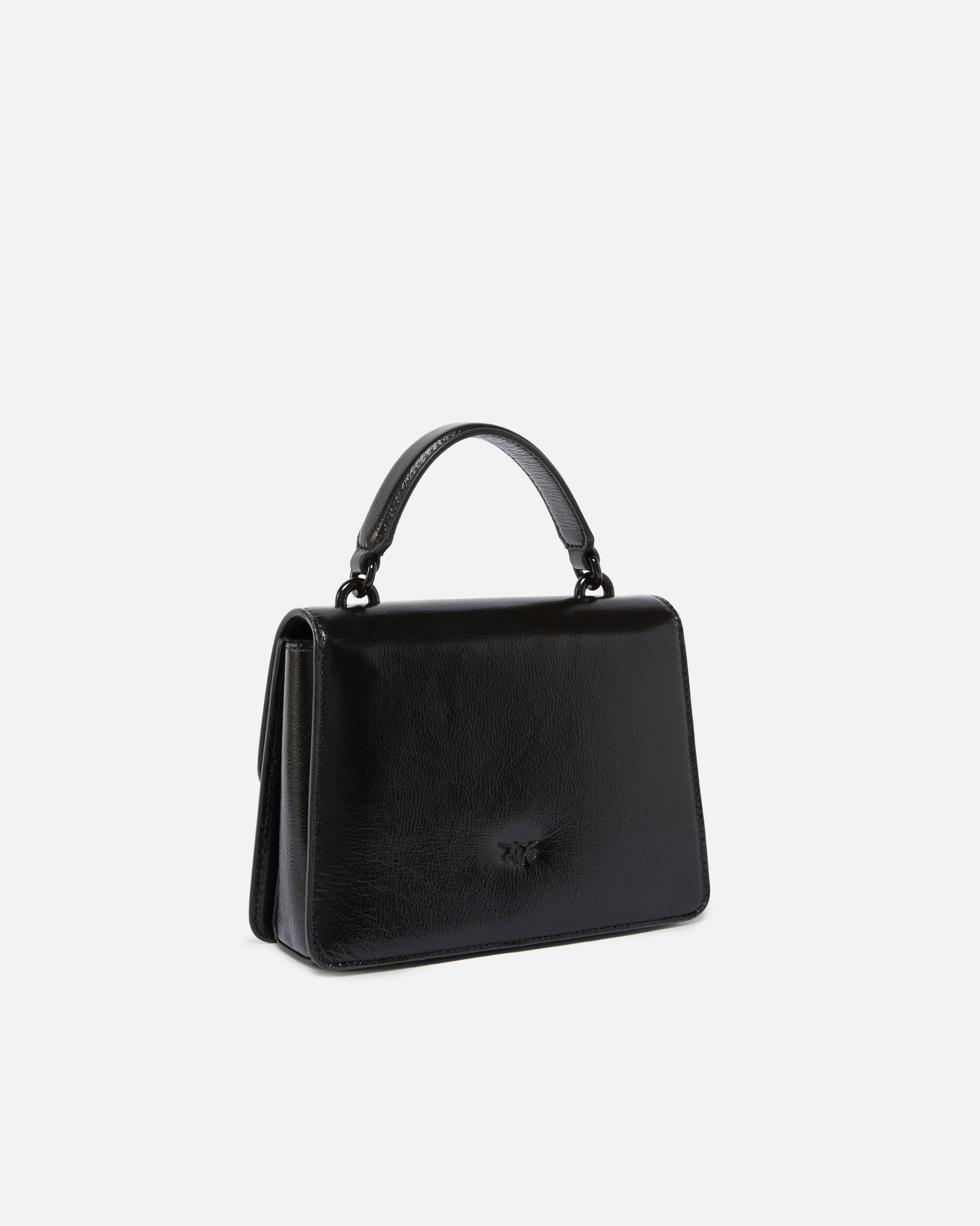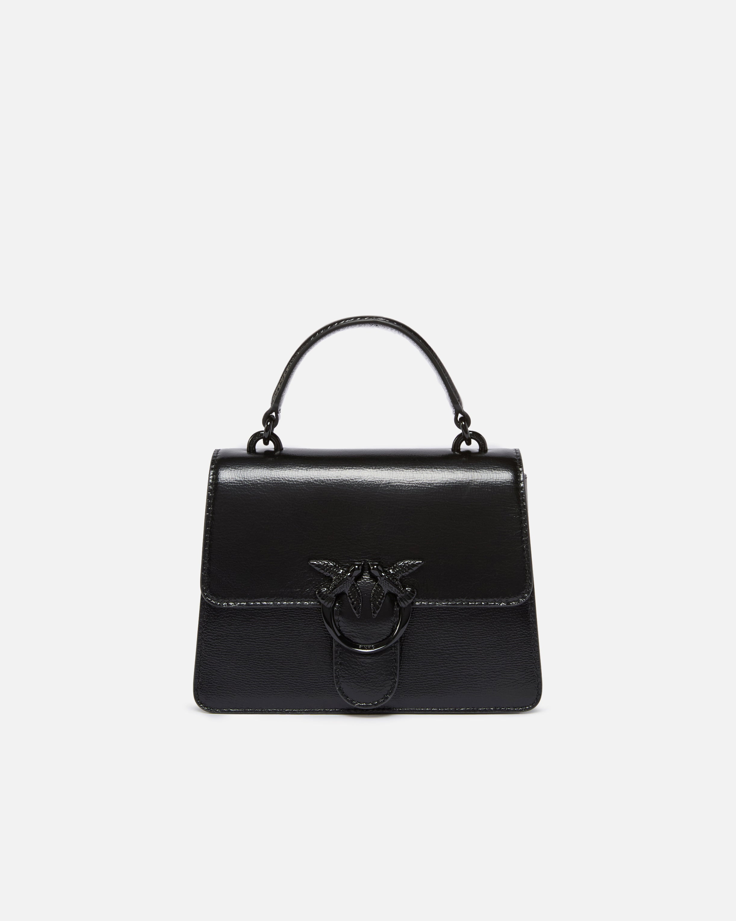 Mini Love Bag One Top Handle Light small handheld bag in soft shiny leather with a vintage effect, with a distinctive deconstructed trapezium shape. Featuring an elegant monochrome look that extends to the metal hardware, the style includes a fixed top handle and a removable leather and chain shoulder strap, allowing it to be carried in three ways: by hand, over the shoulder, or crossbody. The magnetic button fastening is complemented by the iconic Love Birds Diamond Cut buckle and reveals a cotton drill-lined interior, featuring a slip pocket with logo label and zip. Activate your PINKO bag: verify the authenticity of your product and access a personalised experience by scanning the Love Birds embroidery on the back of the bag with your smartphone! - LOVE ONE TOP HANDLE MINI