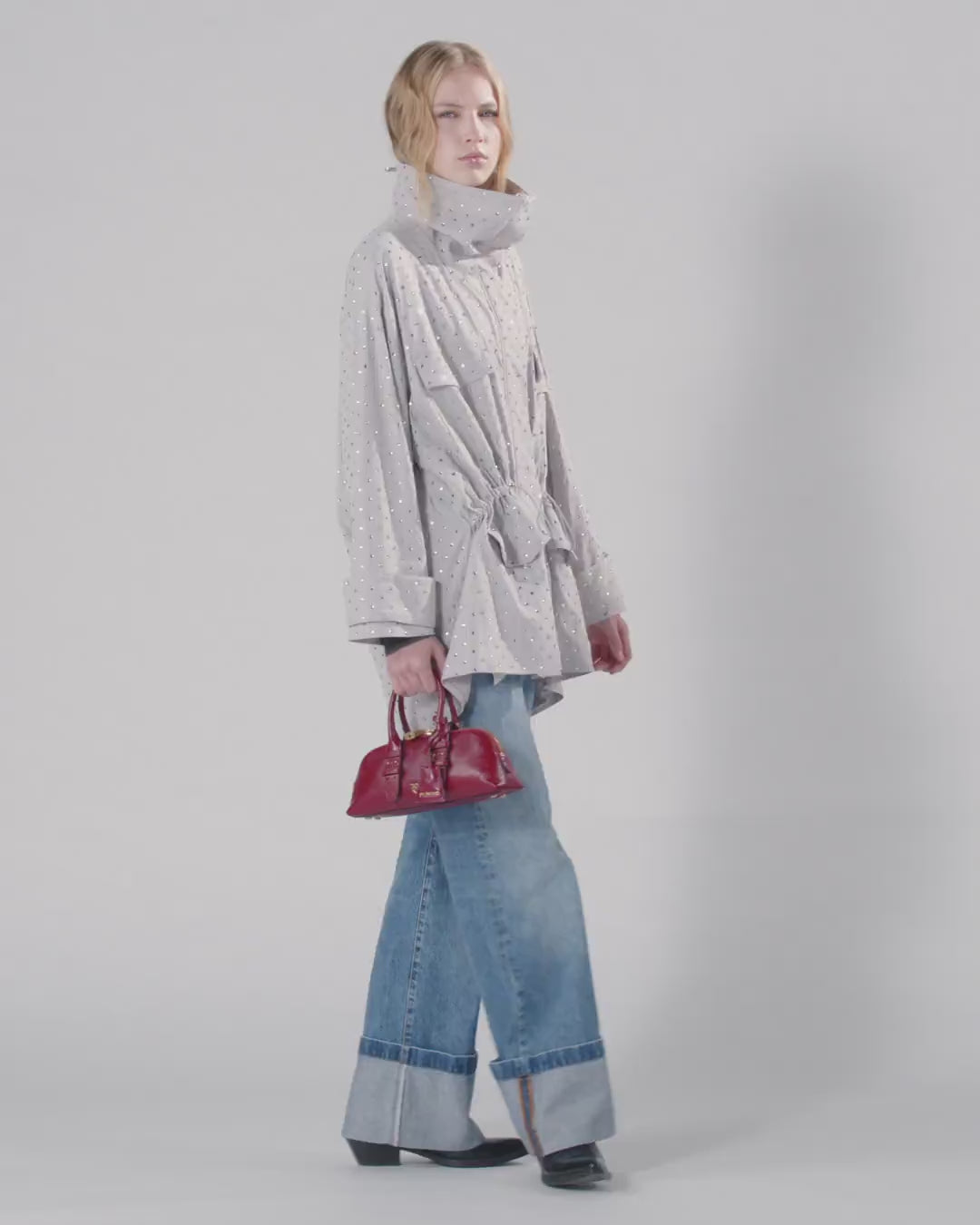 Parka with rhinestones and studs