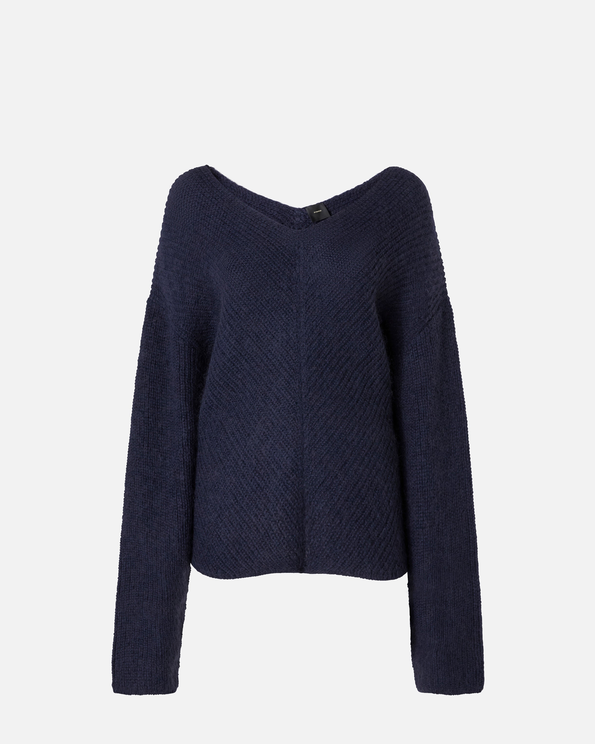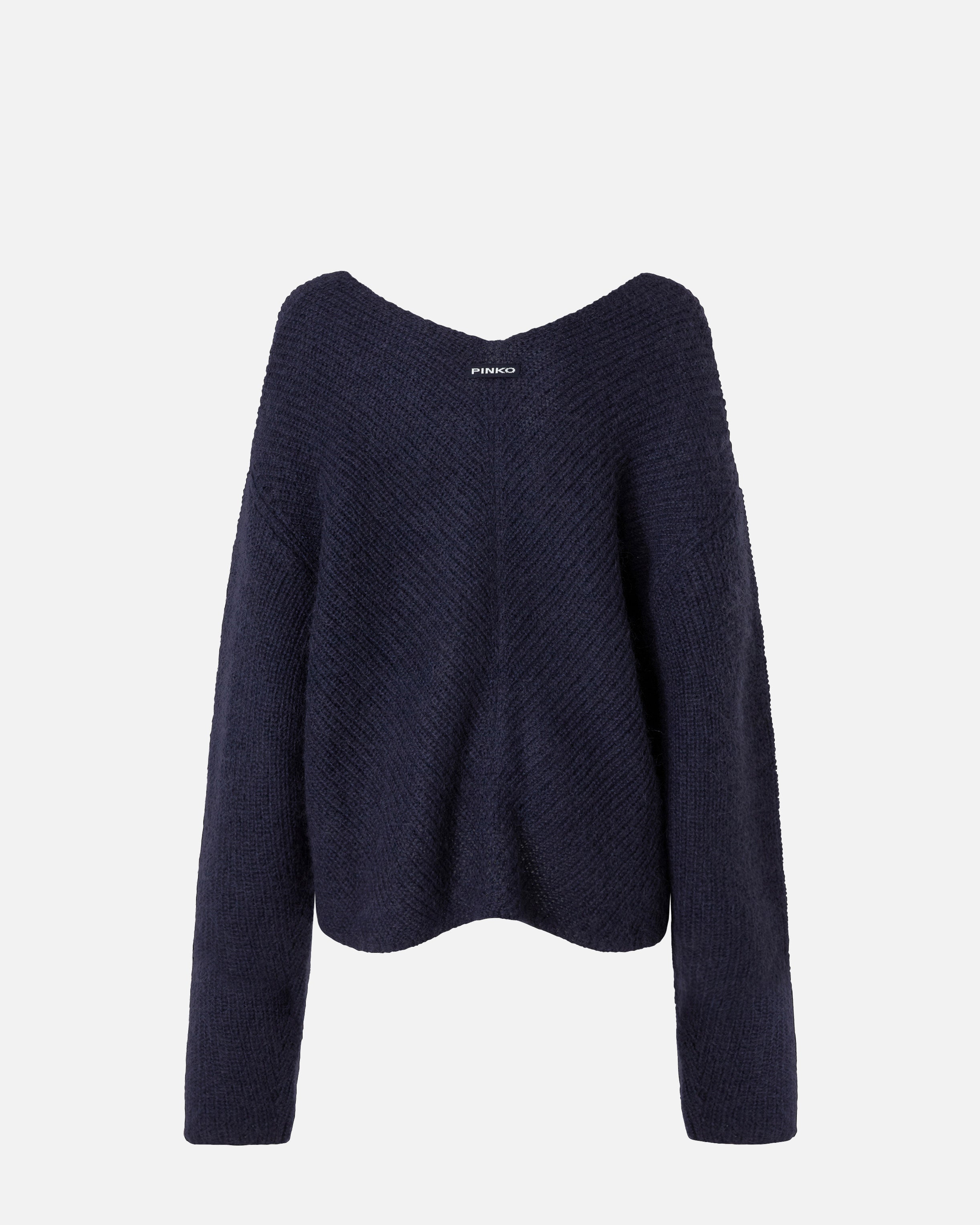 Long-sleeved sweater with a boat neck made from a mohair wool blend. The loose fit, dropped shoulders and ribbed texture make it the perfect garment for off-duty moments. The final touch is given by the tone-on-tone label with PINKO lettering logo behind the neck. The piece has undergone finishing tests to minimise the possible formation of pilling, ensuring greater fabric softness and durability. Understated, soft and refined: this sweater is a versatile style that will adapt to different occasions, adding a unique touch of style.