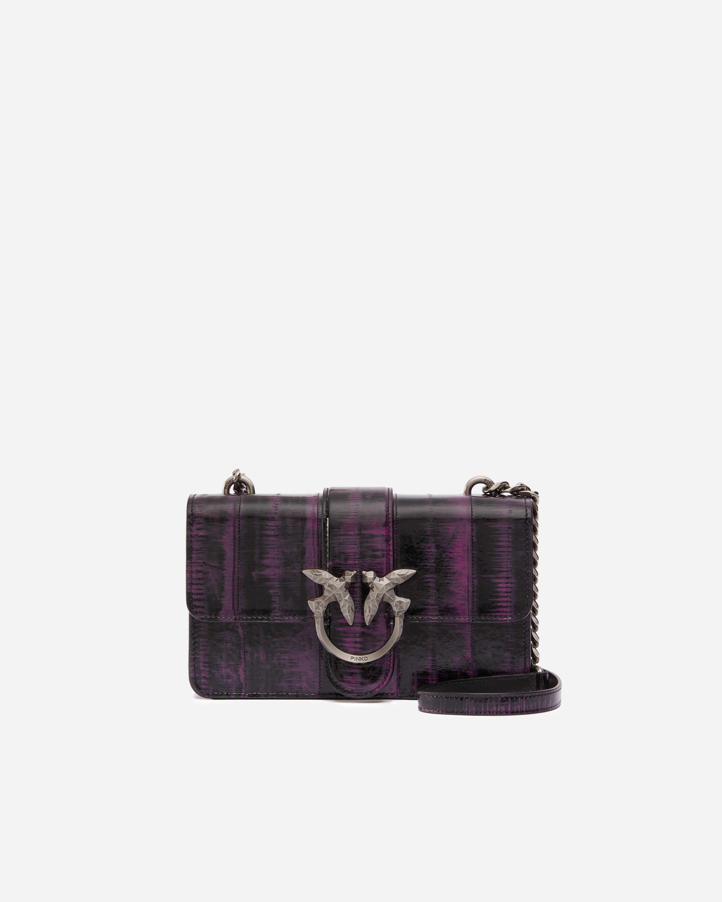 Pequeña bandolera Mini Love Bag en piel de mixino, caracterizada por una textura delicada especial y, al mismo tiempo, resistente y sofisticada, acabada con un efecto degradado. Las pieles, que son de pequeñas dimensiones, se cosen una al lado de la otra para conseguir superficies más grandes a partir de las que, posteriormente, se obtienen los cortes necesarios. Las manchas, las cicatrices y las diferencias de color entre pieles deben considerarse una característica que convierte cada bolso en una pieza única. El cierre del bolso se completa con un pasador y la emblemática hebilla de metal con el logotipo de pajaritos Love Birds Diamond Cut tallado con efecto facetado. La correa, a juego con el bolso, combina la clásica cadena redonda de metal con una práctica hombrera de piel para llevarlo cómodamente al hombro. El bolso forma parte de la colección cápsula especial de edición limitada creada en exclusiva para PINKO Galleria. ¡Utiliza el chip especial NFC para vivir una experiencia única sobre el bolso que has comprado!