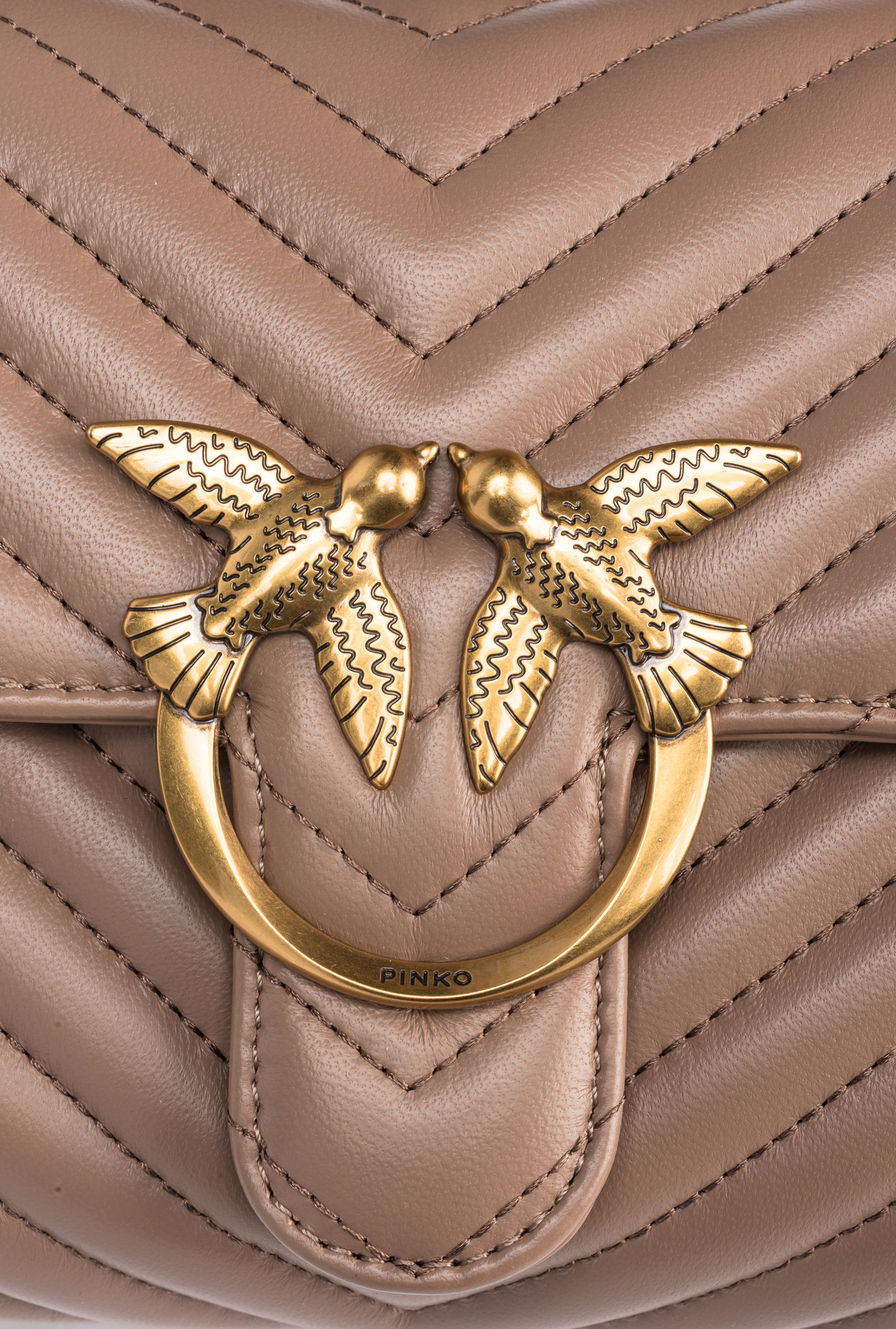 Bolso Mini Lady Love Bag Puff de napa acolchada con motivo chevrón. El cierre se completa con la emblemática hebilla Love Birds Diamond Cut de metal. El interior presenta un forro de microfibra con efecto ante e incluye un panel divisorio con cierre de cremallera y un bolsillo interno. Asa superior y correa que combina la clásica cadena metálica redonda y una práctica hombrera ajustable de napa. ¡Activa tu bolso PINKO: verifica la autenticidad de tu producto y accede a la experiencia personalizada acercando tu smartphone al bordado Love Birds que encontrarás en la parte posterior del bolso!