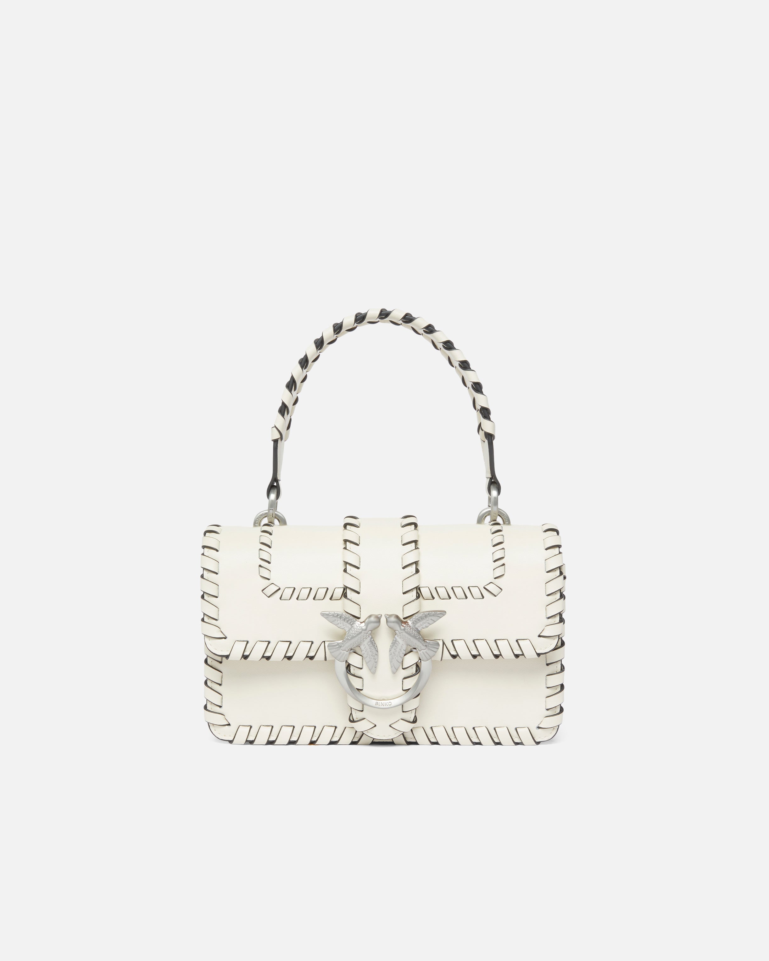 Bolso de mano Mini Love Bag de piel suave, con cierre principal con cremallera para guardar de forma segura tus objetos personales. Caracterizado por la bandolera de piel y el asa para llevarlo en la mano o al hombro, el bolso es extremadamente versátil y práctico. El diseño, adornado con elegantes enhebrados bicolor, se completa con la hebilla Love Birds Diamond Cut, que se convierte en portavoz del inimitable estilo de la marca. ¡Activa tu bolso PINKO: verifica la autenticidad de tu producto y accede a la experiencia personalizada acercando tu smartphone al bordado Love Birds que encontrarás en la parte posterior del bolso!