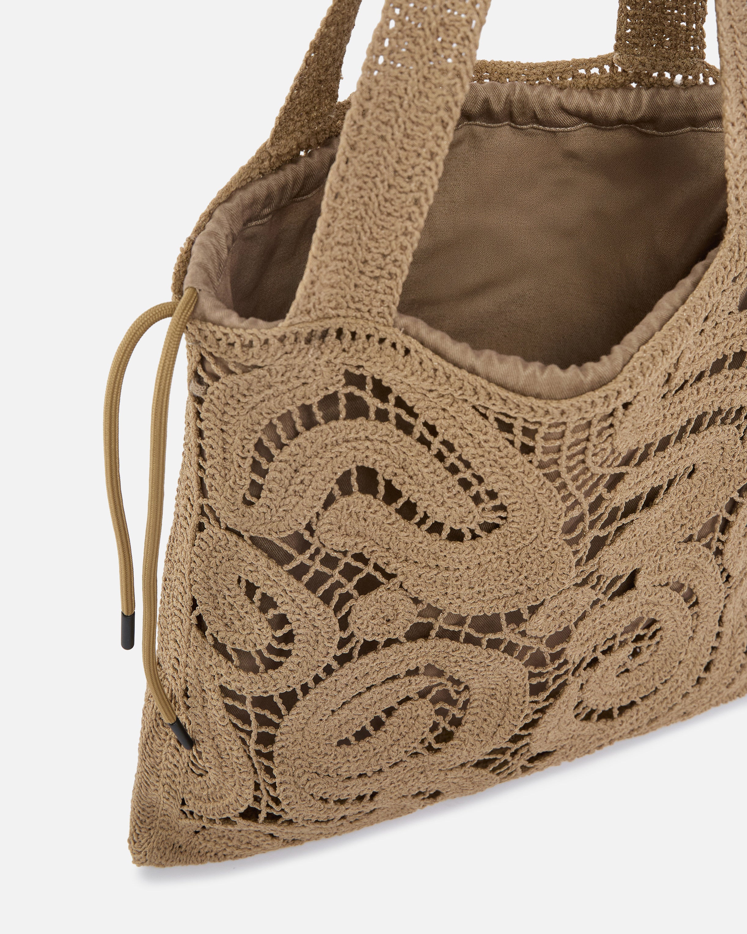 Bolso shopper de tamaño mediano con forma cuadrada y diseño plano caracterizado por una refinada confección de ganchillo con un innovador motivo geométrico que, junto con el forro interior liso, aporta dinamismo al diseño y crea un efecto de transparencias. Rematado con dos prácticas asas superiores para llevarlo al hombro, el modelo presenta un práctico cierre con cordón ajustable y se completa con un pequeño bordado tonal con los pájaros Love Birds en la parte delantera. Este accesorio, perfecto para llevar tus enseres personales siempre contigo durante el día, es la solución que estabas buscando para añadir un toque de color a tus conjuntos sin renunciar a la funcionalidad.