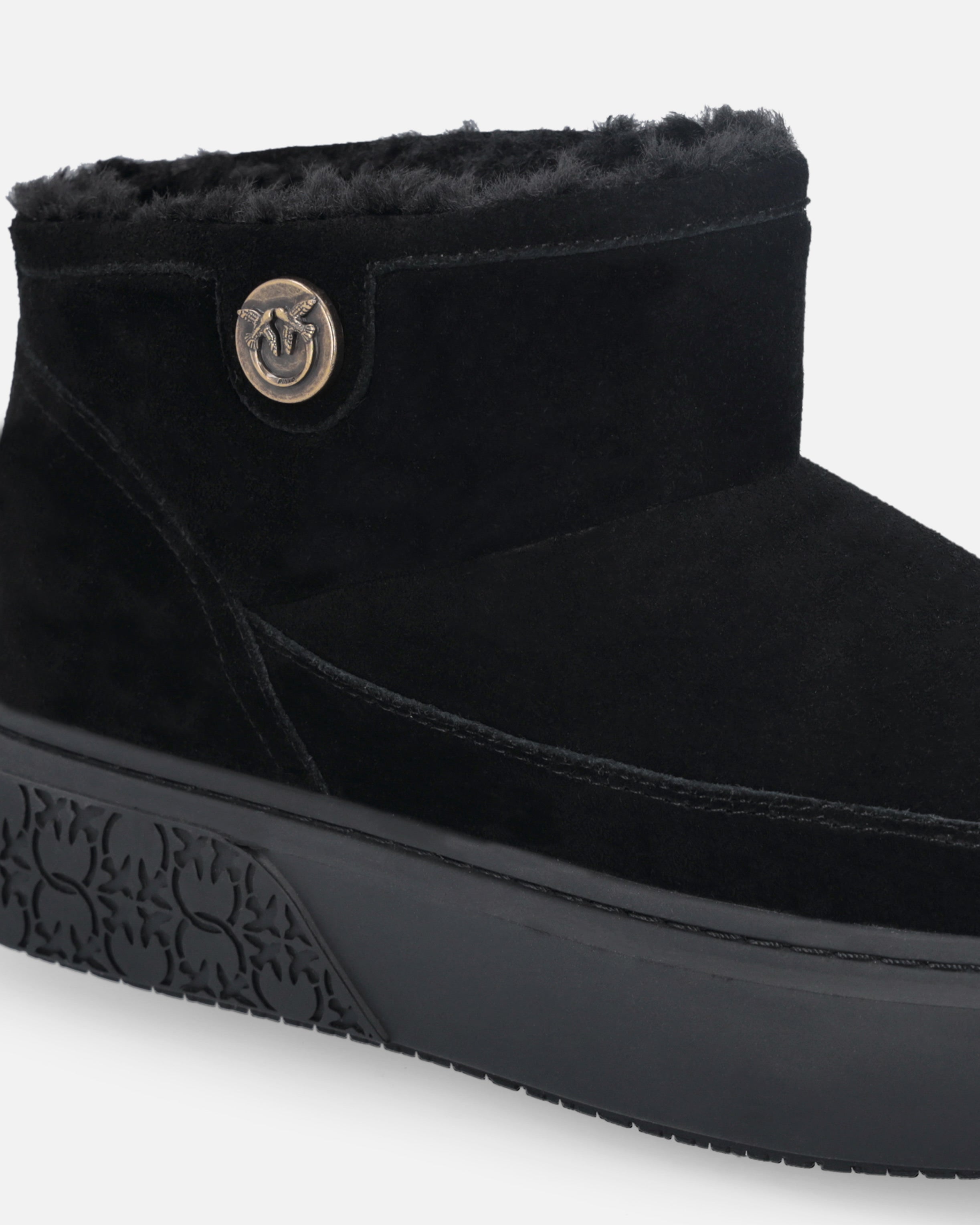 Botas de invierno confeccionadas en ante con un interior especialmente suave y cálido. En la caña baja, que facilita el calzado del modelo, destaca una pequeña placa con logotipo Love Birds. La suela gruesa de 4,5 cm de altura cuenta con una inserción a tono en la parte posterior con el logotipo Love Birds impreso en la goma y un piso con el logotipo, para personalizar aún más el modelo. Date un capricho con estas botas, perfectas para completar looks informales pero reconocibles.
