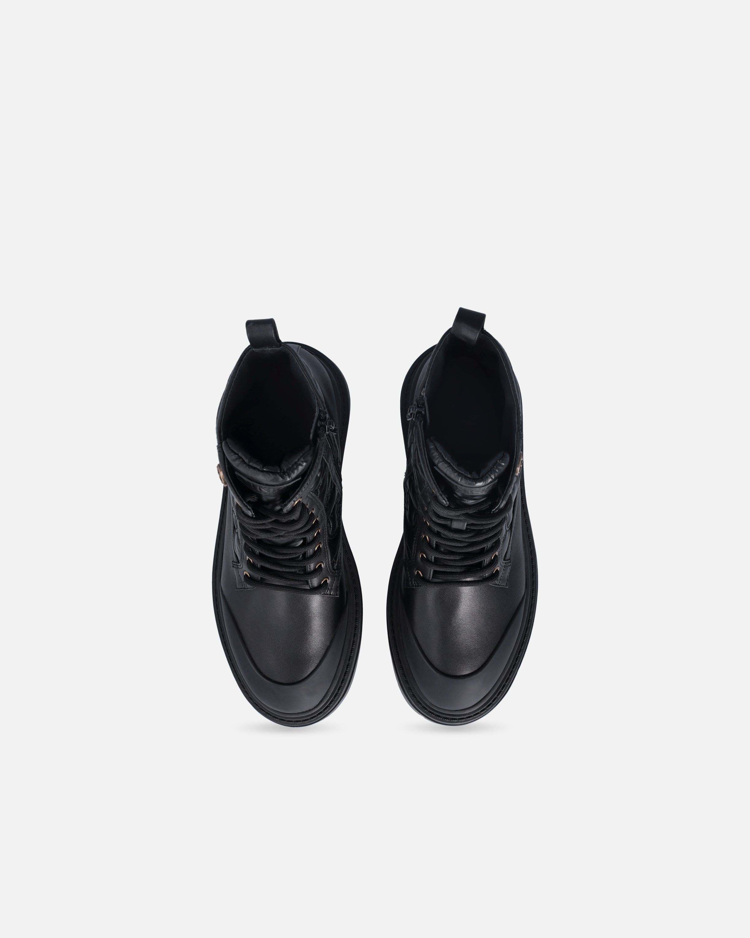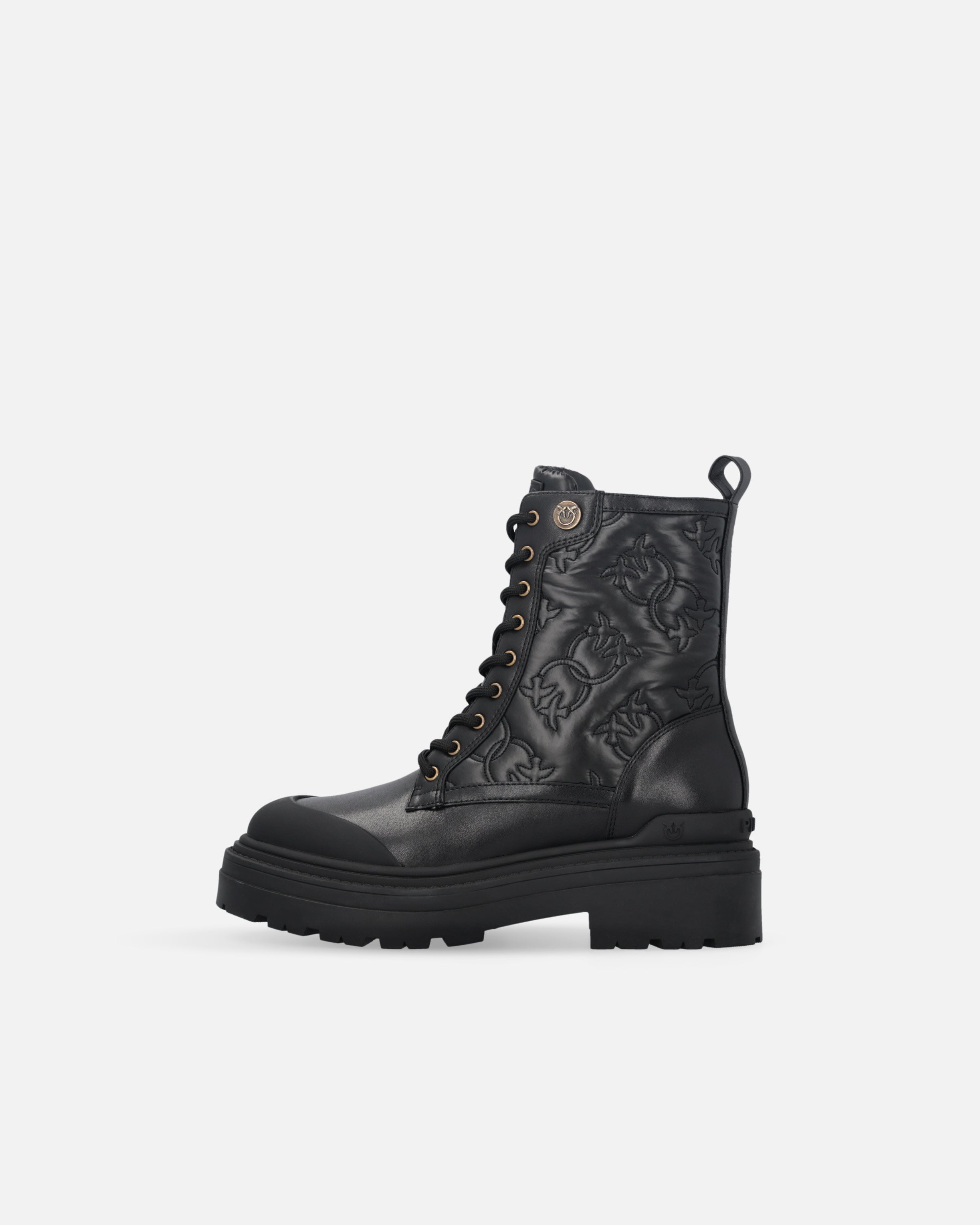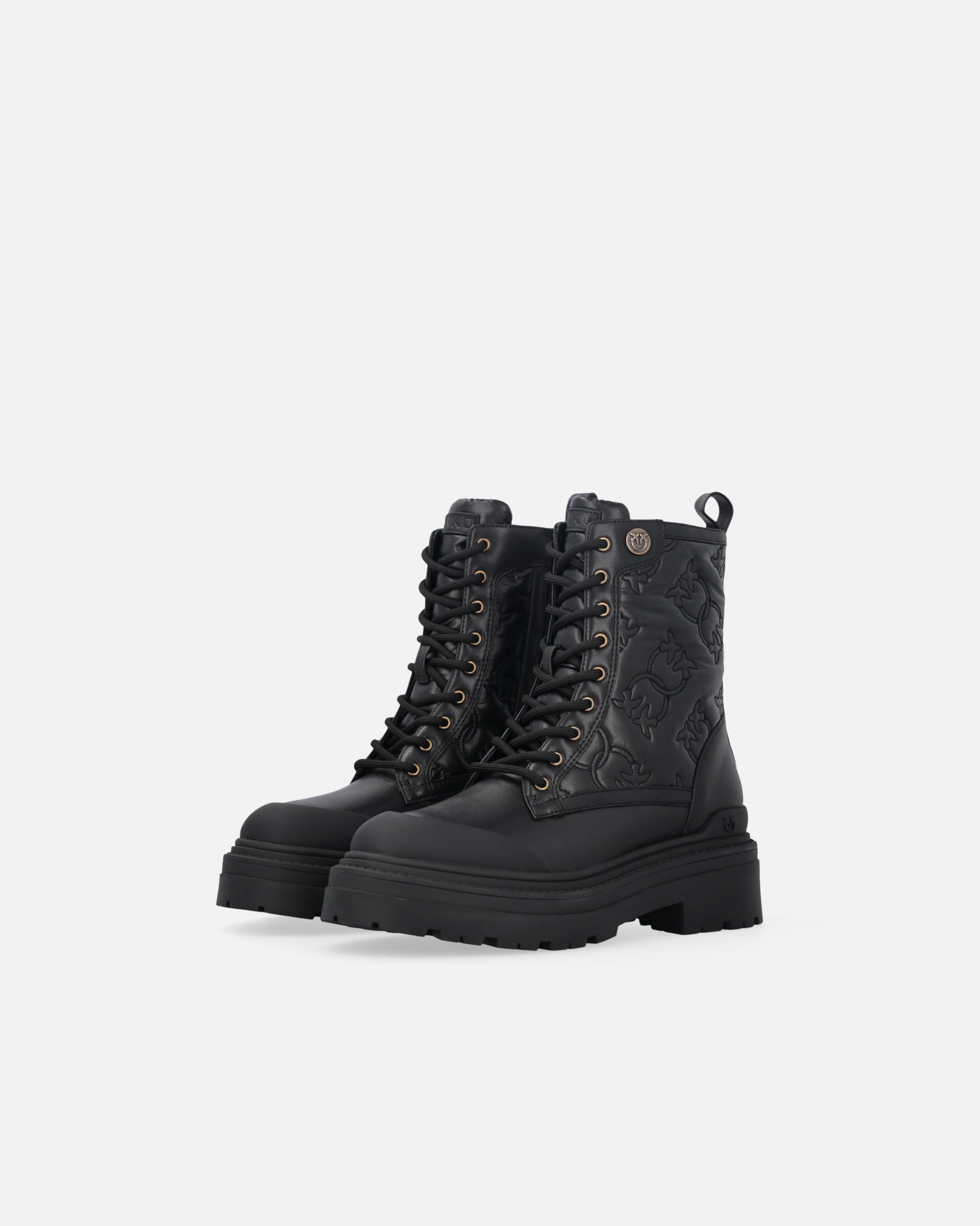 Botas militares de piel con cordones y tirador en la parte posterior para facilitar el calzado y caña de 18 cm de altura. El modelo está adornado con un motivo con el logotipo Love Birds pespunteado para brindar un look impactante, mientras que el toque final lo aporta la pequeña placa con el logotipo Love Birds, portavoz del inimitable estilo de la marca. La suela en relieve de 5,5 cm de altura aporta robustez y carácter. Este modelo está destinado a convertirse en la pieza clave de tus looks informales de día. ¿Estás de acuerdo?