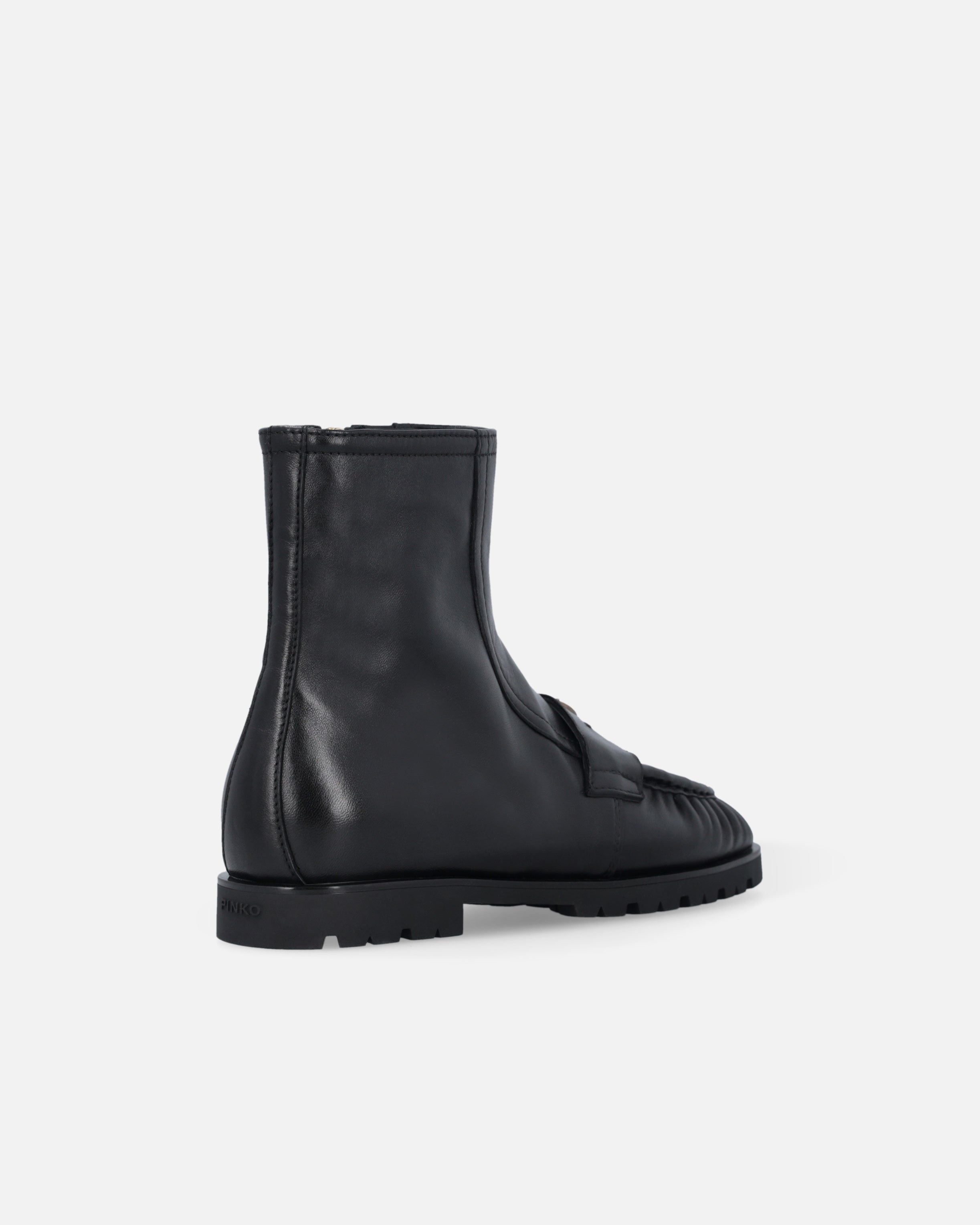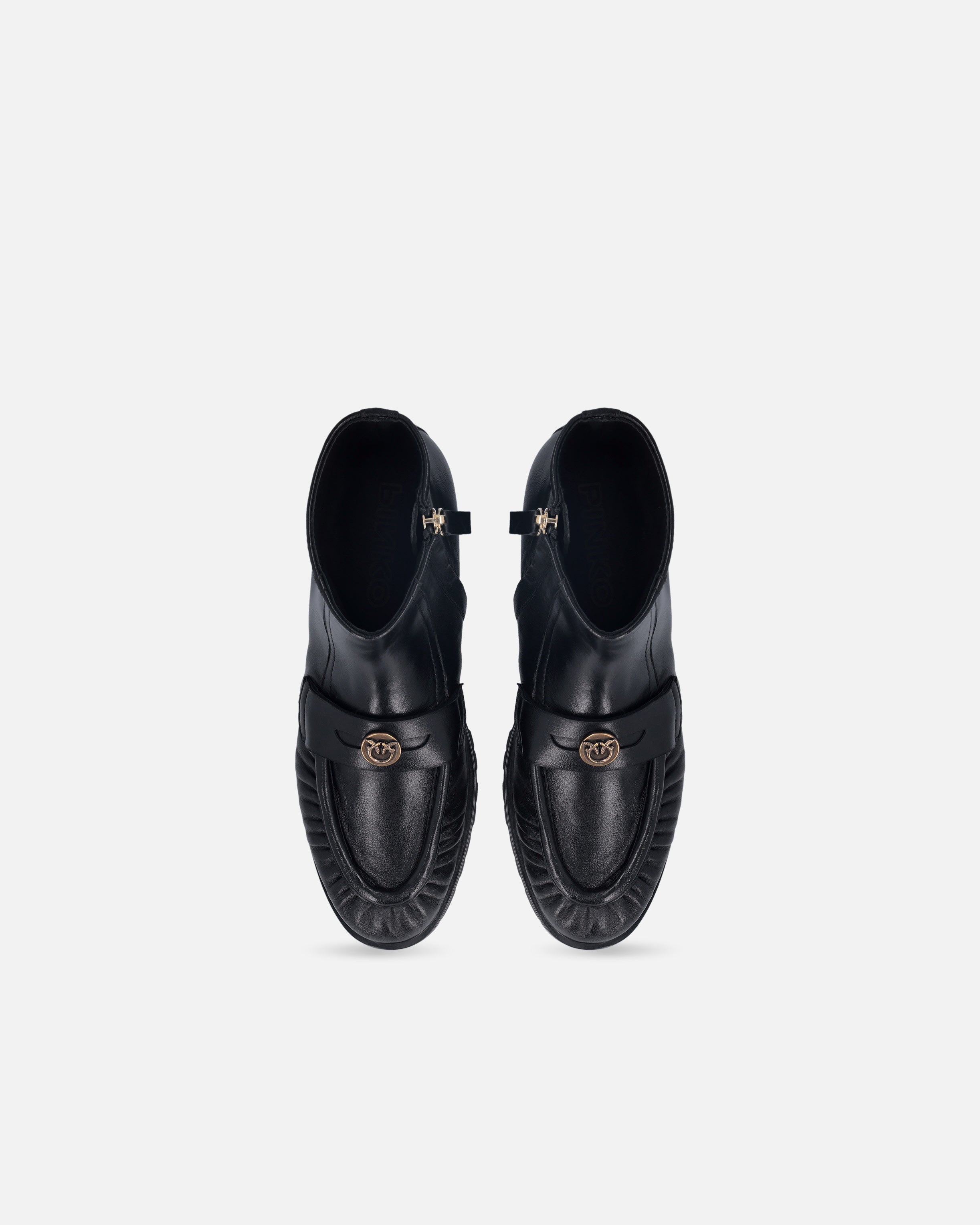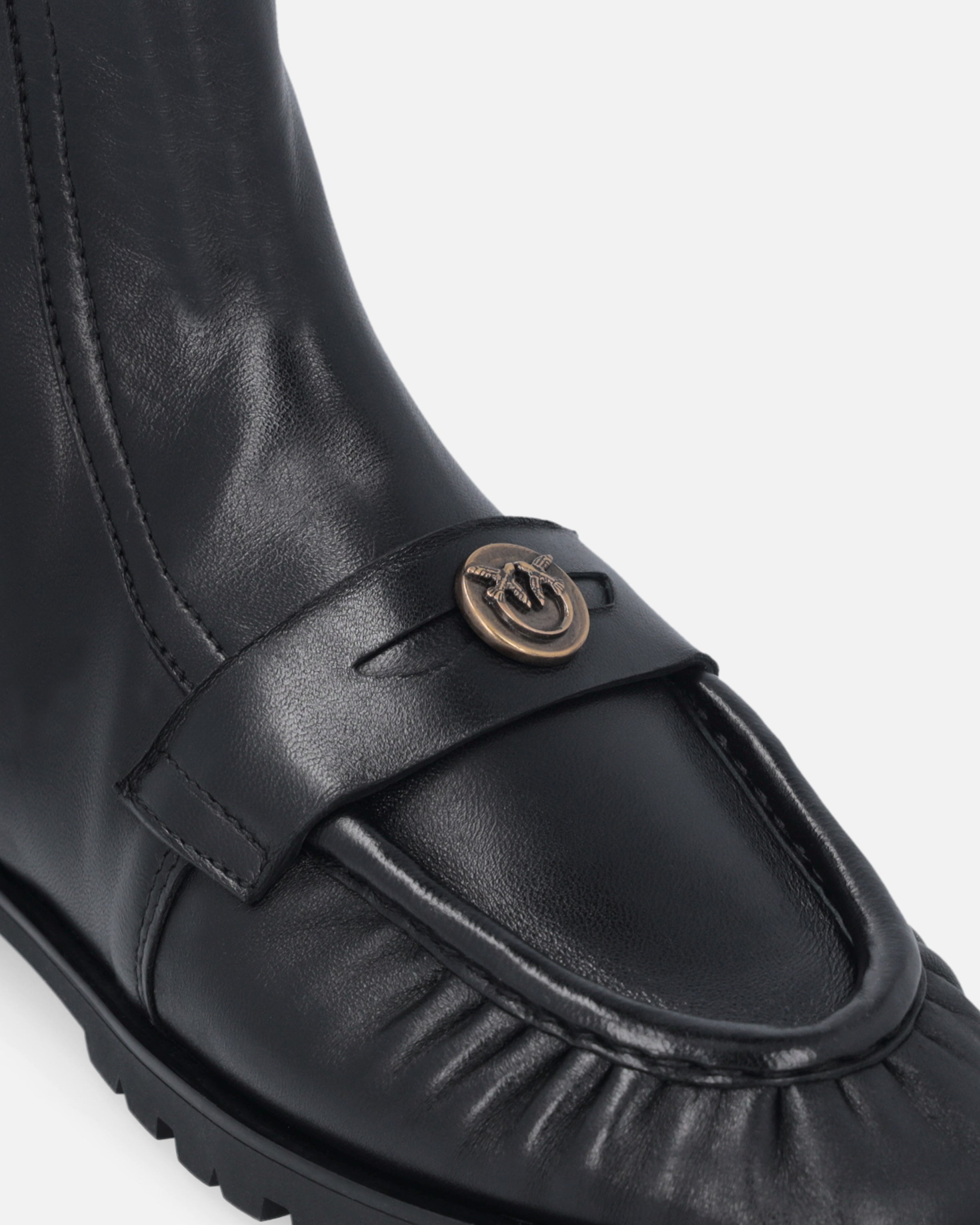 Botines de piel lisa y suave, con caña hasta el tobillo. Este modelo destaca por su diseño de botín, enriquecido por el detalle de la cremallera interna en la caña y por la pala con una línea inspirada en los icónicos mocasines. La suela en relieve de 2 cm de altura confiere robustez y carácter a la bota, pero el toque final lo aporta la pequeña placa con el logotipo Love Birds, portavoz del inimitable estilo de la marca. Sabemos bien que son los detalles los que marcan la diferencia: elige este modelo para añadir un toque de singularidad a tus looks informales.
