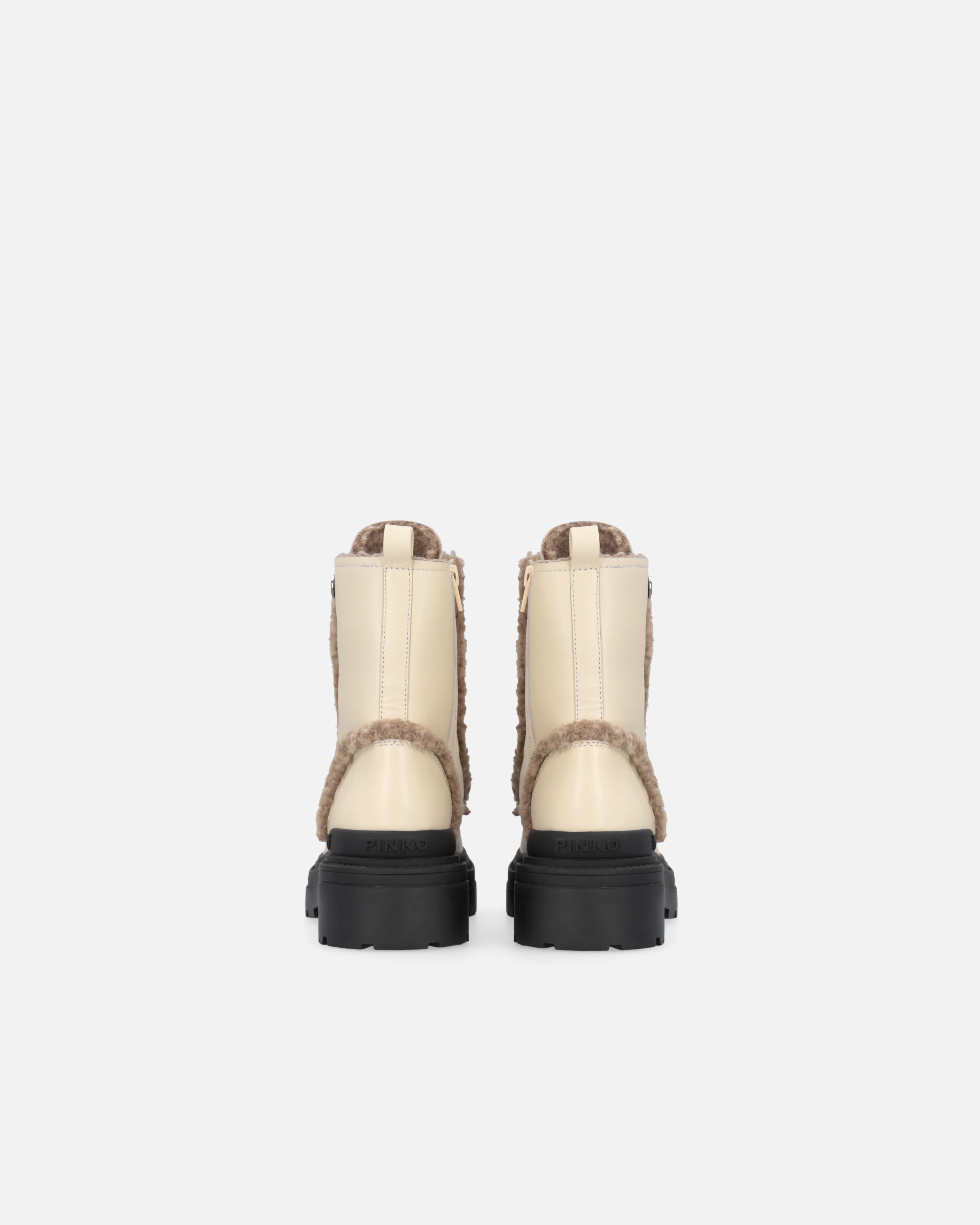 Botines de piel con caña de 17 cm de altura. El tejido Aspen efecto pelo caracteriza los bordes exteriores, para brindar una sensación envolvente y cálida a la vista, y el interior, para garantizar comodidad y protección contra el frío. La suela en relieve de 5,5 cm de altura confiere robustez y carácter al modelo, pero el toque final viene dado por la pequeña placa con el logotipo Love Birds, portavoz del inimitable estilo de la marca. Sabemos bien que son los detalles los que marcan la diferencia: elige este modelo para añadir un toque de singularidad a tus looks informales.