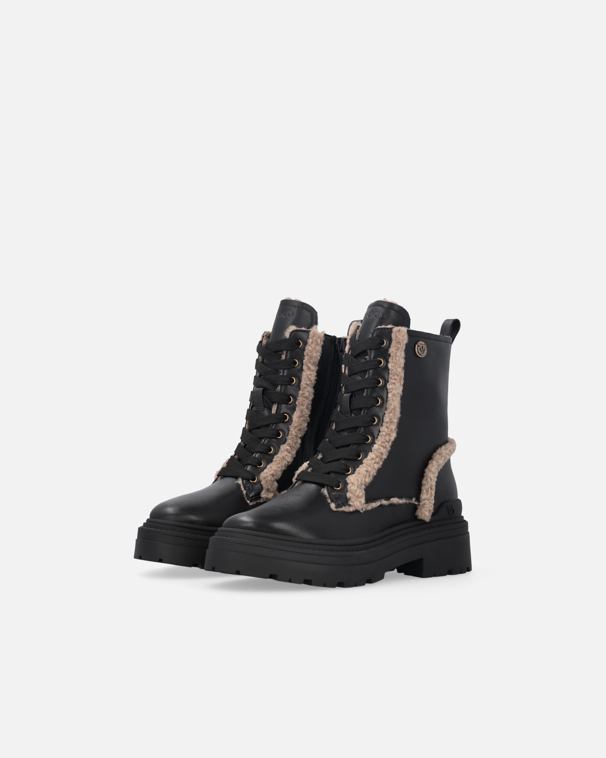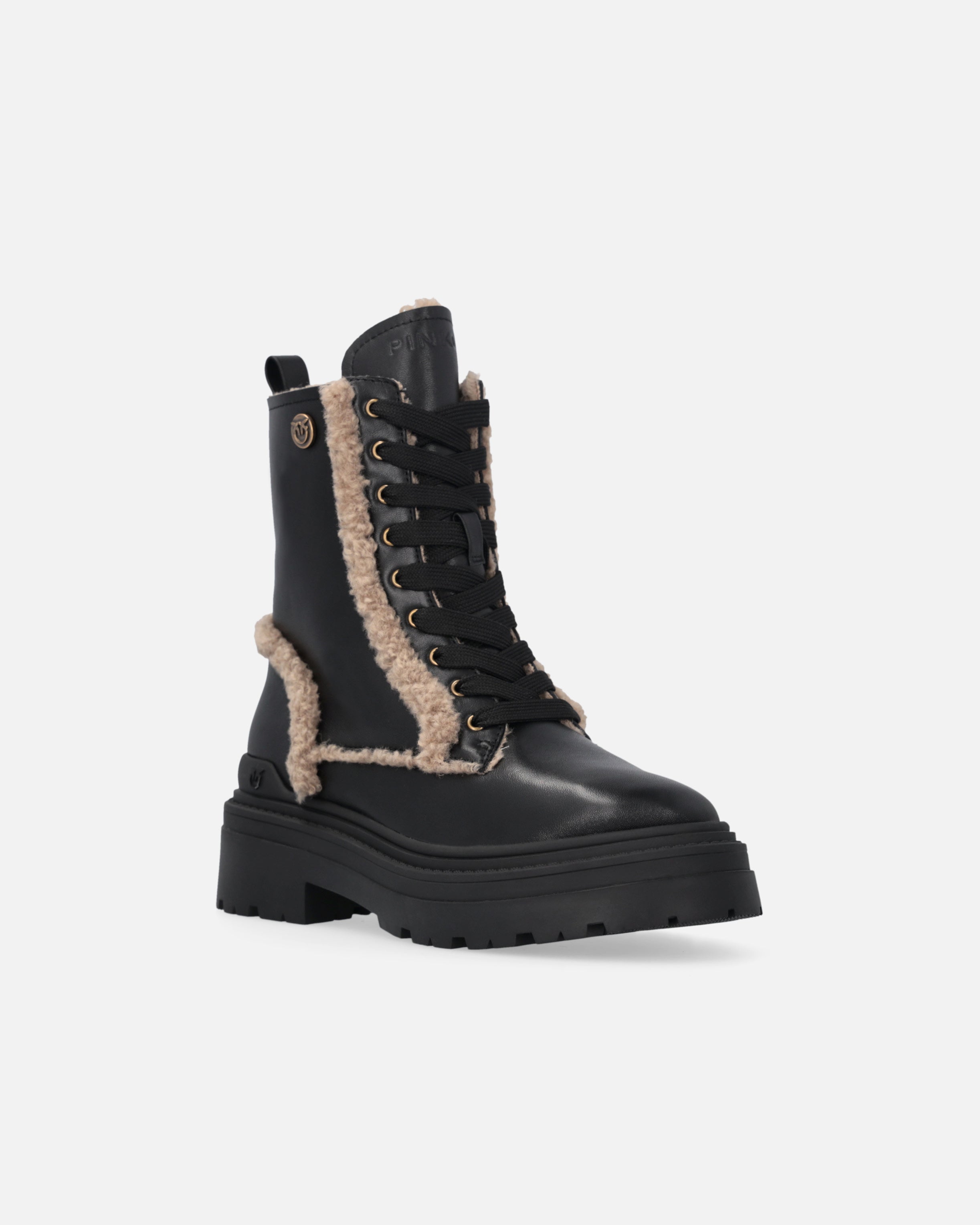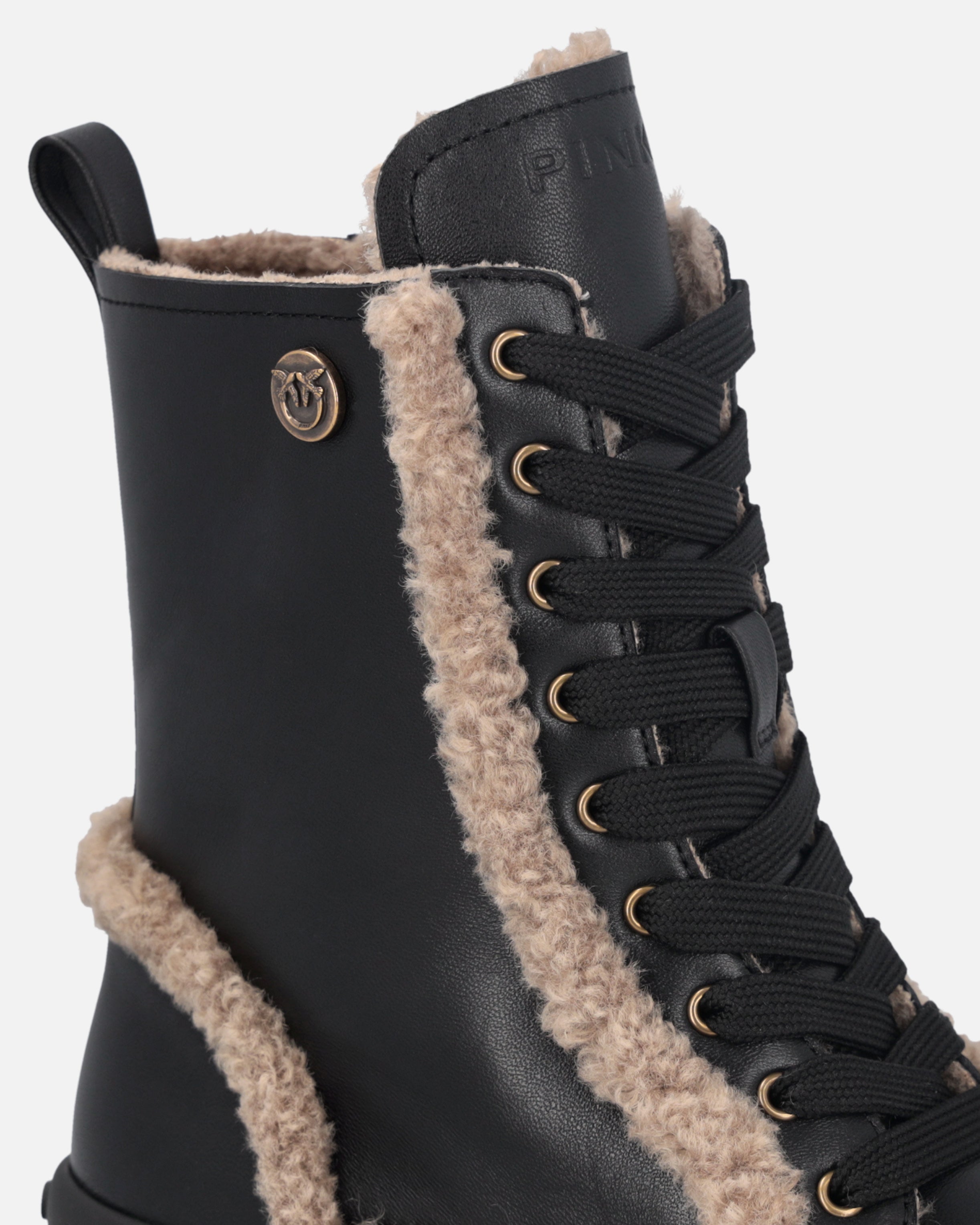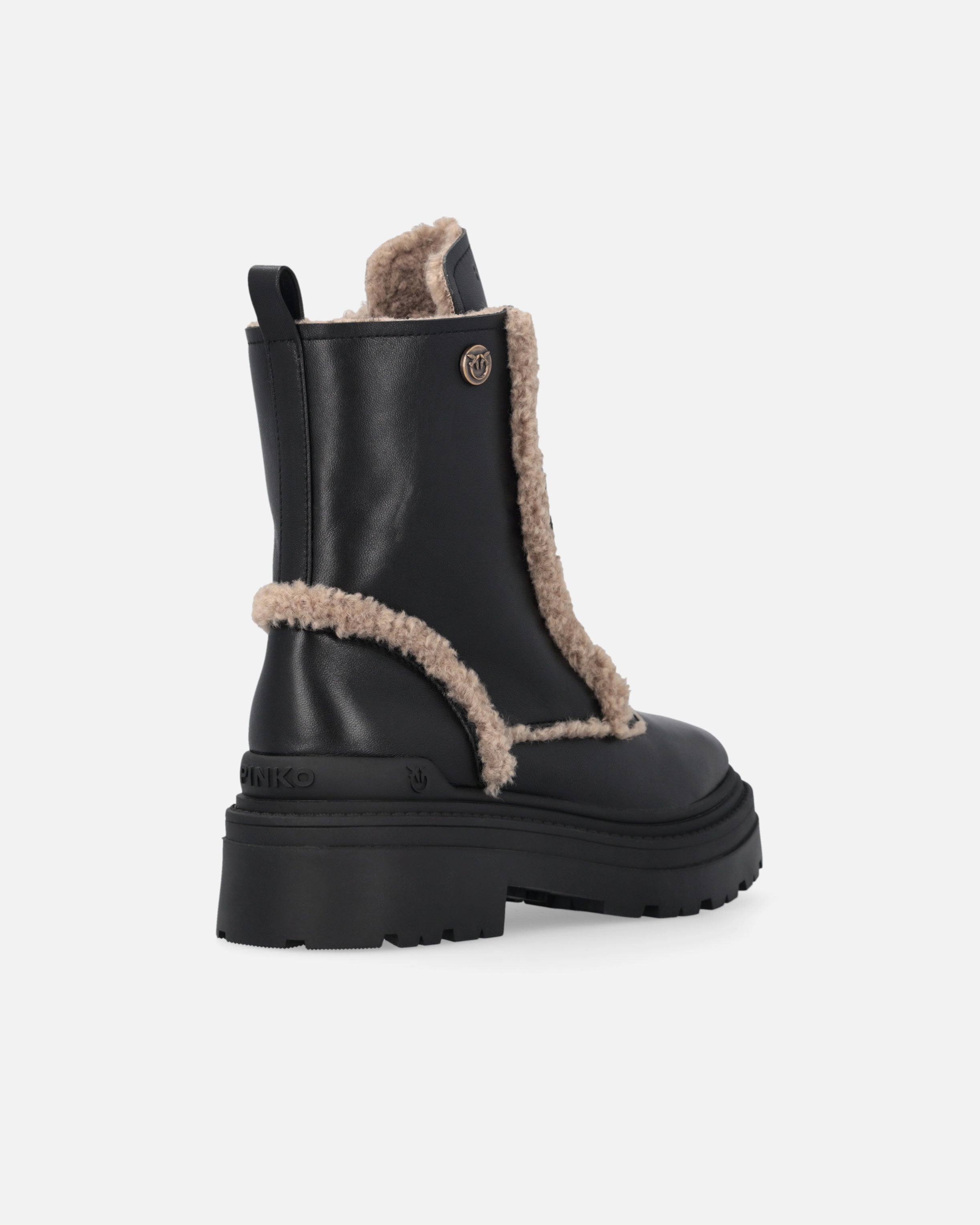 Botines de piel con caña de 17 cm de altura. El tejido Aspen efecto pelo caracteriza los bordes exteriores, para brindar una sensación envolvente y cálida a la vista, y el interior, para garantizar comodidad y protección contra el frío. La suela en relieve de 5,5 cm de altura confiere robustez y carácter al modelo, pero el toque final viene dado por la pequeña placa con el logotipo Love Birds, portavoz del inimitable estilo de la marca. Sabemos bien que son los detalles los que marcan la diferencia: elige este modelo para añadir un toque de singularidad a tus looks informales.