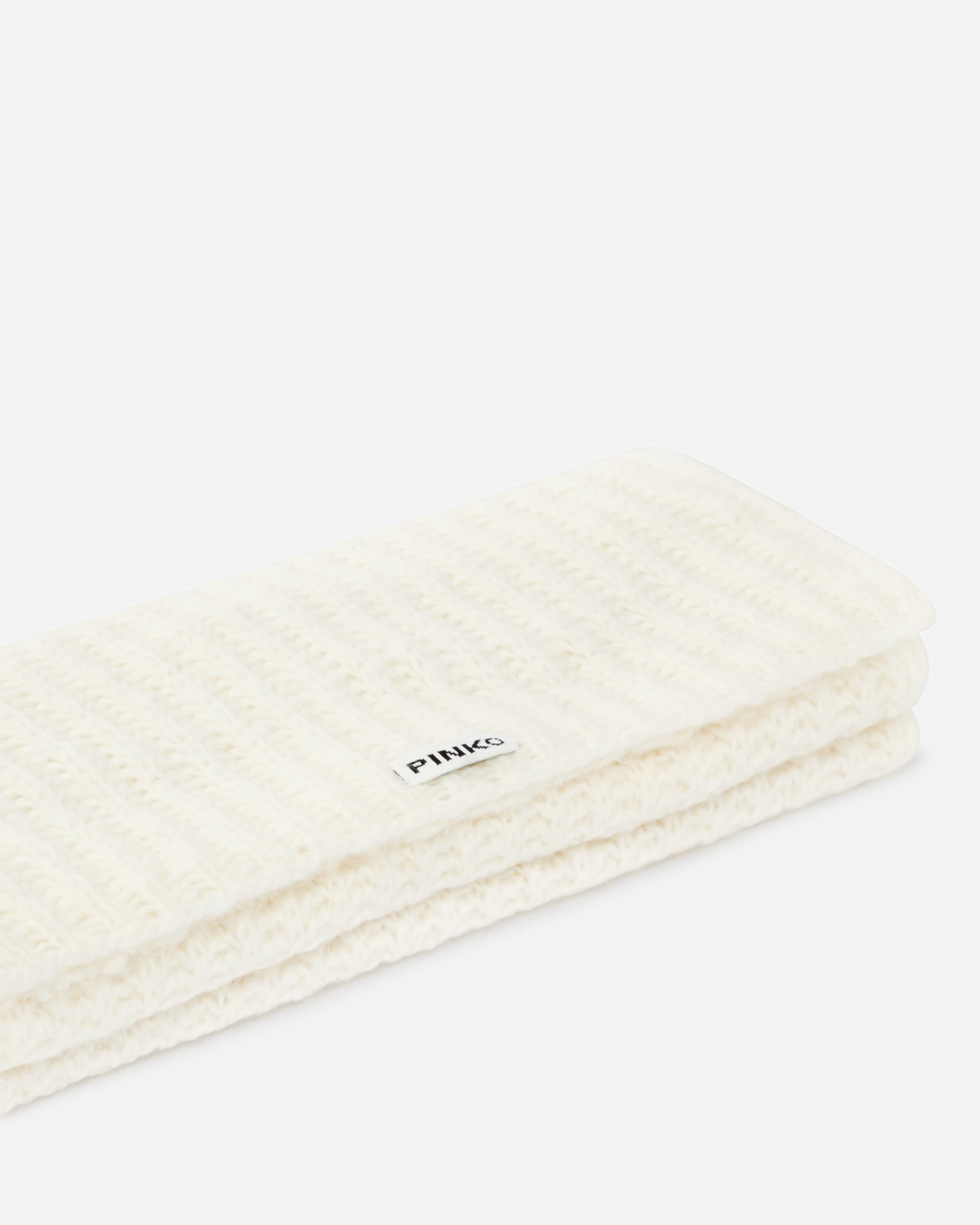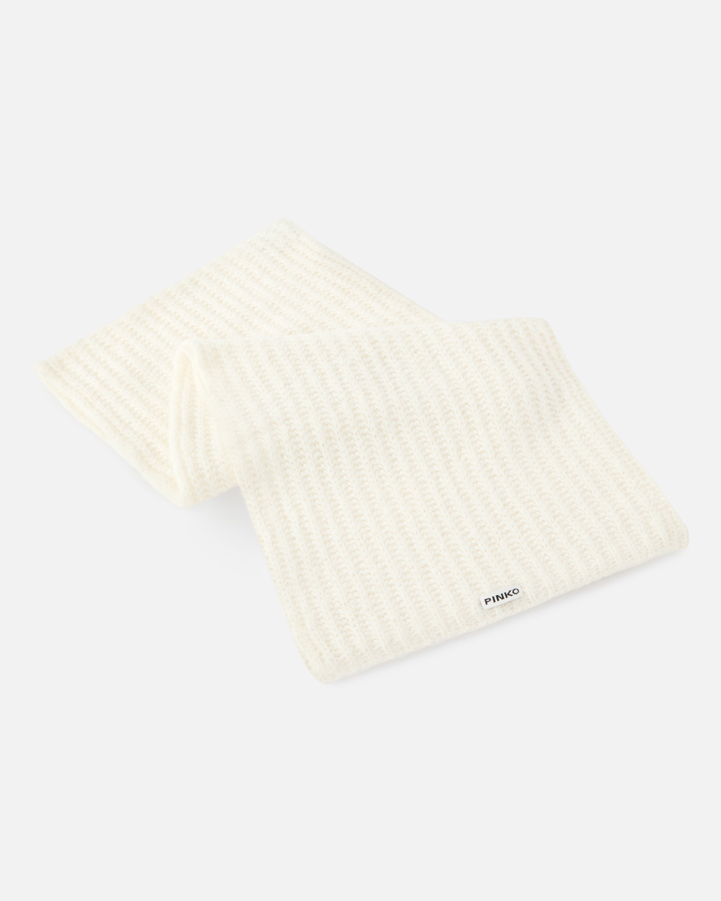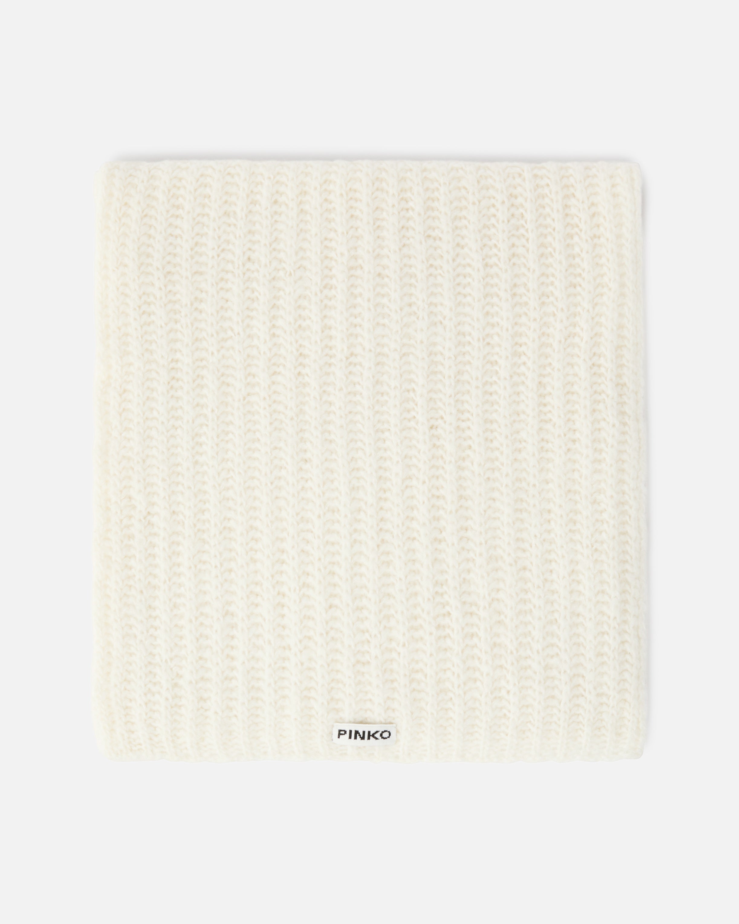 Bufanda de suave hilado de mezcla de lana confeccionada en canalé que resulta extremadamente suave al tacto. La etiqueta con el logotipo de letras bordado en un extremo personaliza el modelo al más puro estilo PINKO. Aporta calidez a tus conjuntos de invierno con este accesorio básico pero con clase y completa el look total con el gorro a juego.