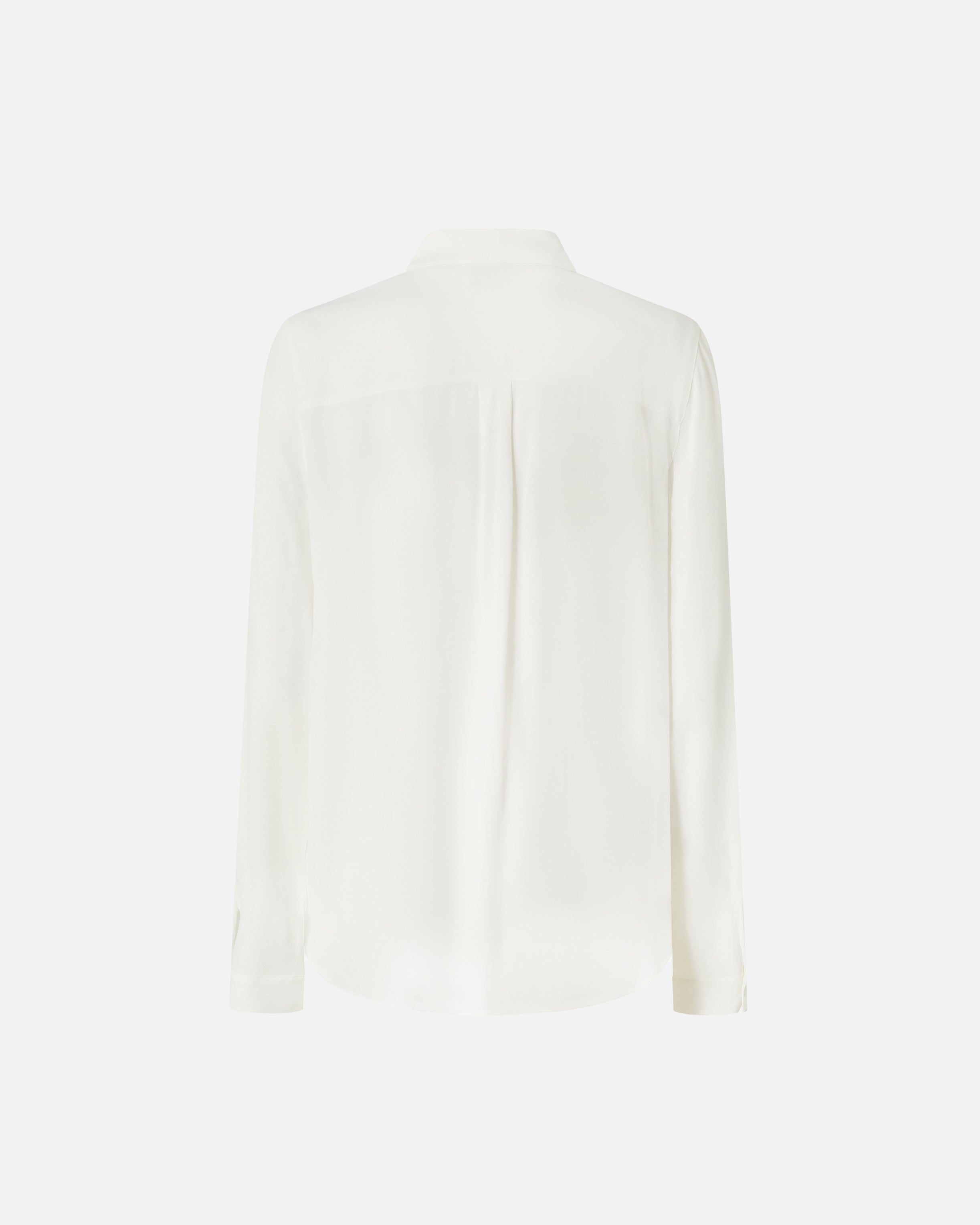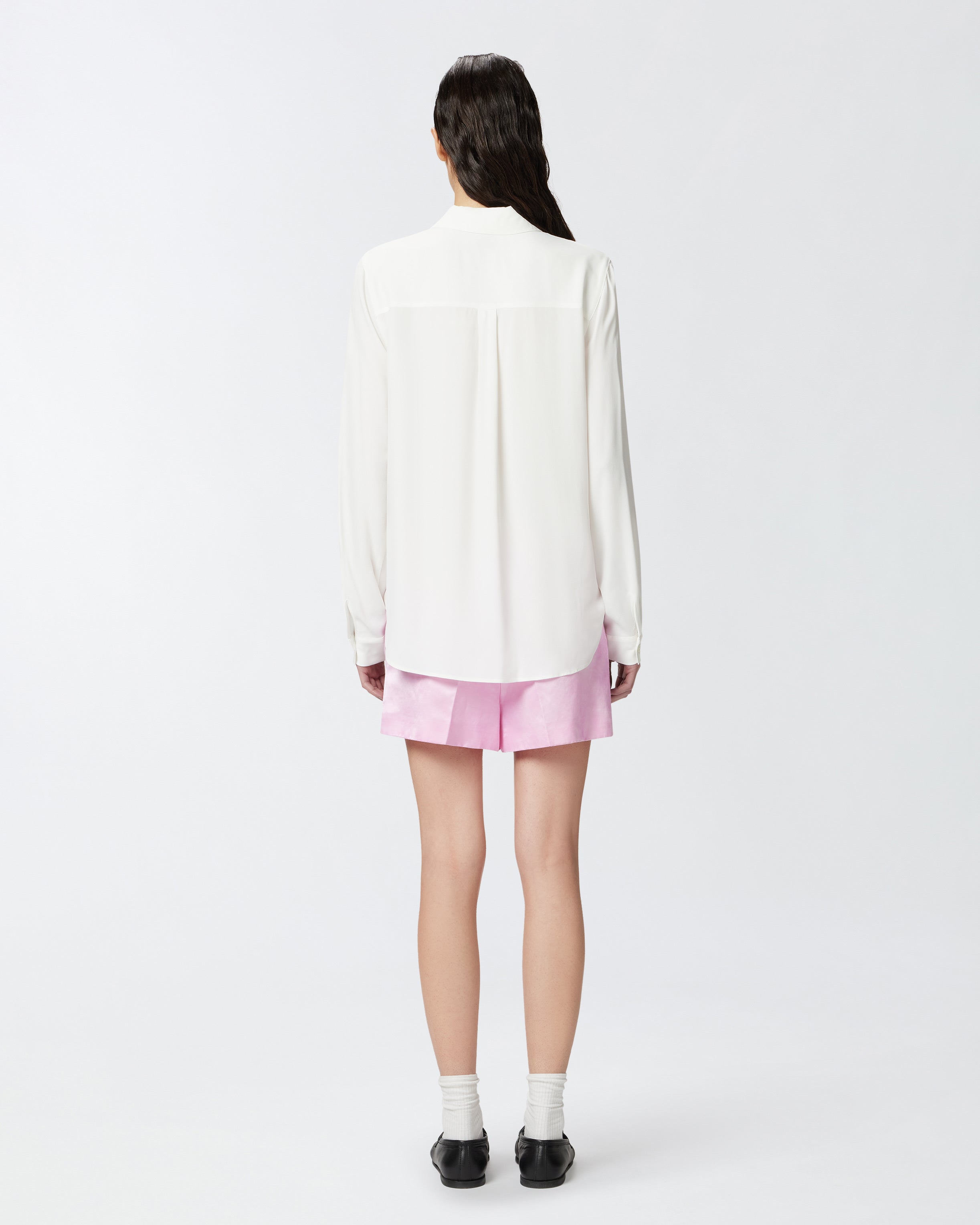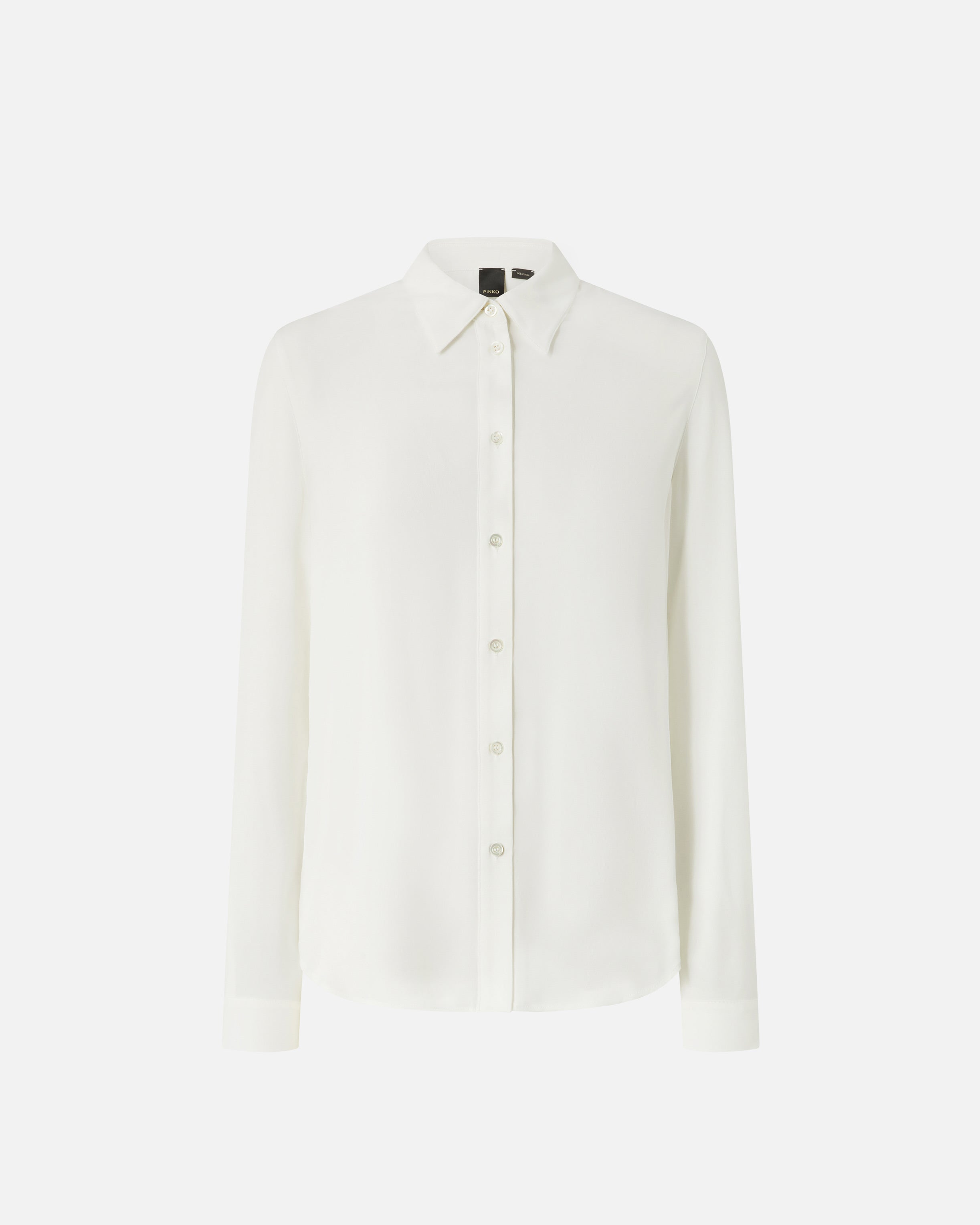 Camisa clásica en ligero crepé de China de mezcla de seda con pequeño cuello, manga larga con puño y cierre con botones en la parte delantera.